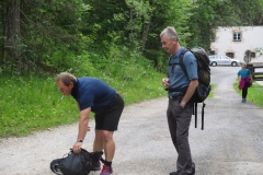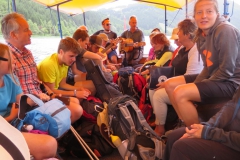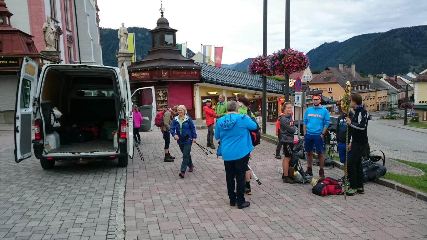 Nachdem das Gepäck in den Transporter geladen war, machten sich die Wallfahrer auf die Reise. Im Gegensatz zur Wallfahrt 2015 war für heuer eher durchwachsenes und feuchtes Wetter vorhergesagt. Und es war mit Regen zu rechnen. Doch wirklich nass wurden wir am ersten Tag erst bei der Bootsfahrt über den Lunzer See, die traditionell den Abschluss der ersten Etappe bildet.