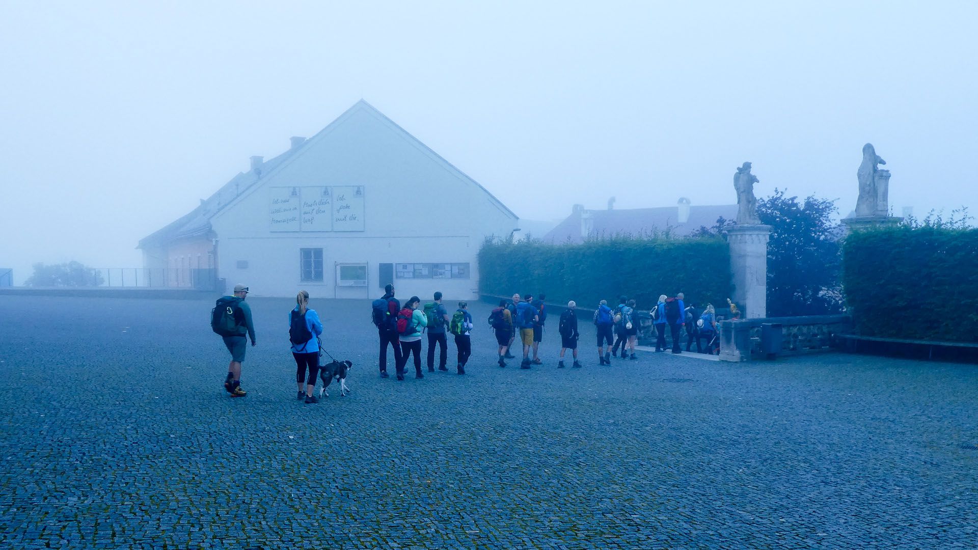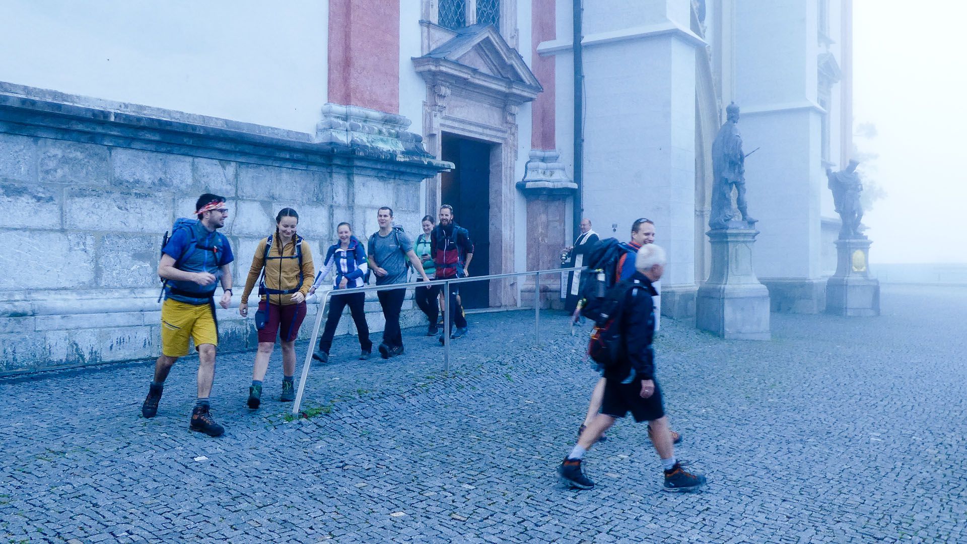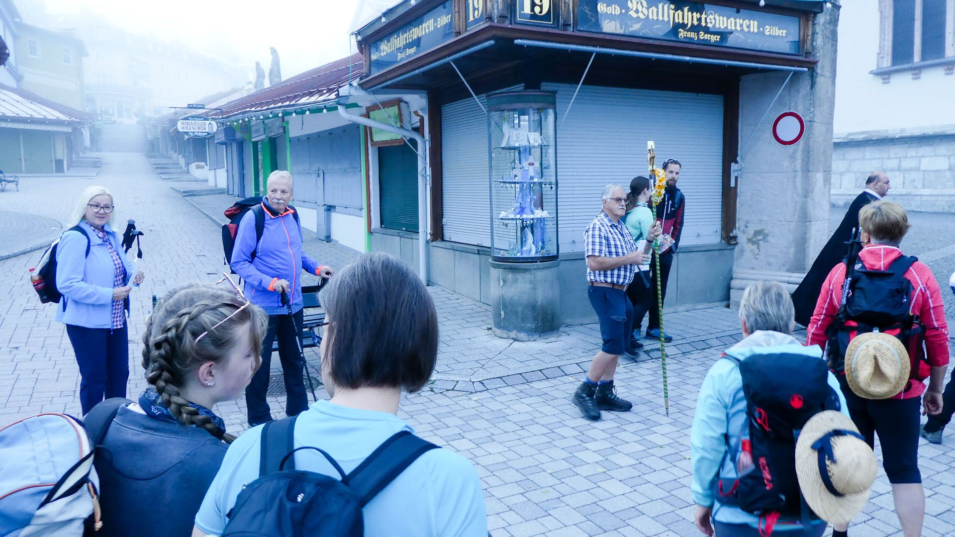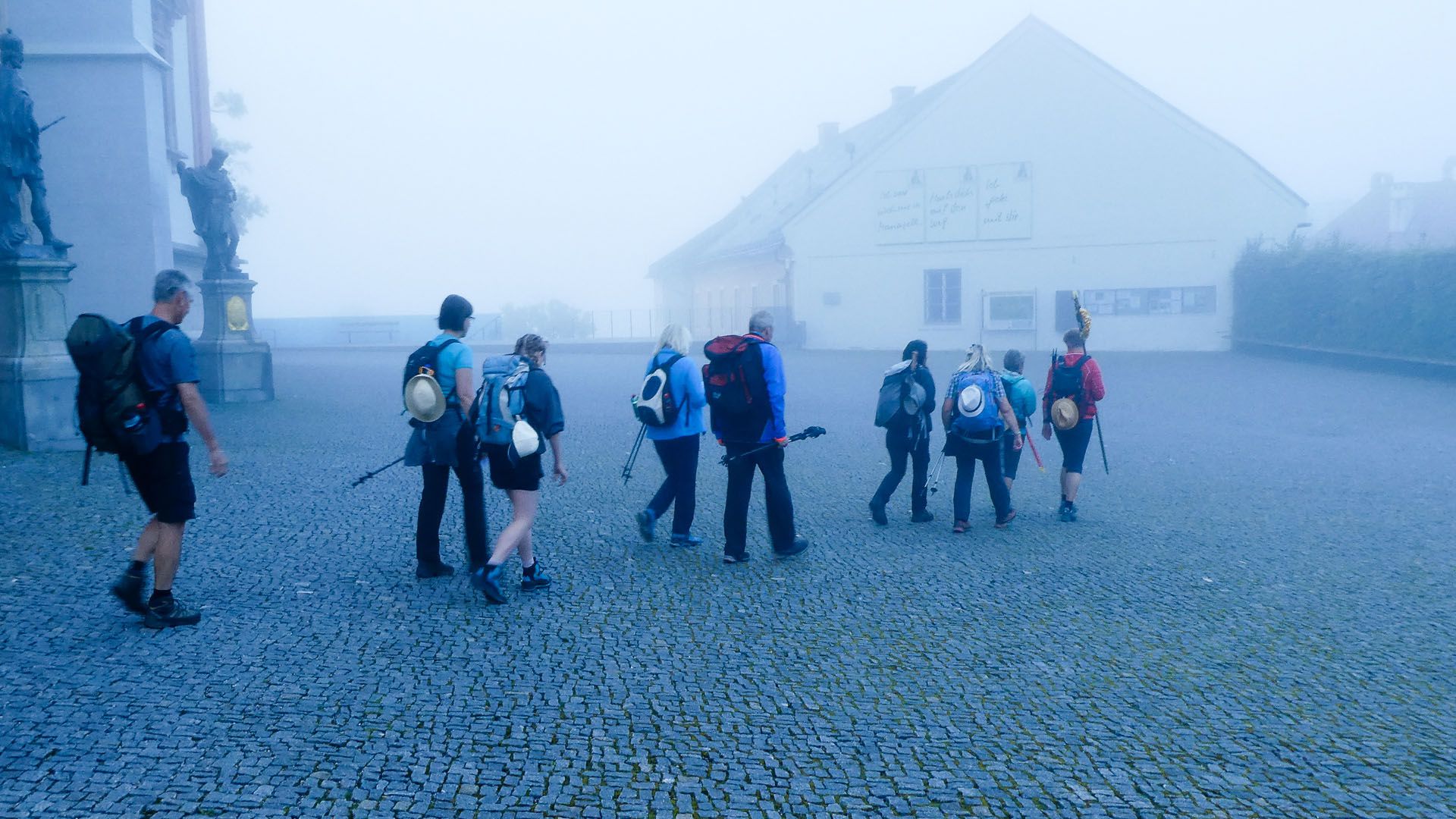 Pünktlich um 6:00 Uhr früh war es auch heuer wieder soweit: Der Mariazeller Stadtpfarrer P. Christoph Pecolt erteilte den diesmal 21 Fußwallfahrern in der Basilika den Reisesegen, ebenso segnete er eine Kopie der Mariazeller Gnadenstatue, die uns auf unserem Weg begleiten sollte.