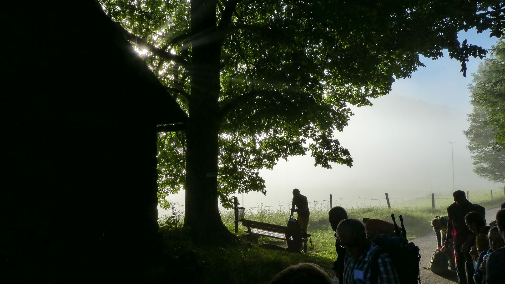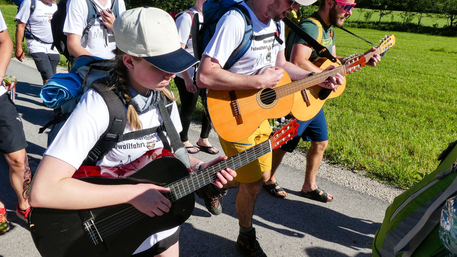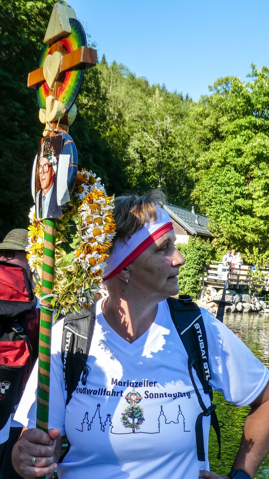 Unser Pilgerkreuz war diesmal „geschmückt“ mit einem Foto unseres langjährigen Wallfahrtsteilnehmers Gustav Wagner, der vor wenigen Monaten verstorben war. Schon in den letzten Jahren konnte er leider nicht mehr selbst teilnehmen, hat sich aber mit der inzwischen beinahe „legendären“ Gustav Wagner-Stiftung immer ganz besonders um das Wohlergehen der jungen Wallfahrtsteilnehmer gekümmert.
