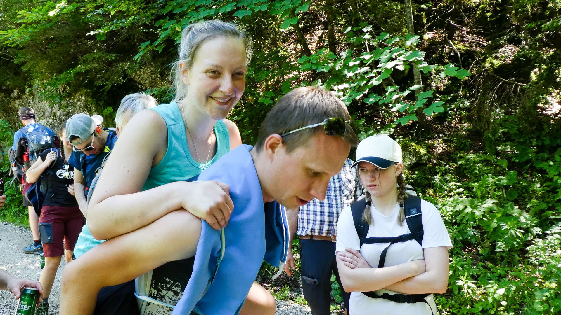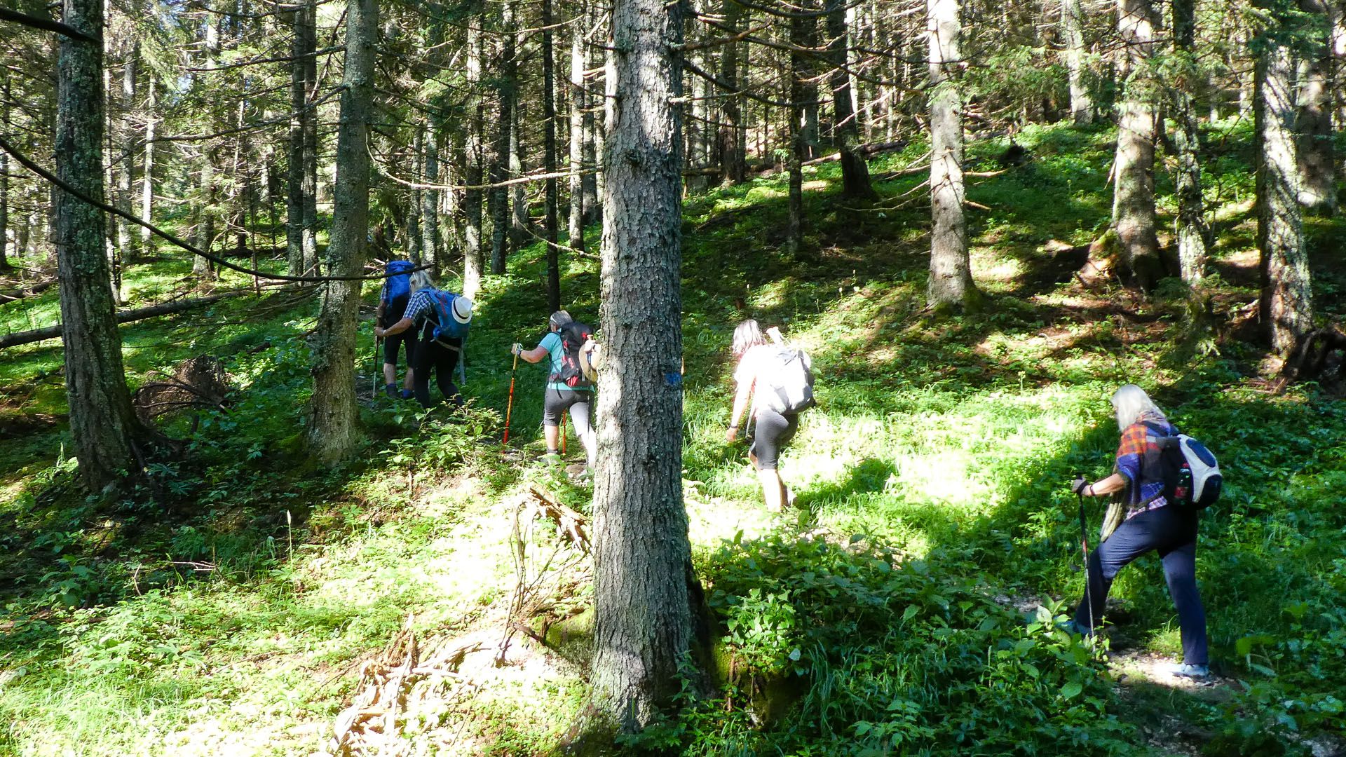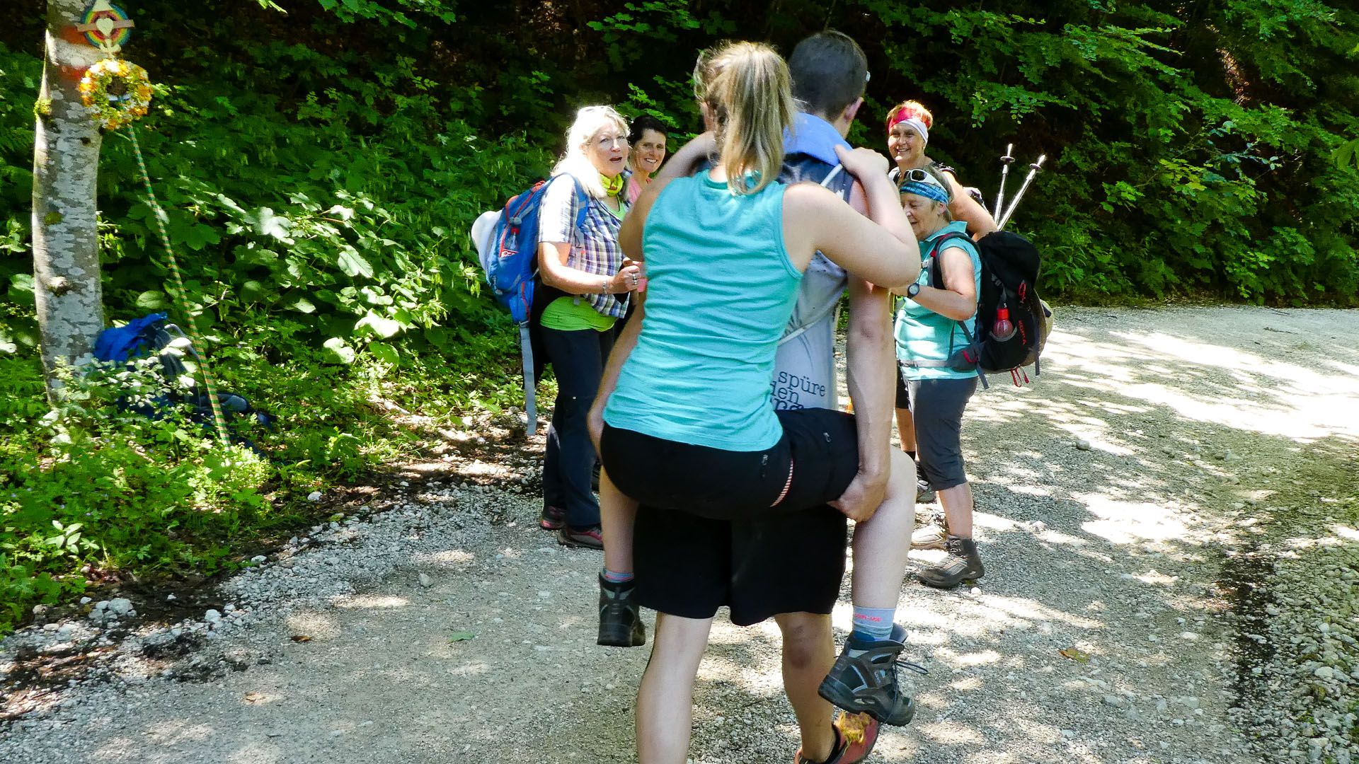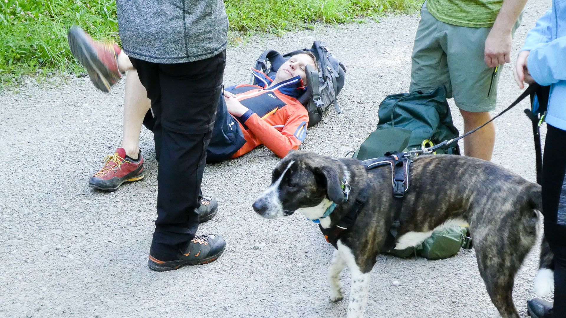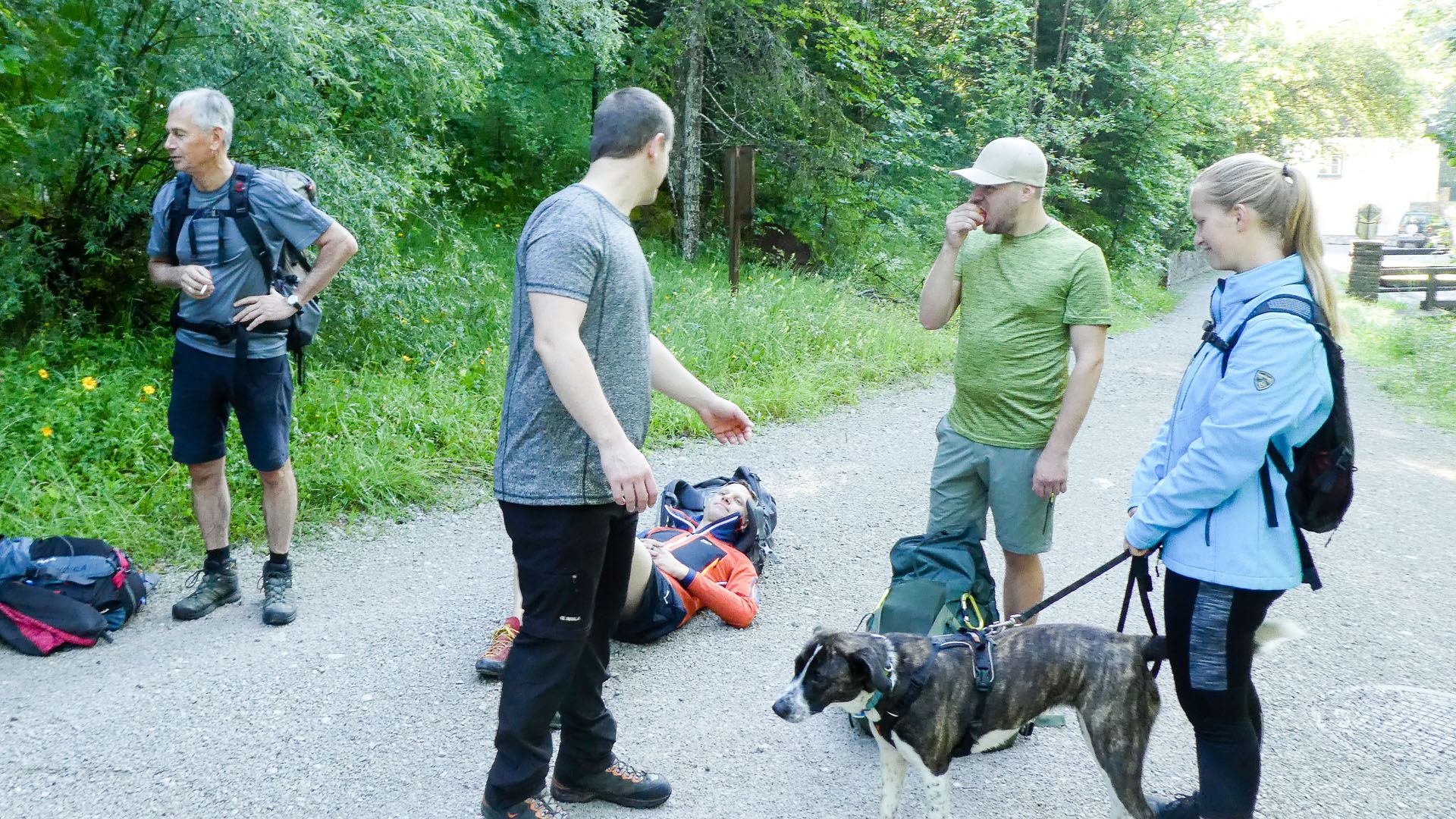 Nach der Jause ging es weiter durch den Winkelbachgraben, wo wir leider unser erstes „Opfer“ zu verzeichnen hatten. Prompt wurde der Insektenstich am Bein versorgt und die „Patientin“ ein Stück weit getragen, bis ein zufällig vorbeikommendes Auto angehalten werden konnte. Dank der Hilfsbereitschaft der Lenkerin wurde die Patientin bis zum Gasthaus in die Langau gebracht.
