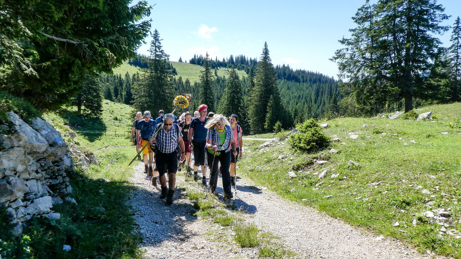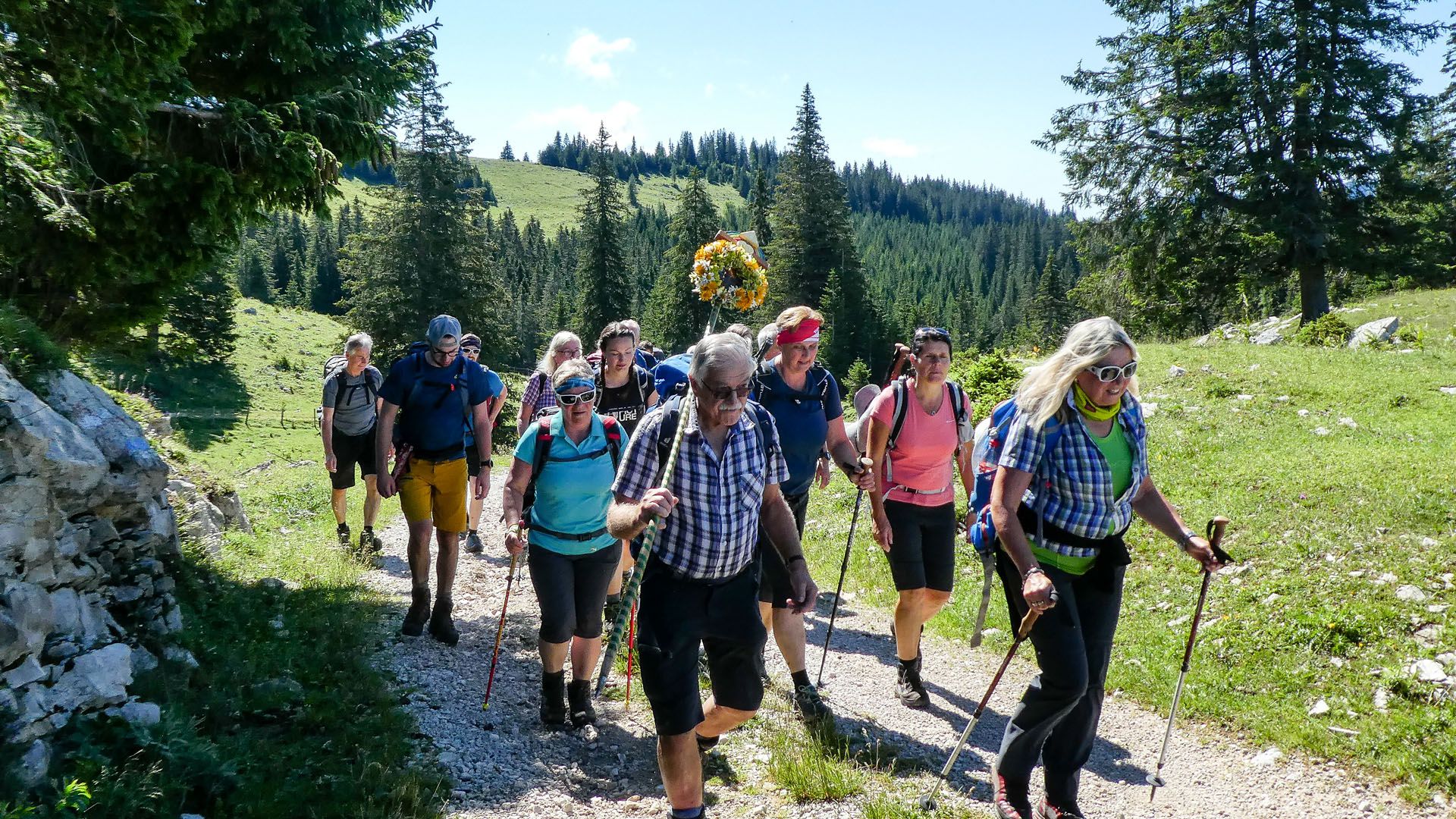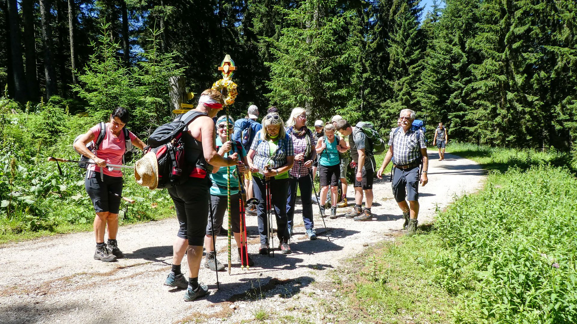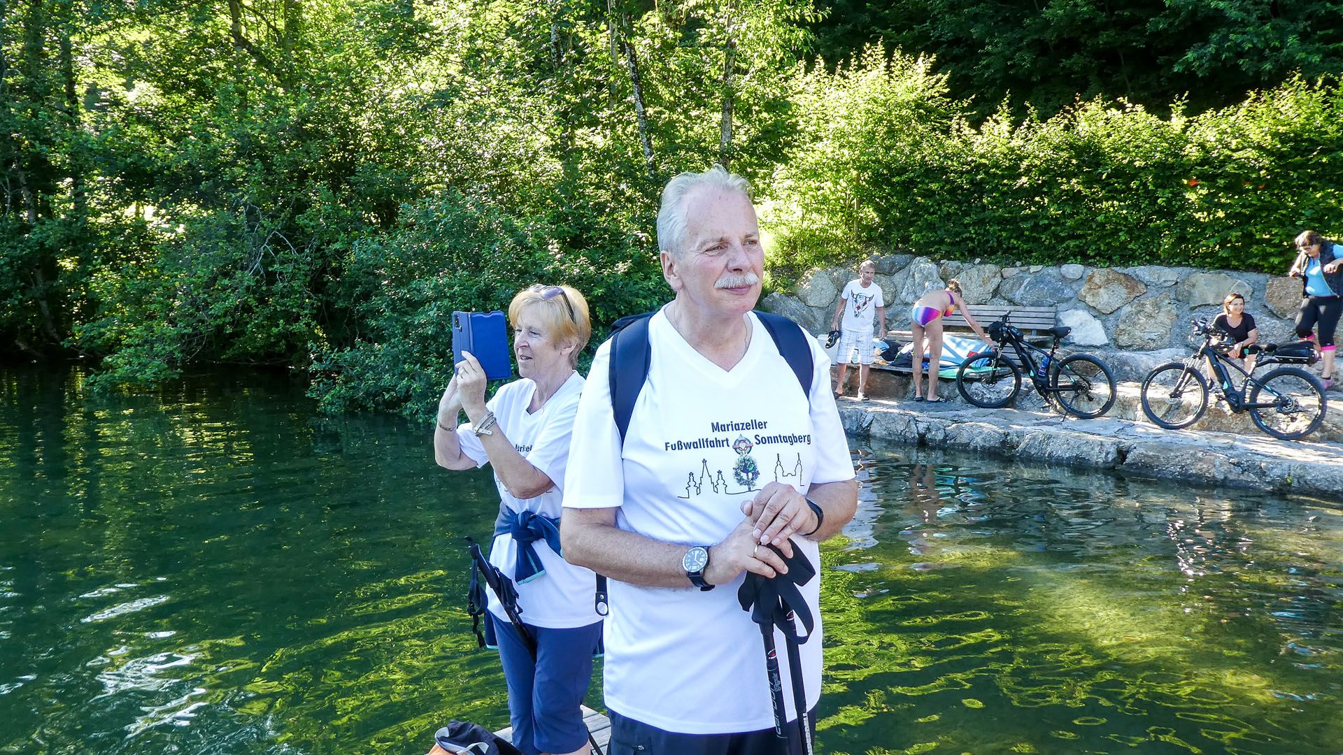 Nach den heftigen Regengüssen noch am Freitagabend war für das Wochenende angenehmes Wetter angesagt, trocken und dennoch nicht zu heiß. Wie jedes Jahr hielten wird bei der kleinen Flesch-Kapelle die erste Andacht, marschierten vorbei am Erlaufsee zum Erlaufursprung, der heuer besonders viel Wasser führte, und weiter durch den Wald bis auf die Feldwiesalm zu unserer ersten Einkehr.