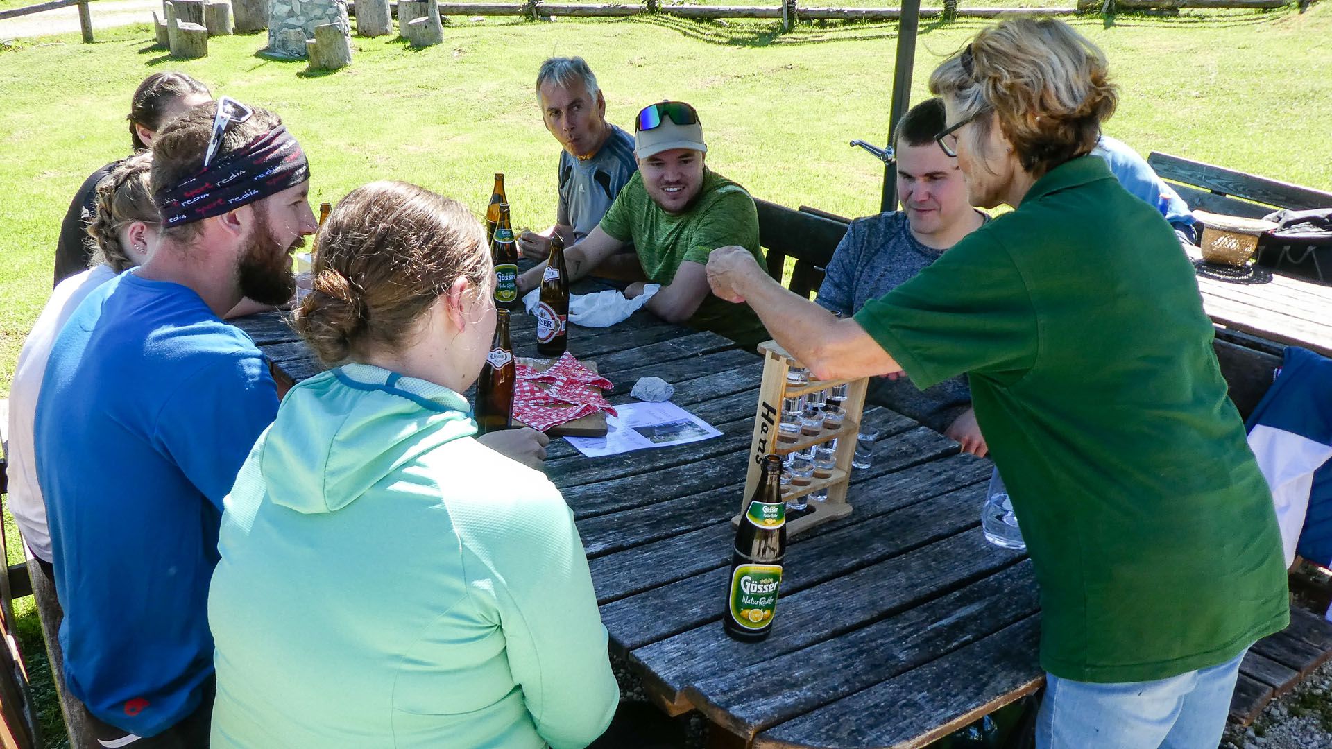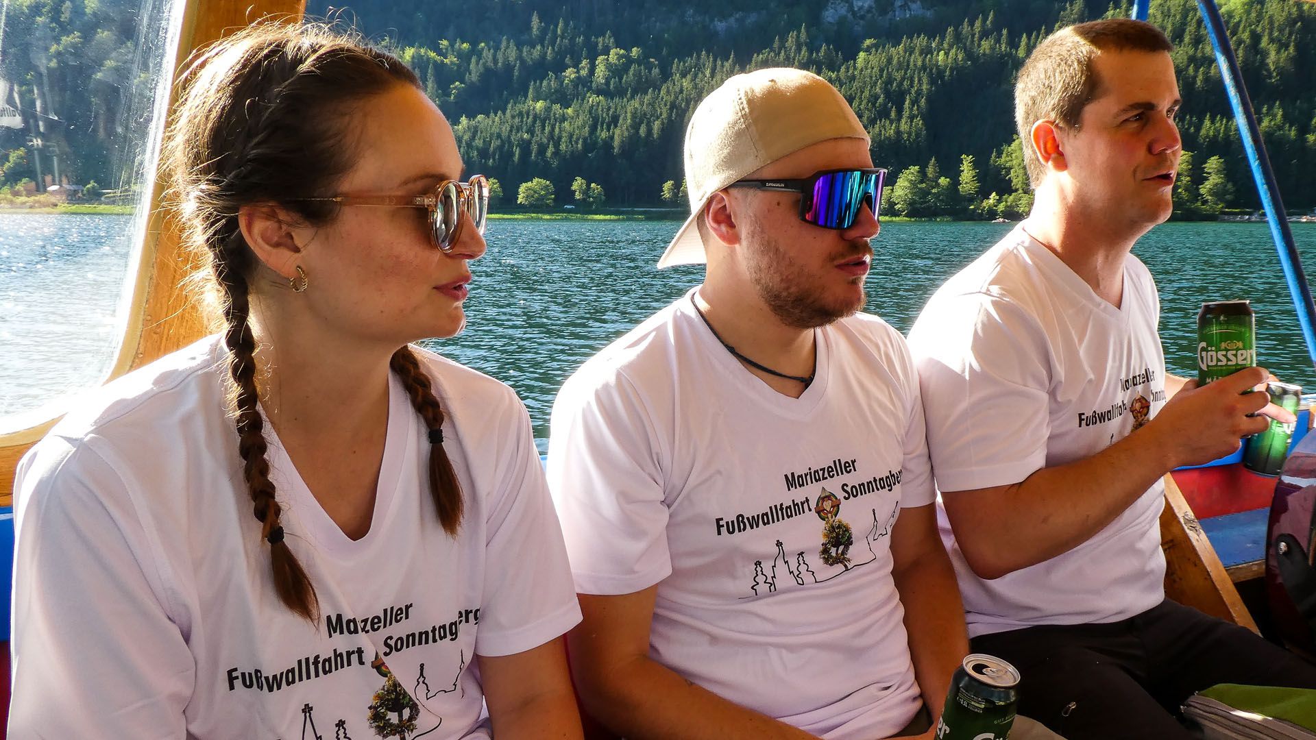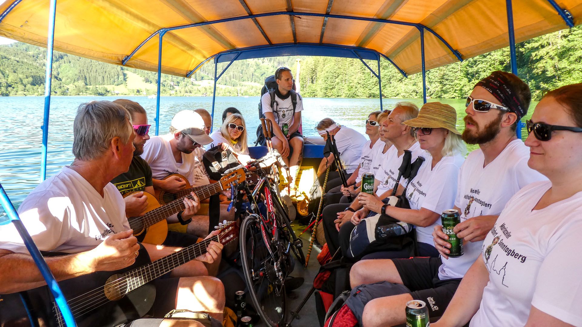 Auf dem Boot wurden wir von auch heuer wieder von Misi bereits mit einer – diesmal grünen – „Abkühlung“ empfangen und mit lautstarkem Gesang ging es auf dem Boot über den Lunzer See, danach bezogen wir unsere Quartiere und trafen uns schlussendlich noch zum gemeinsamen Abendessen im Zellerhof.