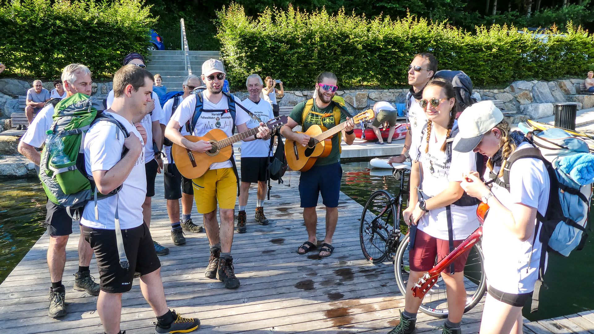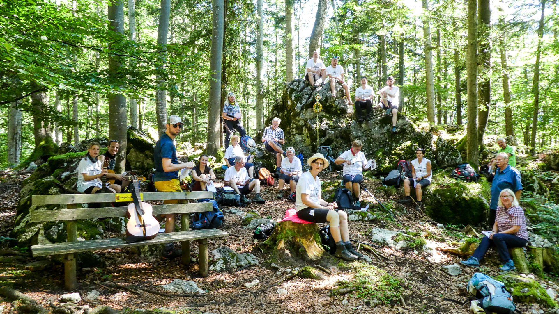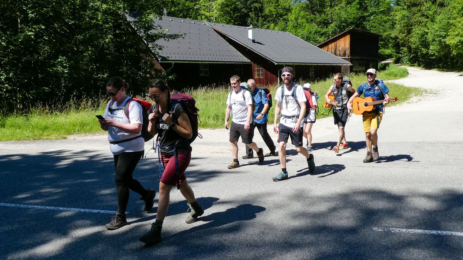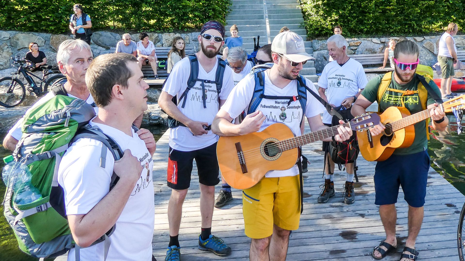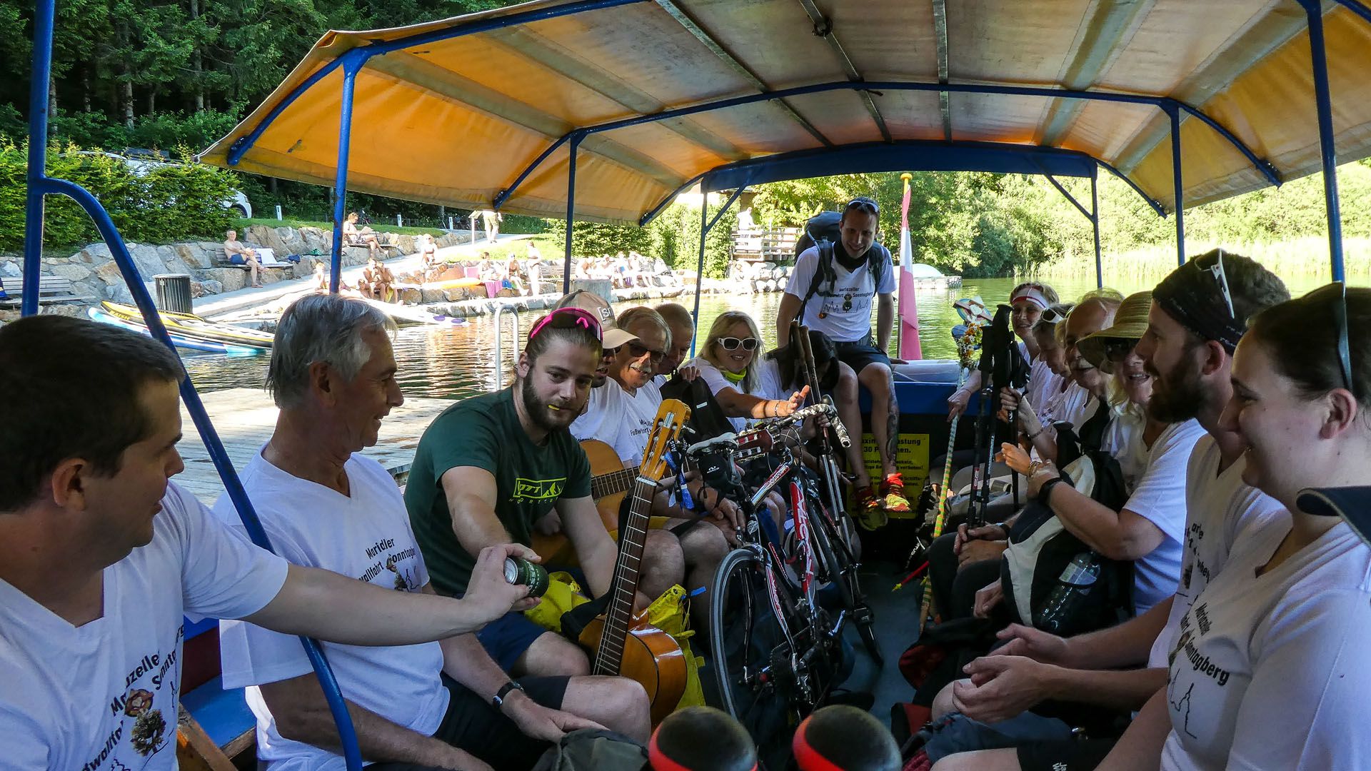 Am Nachmittag wurden wir – gestärkt durch das Mittagessen – auch heuer wieder mit Musik begleitet, Peter, Mario und Emma übernahmen in bewährter Manier die musikalische Umrahmung. Wir marschierten über den Durchlass das letzte Stück nach Lunz, wo wir zuerst in der Schlosstaverne Einkehr hielten und dann wieder mit dem Boot über den See gebracht wurden.