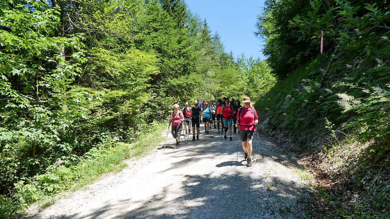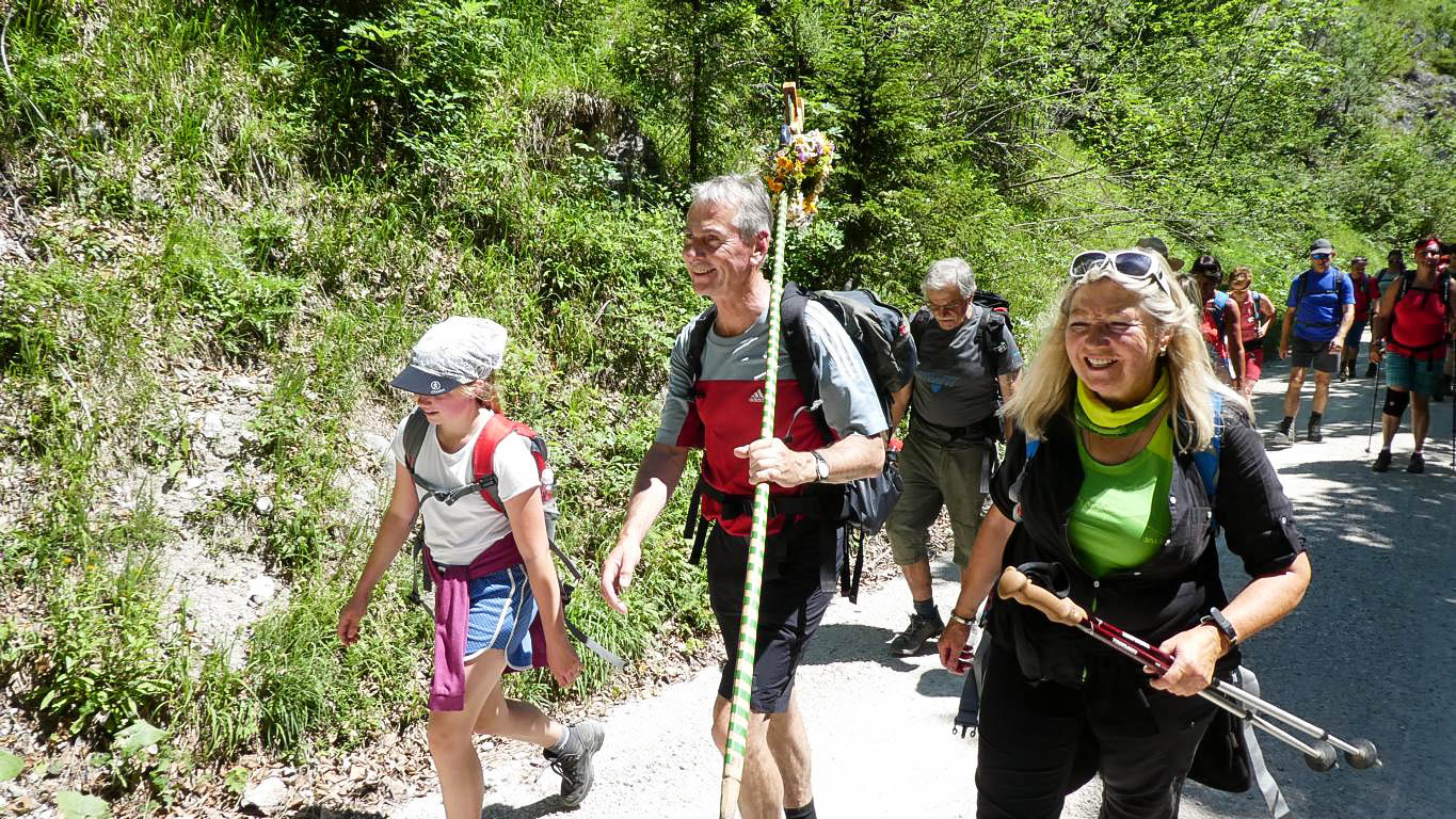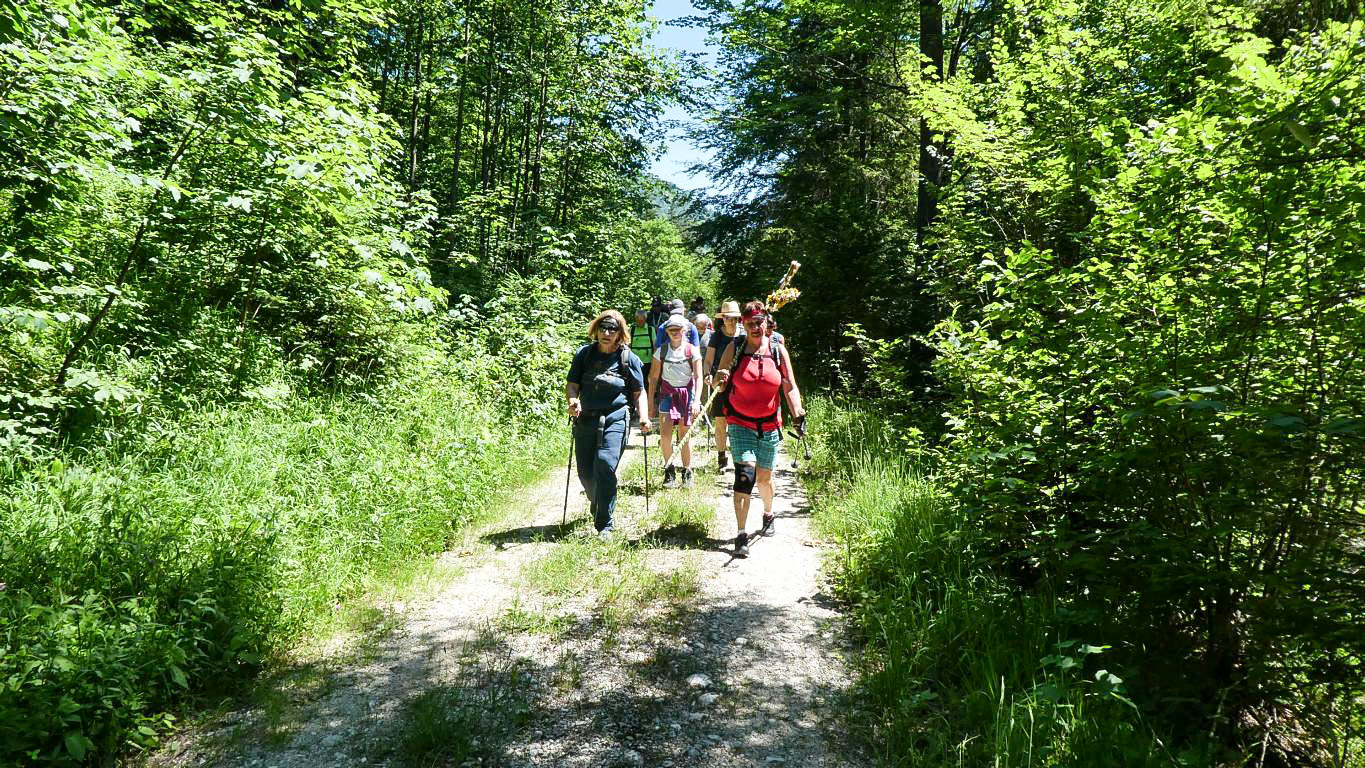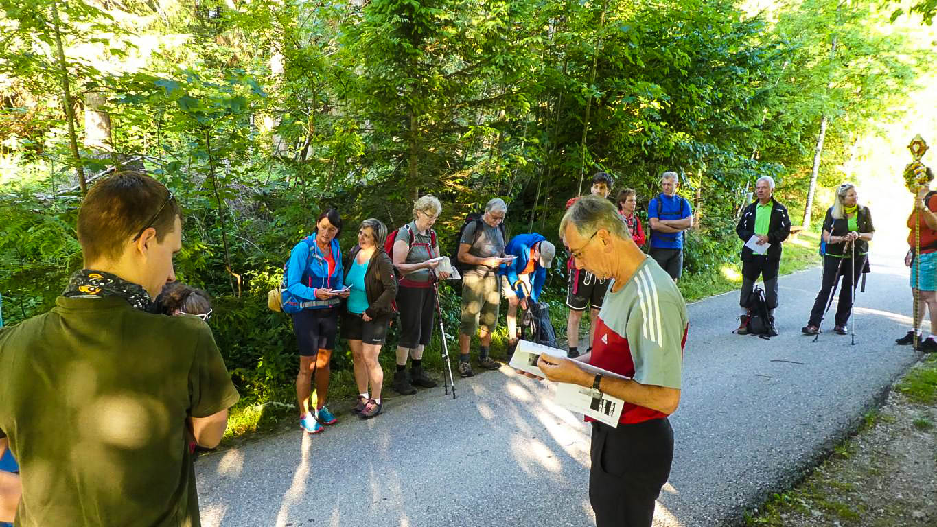 Nach der Jause ging es weiter durch den Winkelstockgraben bis Langau. Leider mussten wir dort auch heuer wieder einen kleinen Umweg machen, da dort aufgrund der Beseitigung von Sturmschäden eine Durchschreitung des Waldes teilweise überhaupt nicht möglich war. Von einzelnen Streckensperren ließen wir uns aber dann doch nicht abschrecken, denn unser „Wallfahrsmanager“ Ferdinand Brandl hatte gemeinsam mit Emmerich Ganser auch heuer wieder wenige Tage zuvor den Weg begangen und ausgeschnitten, dennoch waren einige Hindernisse zu überwinden.
