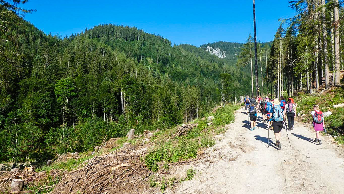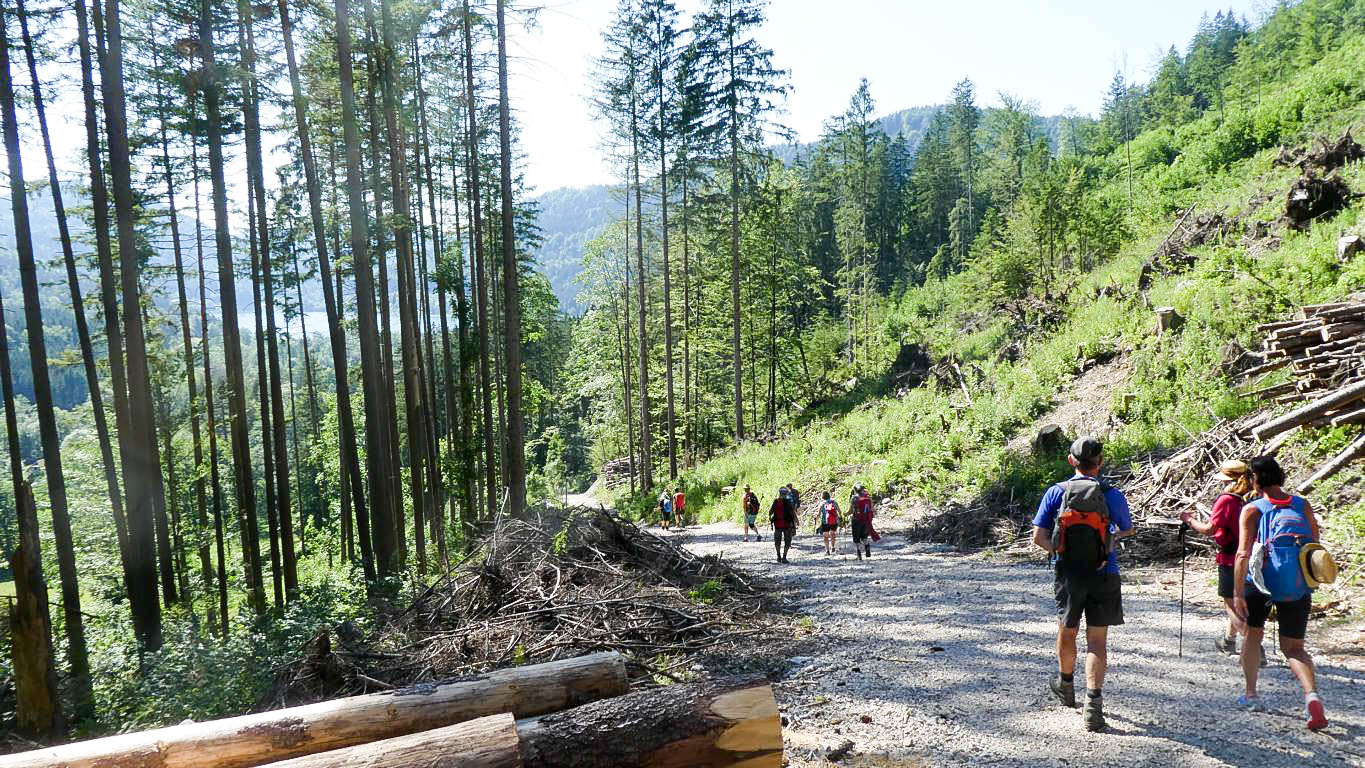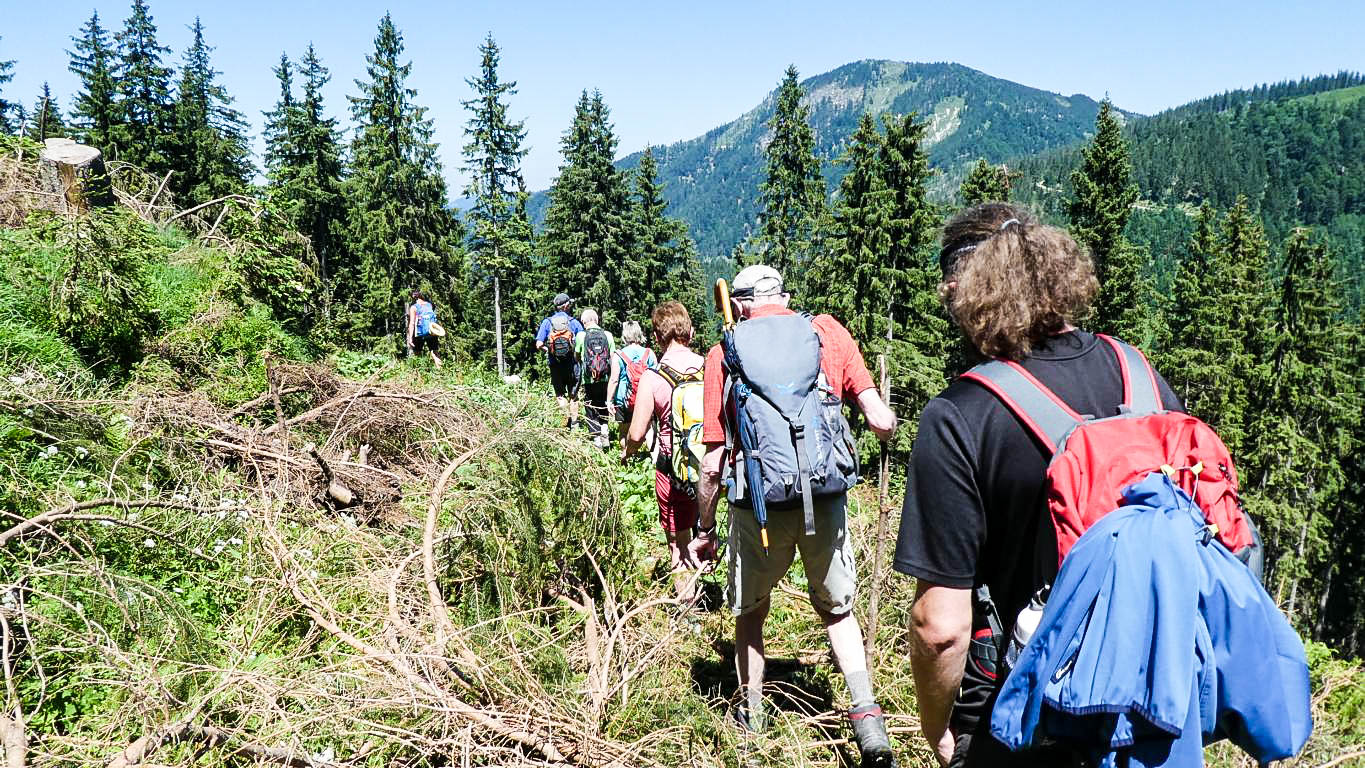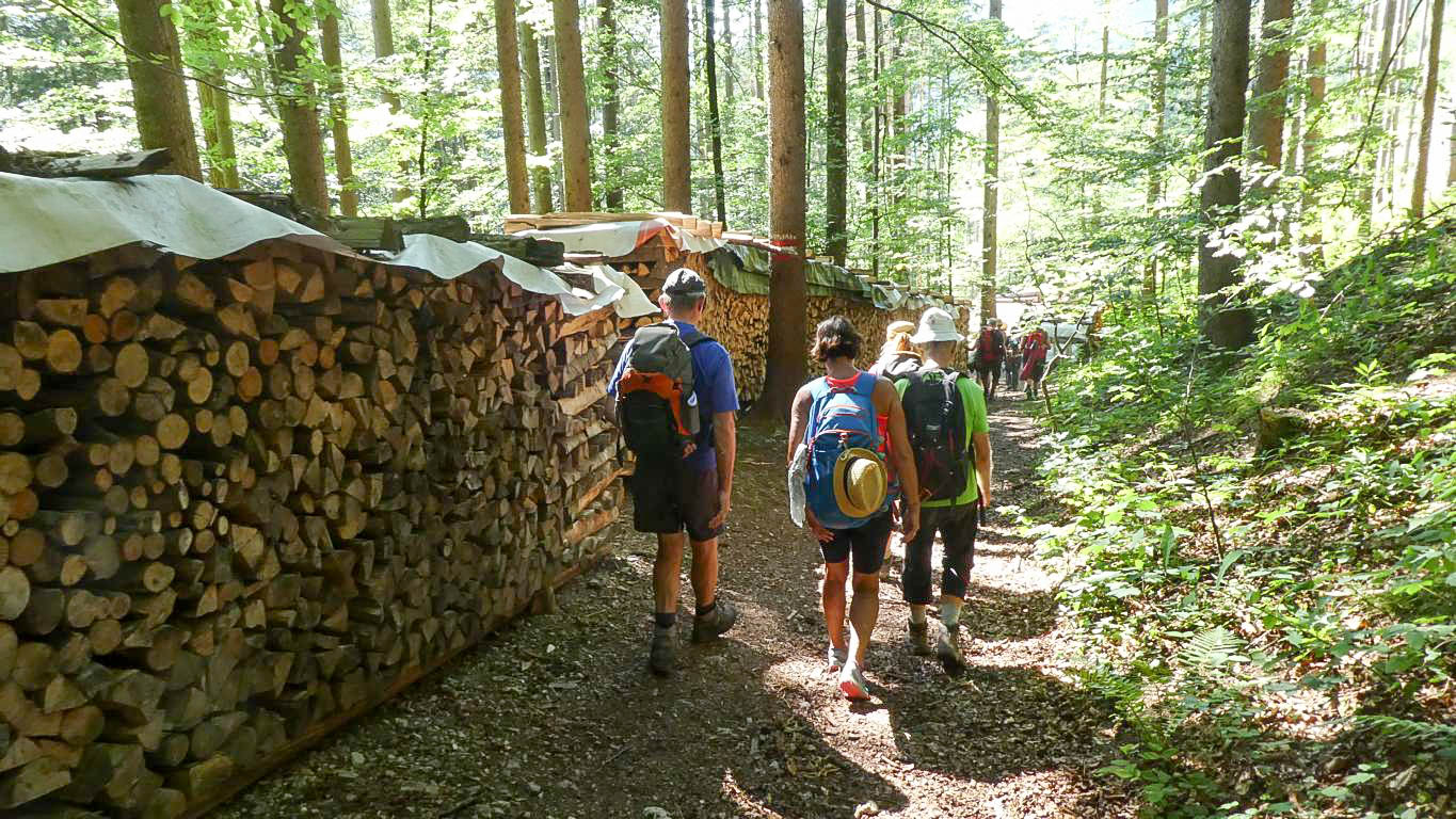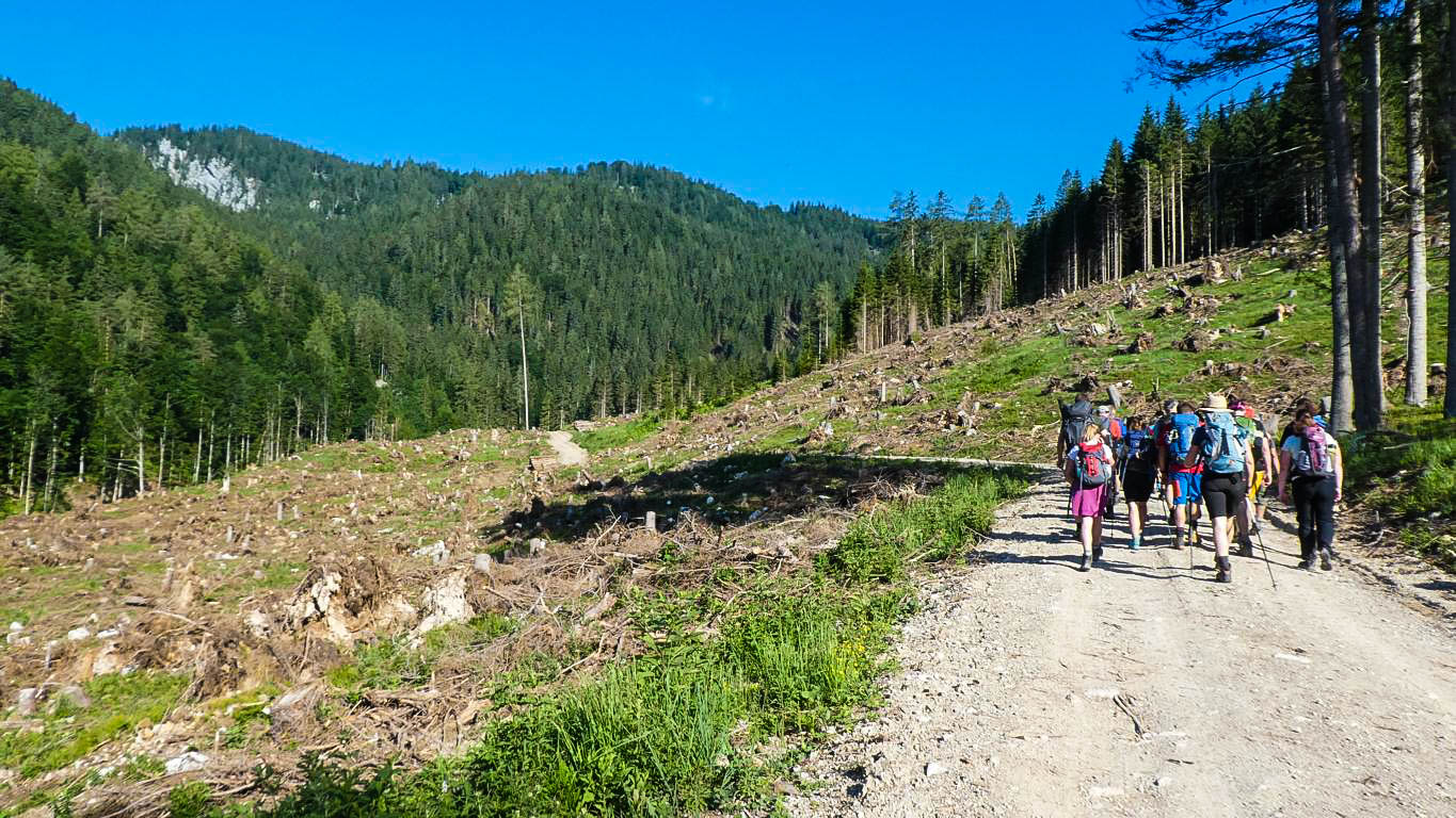 Nach der Jause ging es weiter durch den Winkelstockgraben bis Langau. Leider mussten wir dort auch heuer wieder einen kleinen Umweg machen, da dort aufgrund der Beseitigung von Sturmschäden eine Durchschreitung des Waldes teilweise überhaupt nicht möglich war. Von einzelnen Streckensperren ließen wir uns aber dann doch nicht abschrecken, denn unser „Wallfahrsmanager“ Ferdinand Brandl hatte gemeinsam mit Emmerich Ganser auch heuer wieder wenige Tage zuvor den Weg begangen und ausgeschnitten, dennoch waren einige Hindernisse zu überwinden.