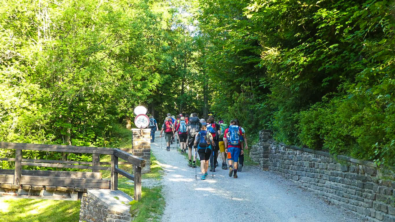 Und es sollten drei heiße Tage werden – die Wettervorhersage prophezeite uns Temperaturen bis um die 38° und mehr. Beim Abmarsch war es zwar noch angenehm kühl, doch im Lauf des Tages sollte sich das noch gewaltig ändern.
