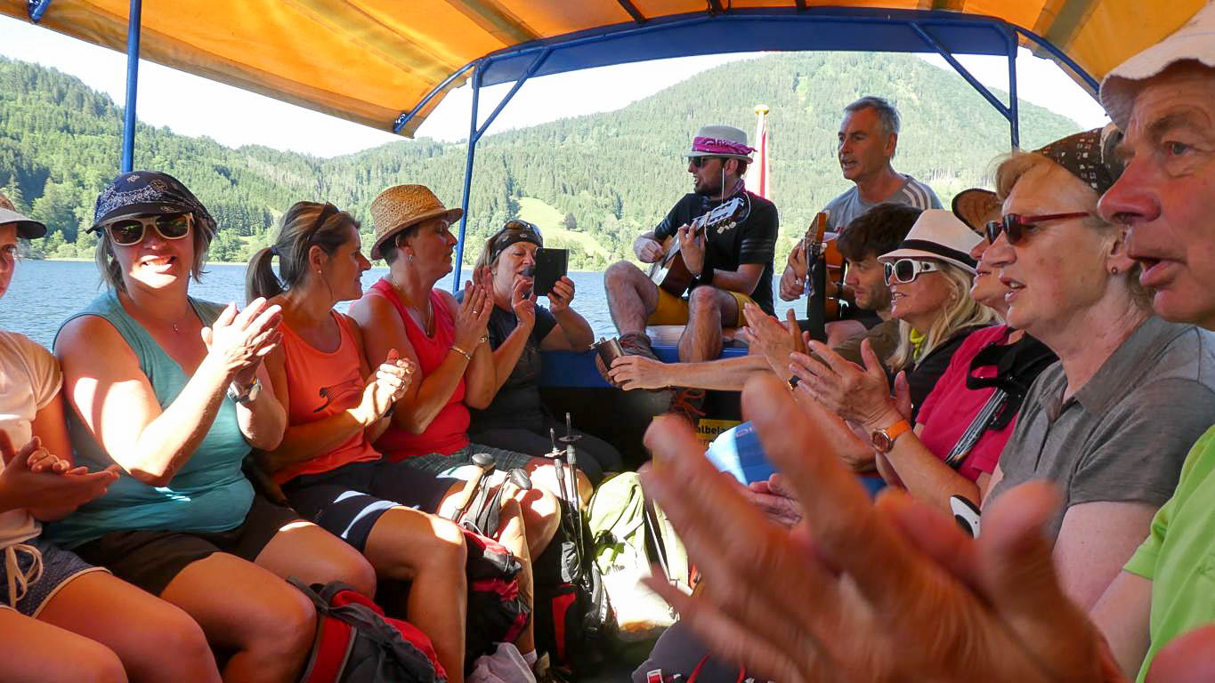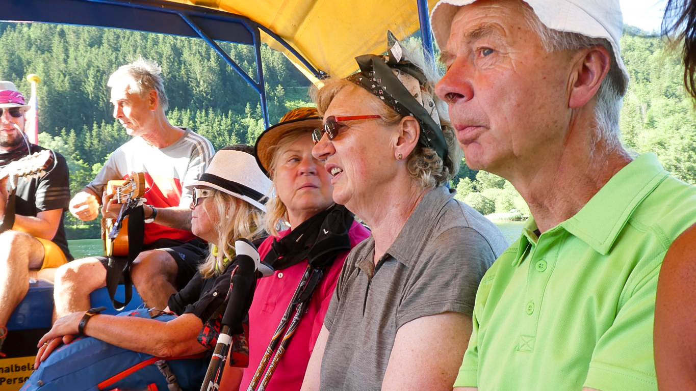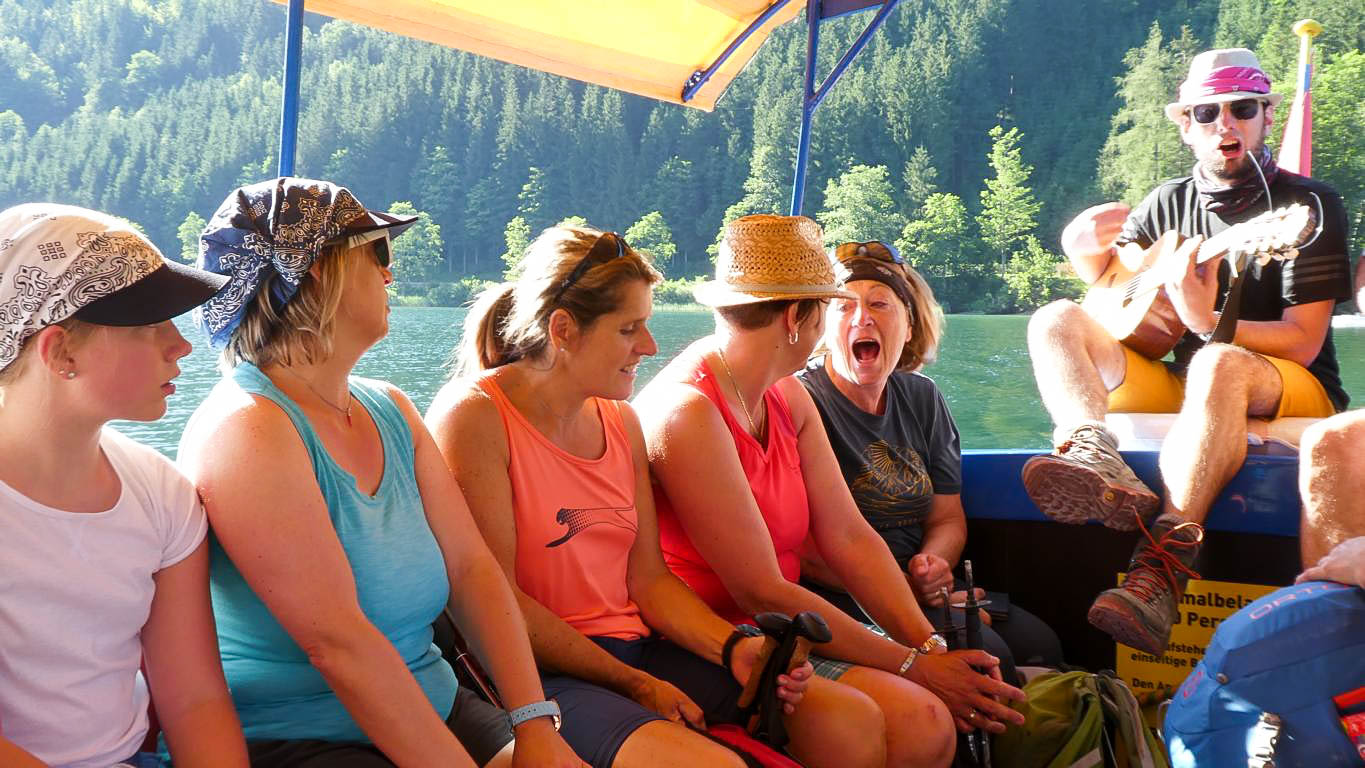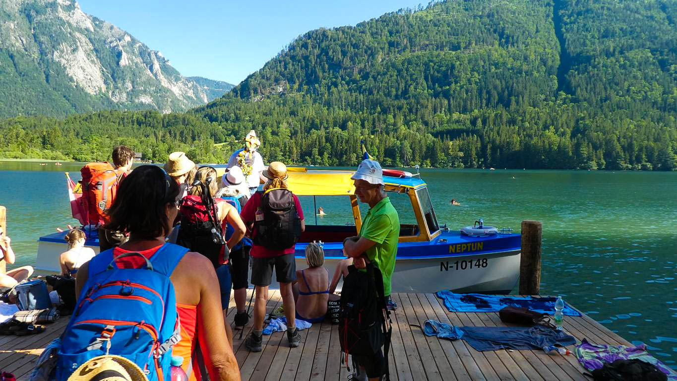 Ab Langau wurden wir – gestärkt durch das Mittagessen – auch heuer wieder mit Musik begleitet und marschierten das letzte Stück nach Lunz, wo wir zuerst in der Schlosstaverne Einkehr hielten und dann wieder mit dem Boot über den See gebracht wurden. Nach der Überquerung des Lunzer Sees bezogen wir unsere Quartiere und trafen uns danach zum gemeinsamen Abendessen im Zellerhof.
