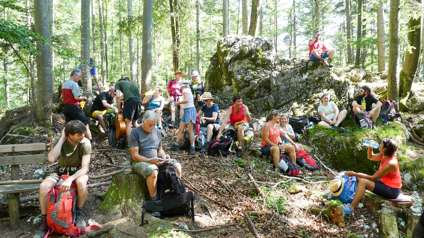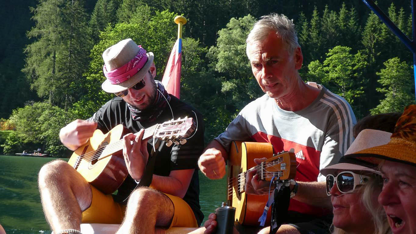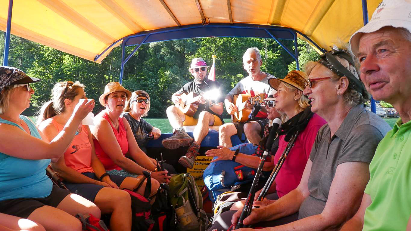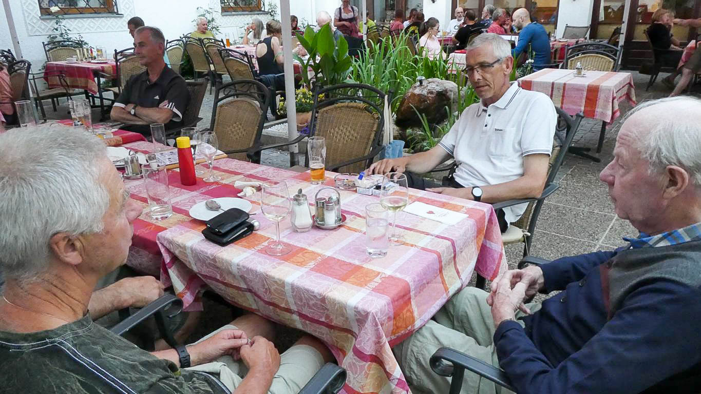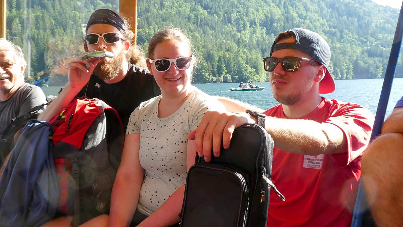 Ab Langau wurden wir – gestärkt durch das Mittagessen – auch heuer wieder mit Musik begleitet und marschierten das letzte Stück nach Lunz, wo wir zuerst in der Schlosstaverne Einkehr hielten und dann wieder mit dem Boot über den See gebracht wurden. Nach der Überquerung des Lunzer Sees bezogen wir unsere Quartiere und trafen uns danach zum gemeinsamen Abendessen im Zellerhof.