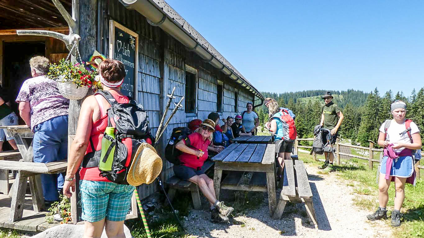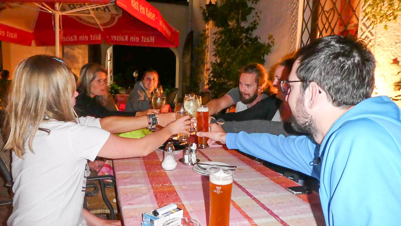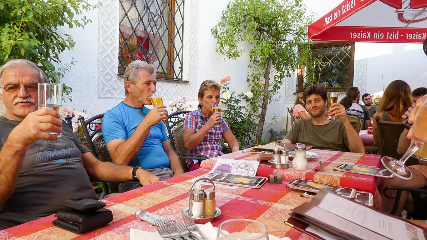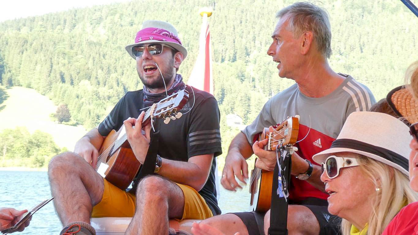 Ab Langau wurden wir – gestärkt durch das Mittagessen – auch heuer wieder mit Musik begleitet und marschierten das letzte Stück nach Lunz, wo wir zuerst in der Schlosstaverne Einkehr hielten und dann wieder mit dem Boot über den See gebracht wurden. Nach der Überquerung des Lunzer Sees bezogen wir unsere Quartiere und trafen uns danach zum gemeinsamen Abendessen im Zellerhof.