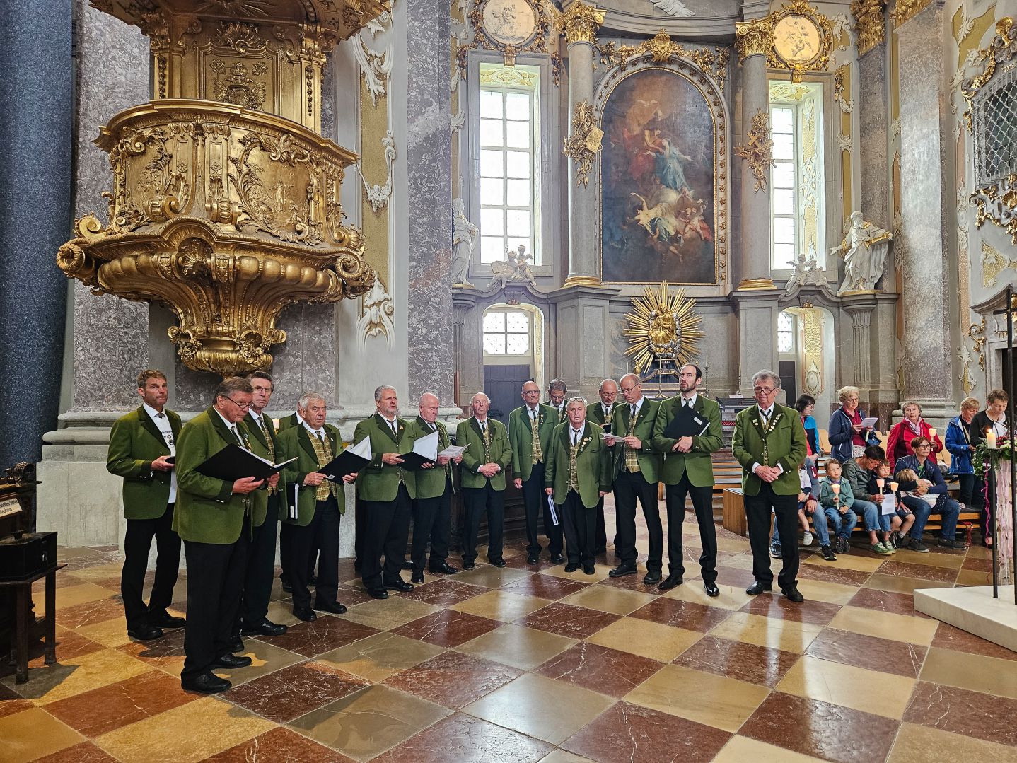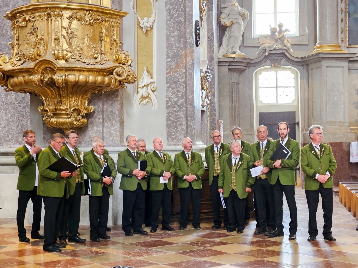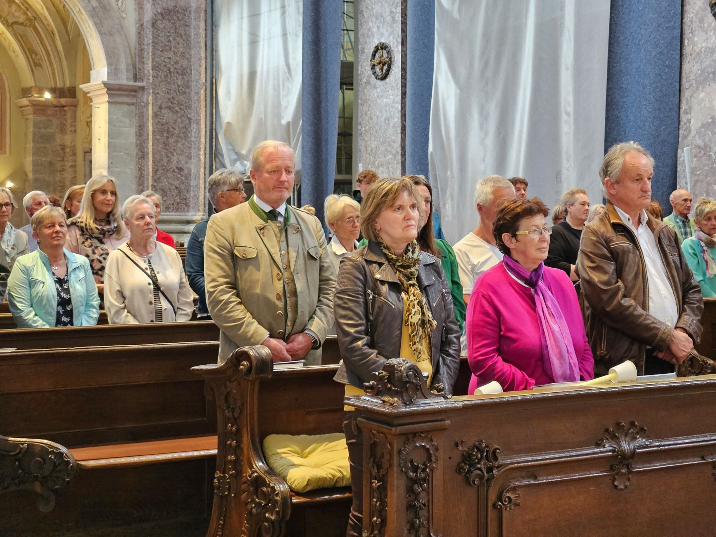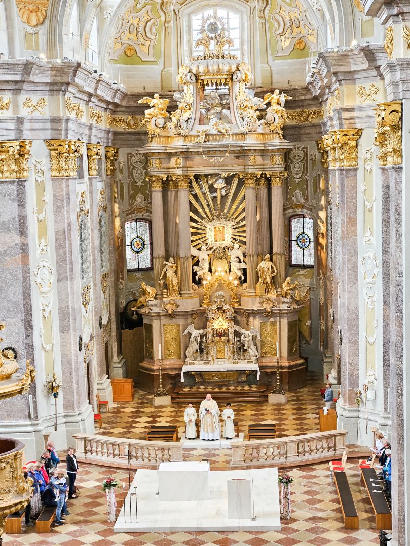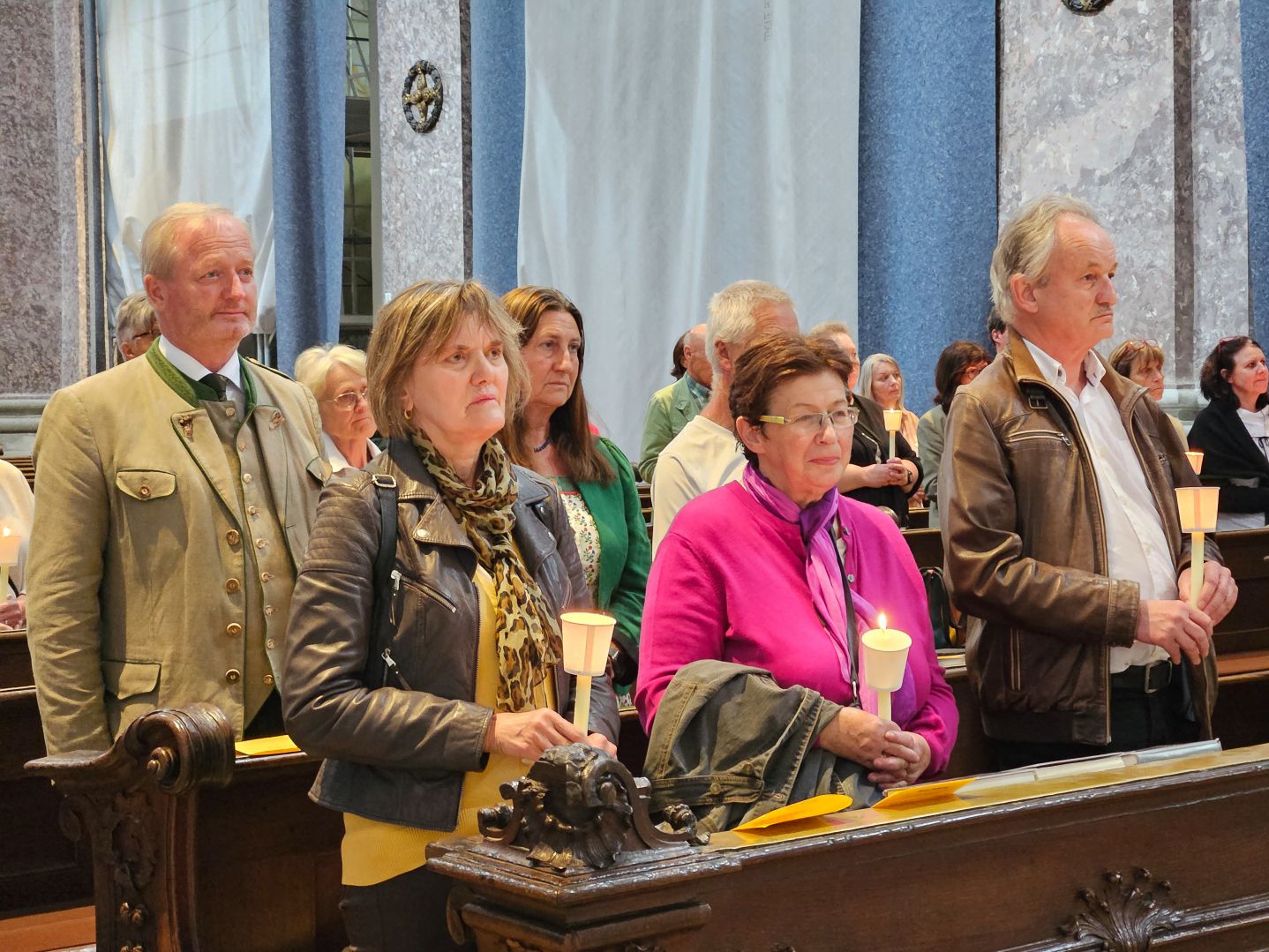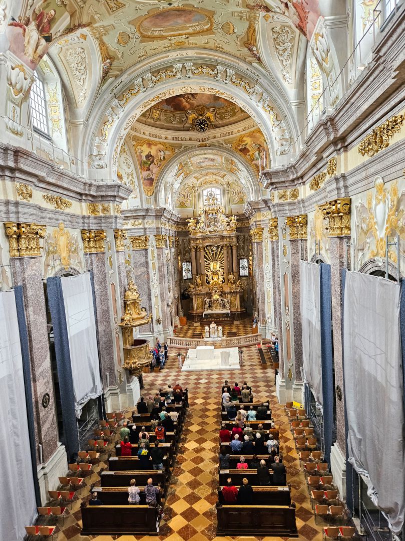 Nach einer herzlichen Begrüßung durch den Superior ging es zum Mittagessen ins Gasthaus Lagler. Gemeinsam mit weiteren Wallfahrern aus Mariazell, die die gesamte Strecke am Montag mit dem Fahrrad oder auch im privaten PKW zurückgelegt hatten, feierten wir nach einem Mittagessen dann um 16:00 Uhr den Gottesdienst, der heuer vom MGV Alpenland musikalisch mitgestaltet wurde, gefolgt von der Lichterprozession rund um die Basilika.