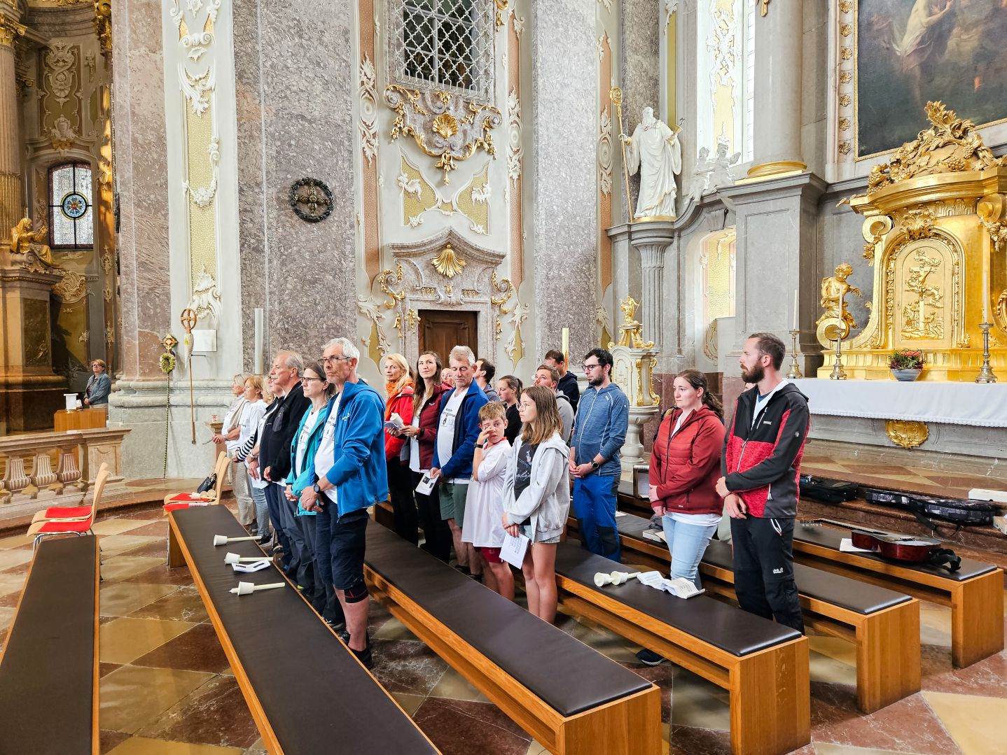 Die letzte Steigung des Tages führte uns dann endlich auf den Sonntagberg – dort nahmen wir dann wieder geordnete Aufstellung an und zogen wie jedes Jahr mit einem von den Gitarristen begleiteten Hallelujah in die Basilika ein – nach drei Tagen Fußmarsch auch heuer wieder ein sehr ergreifender und berührender Moment. Es war wieder einmal geschafft! Das Gefühl kann man nicht in Worte fassen, das muss man erlebt haben.