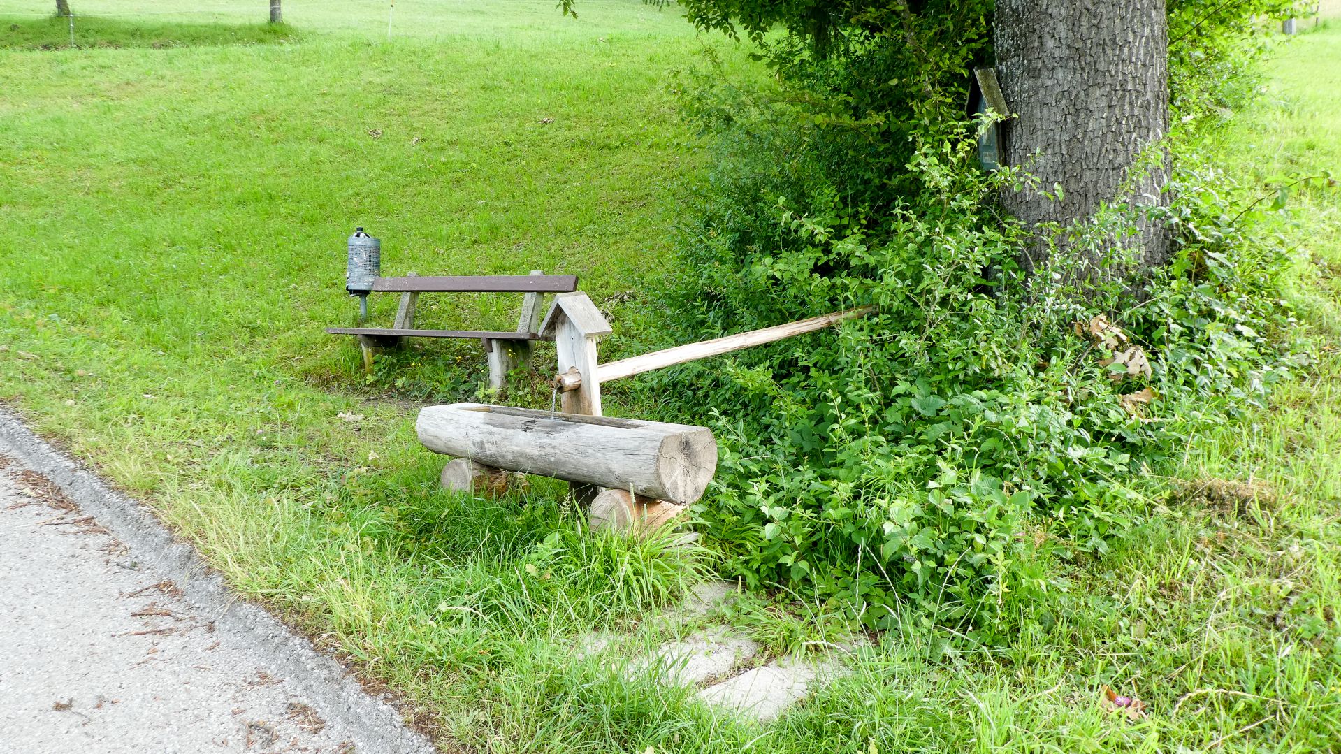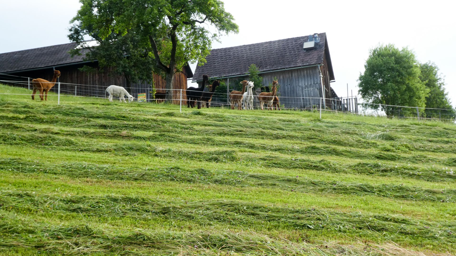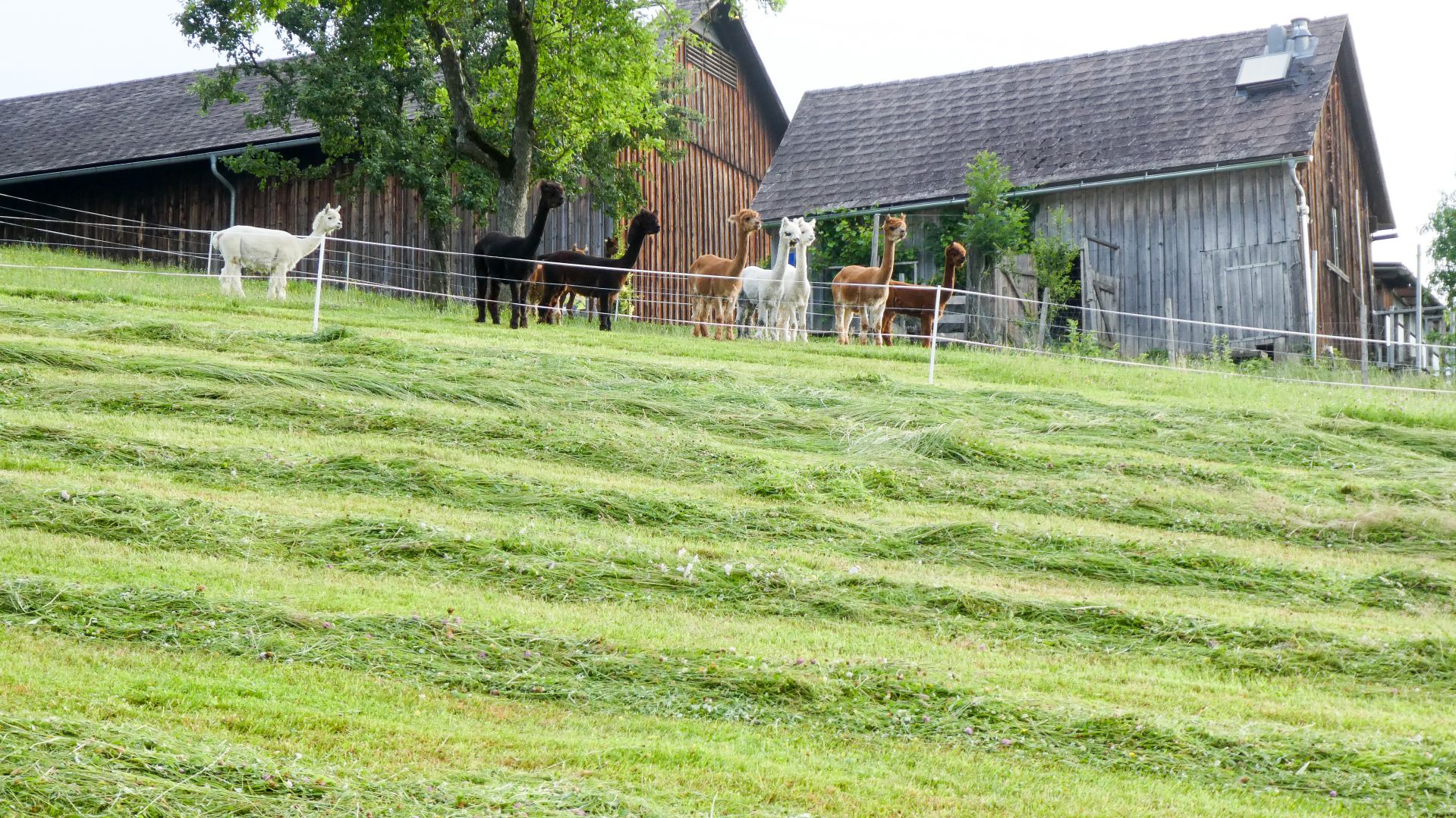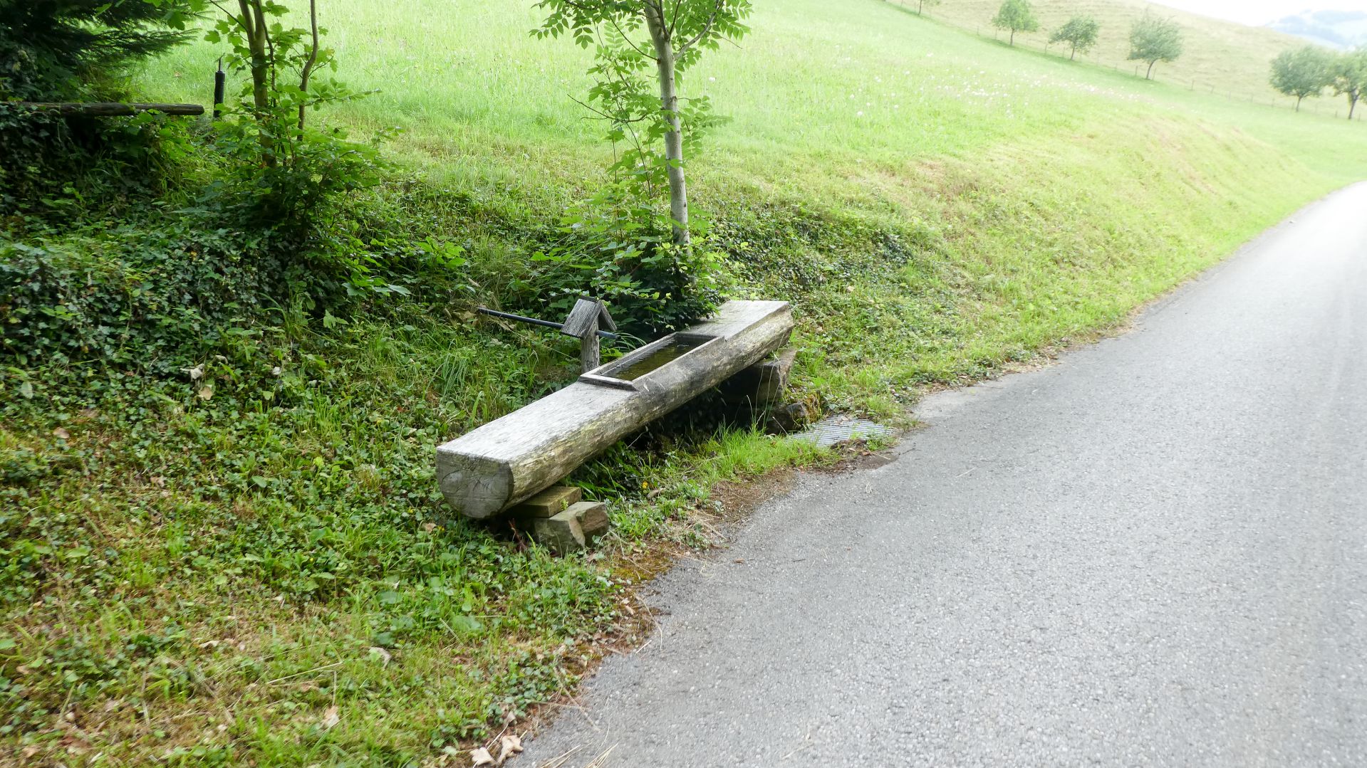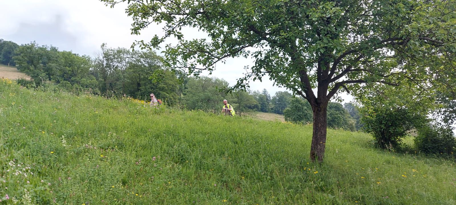 Der nächste Fixpunkt war auch heuer wieder die Rast beim „Mostbauern“. Und schon wie im Vorjahr organisierte Familie Baumgartner süße und knusprige Köstlichkeiten aus der Bäckerei, zum frischen Gebäck wurde Kaffee gekocht und Most und Apfelsaft kredenzt. Da wir etwas Zeitreserve hatten, konnten wir heuer etwas länger sitzen bleiben, bevor wir uns frisch gestärkt wieder auf den Weg machten und oben auf der Kuppe wieder ein Gruppenfoto gemacht wurde.