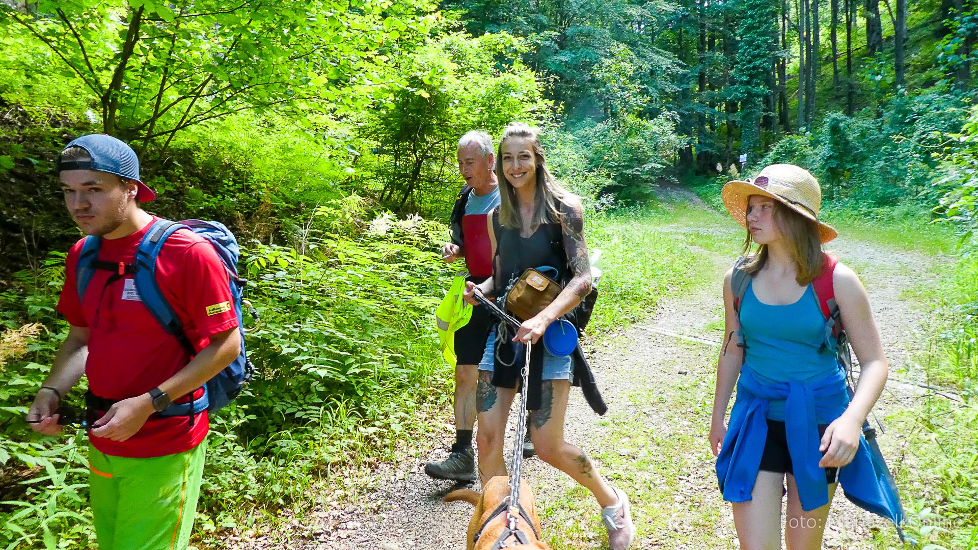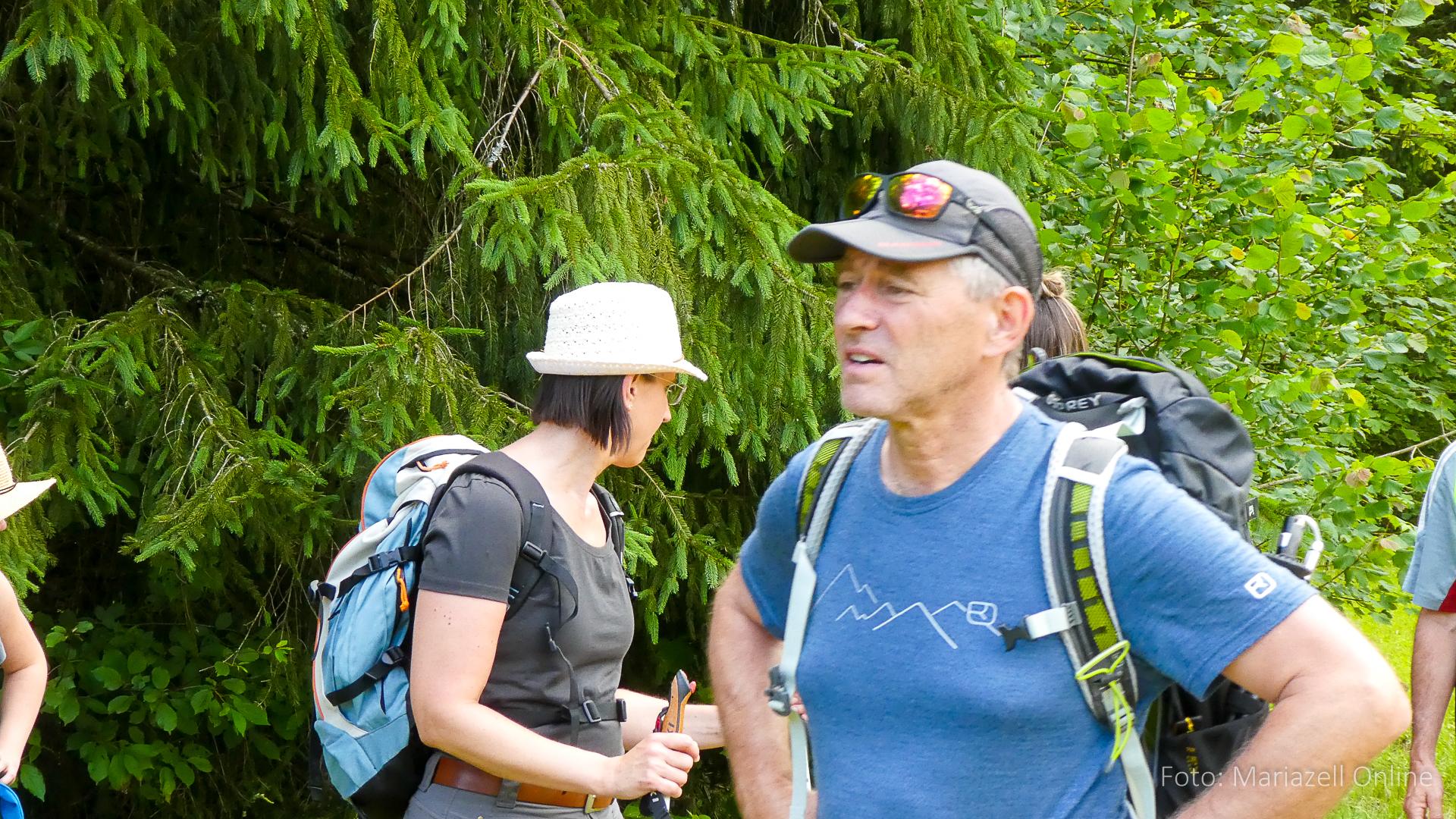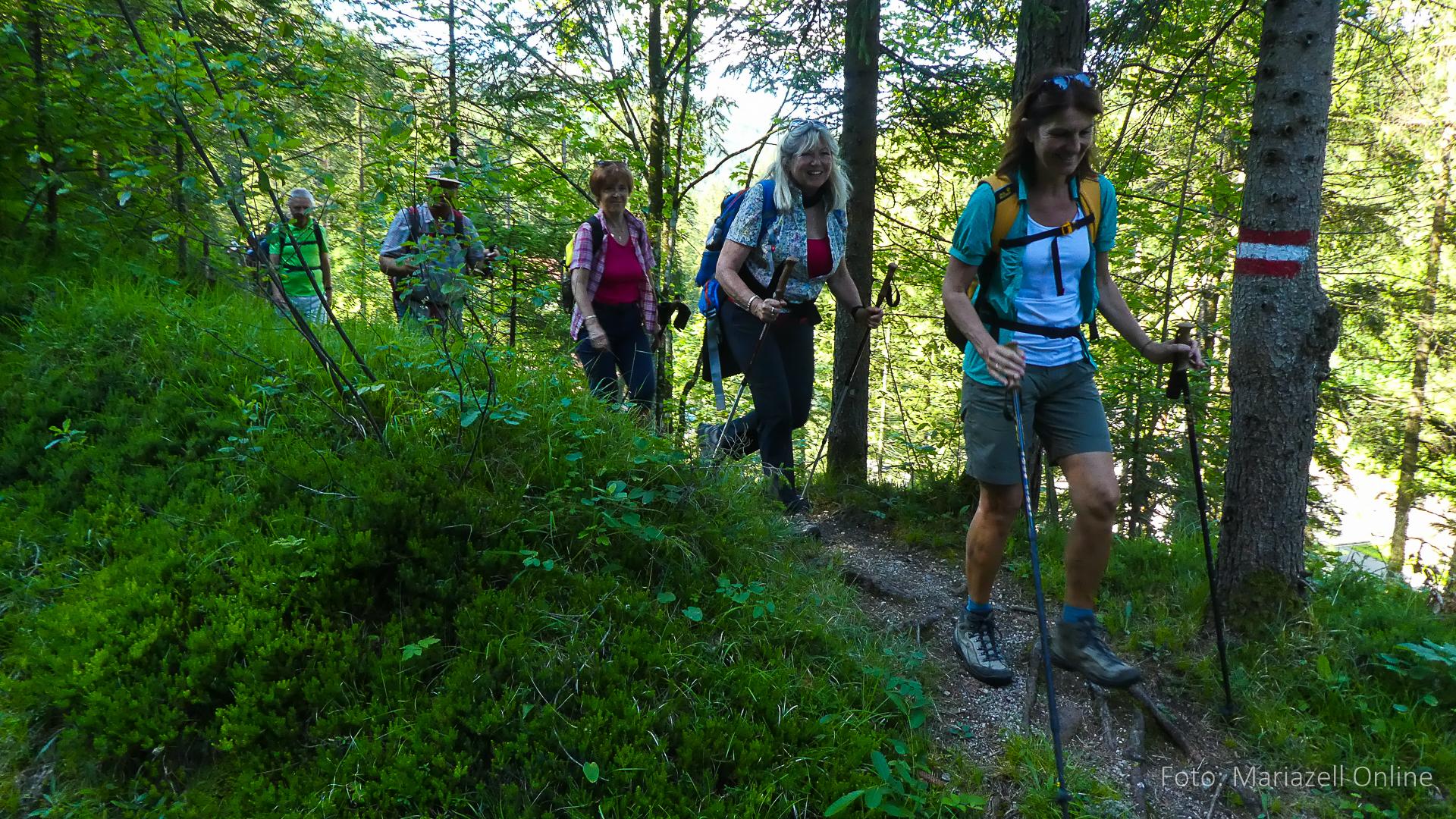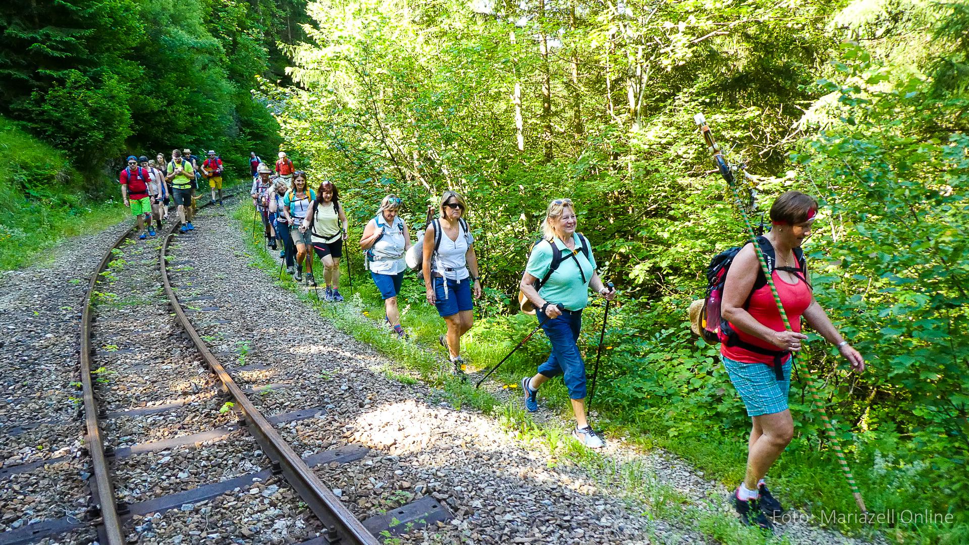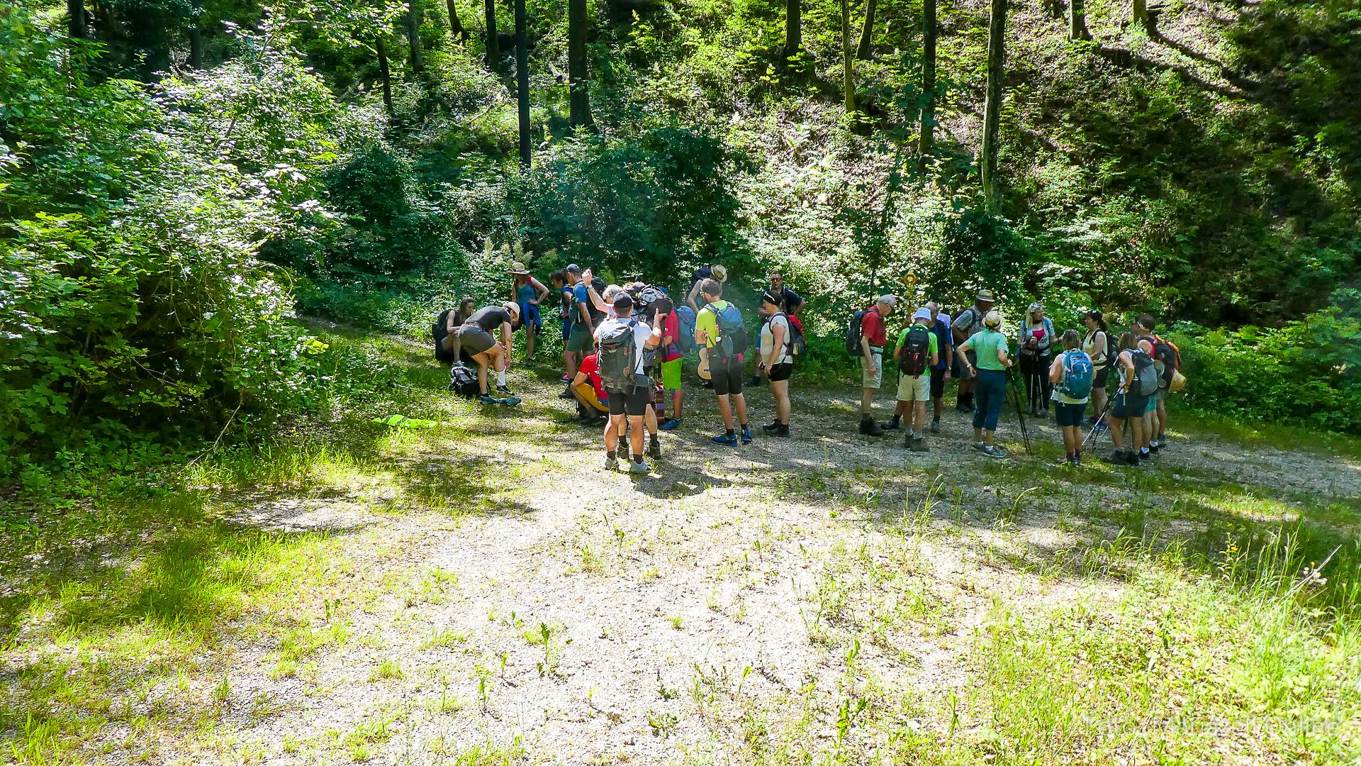 Lunz am See, Pfarrhaus, 7:45 Uhr: Die Gruppe macht sich abmarschbereit, neue Wallfahrer stoßen zur Gruppe, andere setzen einen Tag aus und fahren Im Begleitauto mit, um sich für den dritten Tag zu schonen. Nachdem auch noch die letzten Utensilien aus dem (bereits verschlossenen) Pfarrheim herausgebracht worden waren konnte es logehen. In einer geordneten Zweierreihe ging es – Rosenkranz betend – dem Tal entlang hinauf zum Gasthaus „Zur Paula“, wo auch heuer weitere Wallfahrer genächtigt hatten und bereits auf uns warteten.