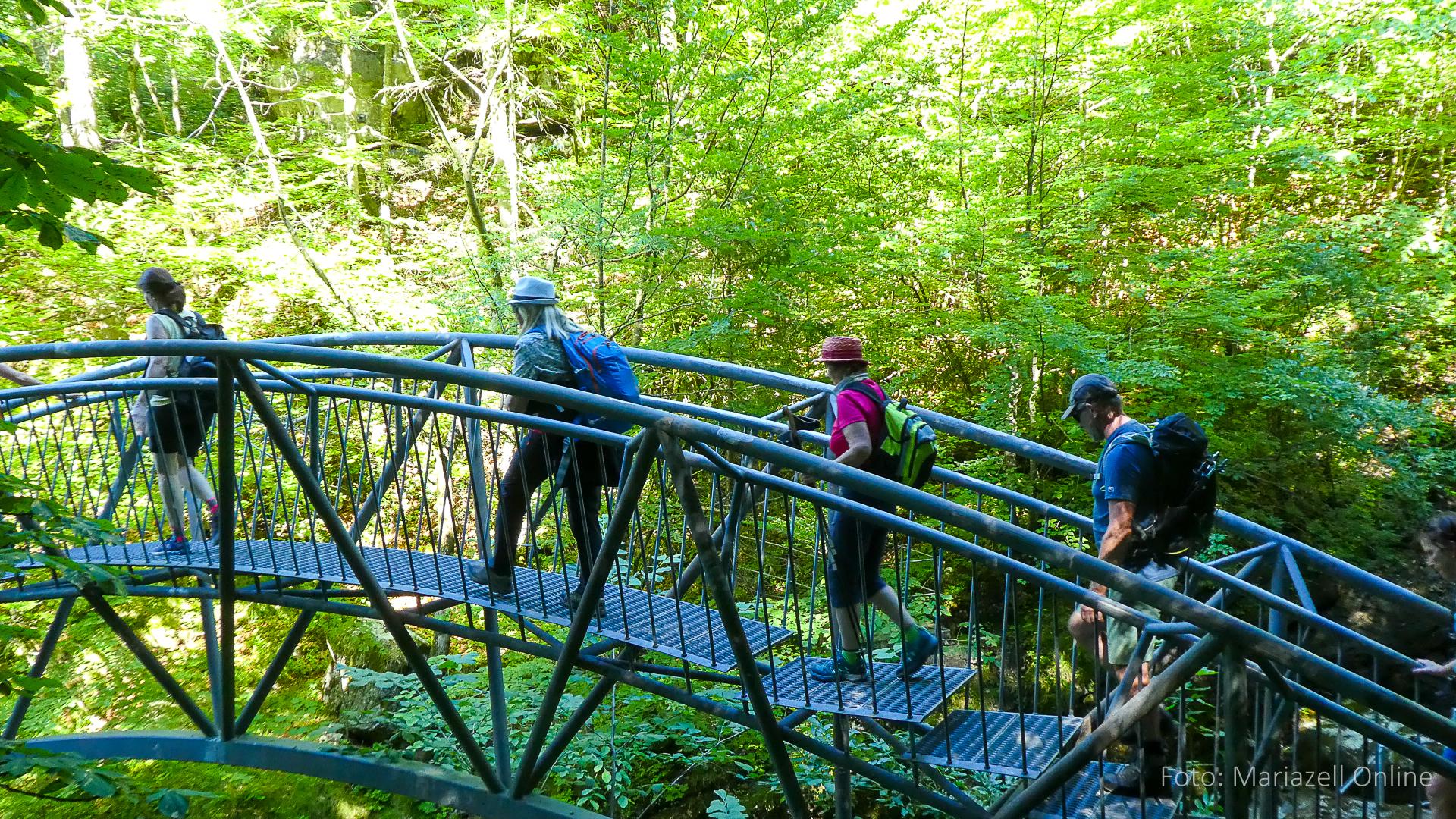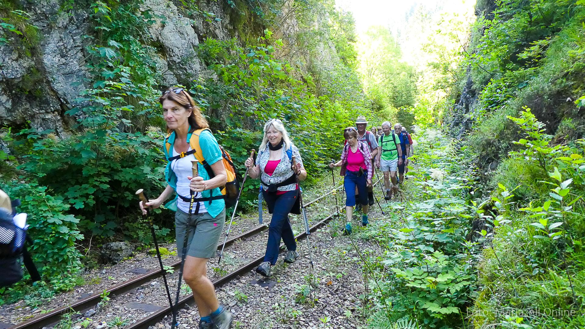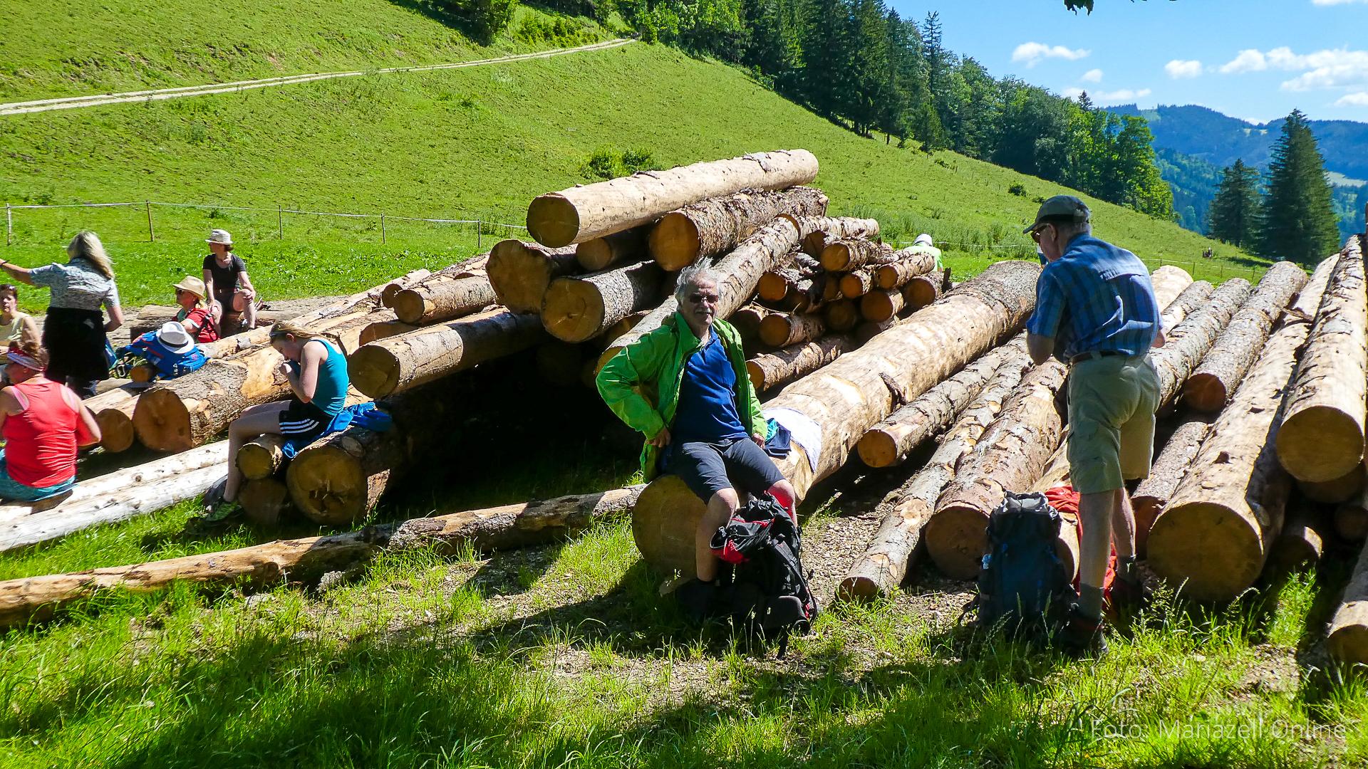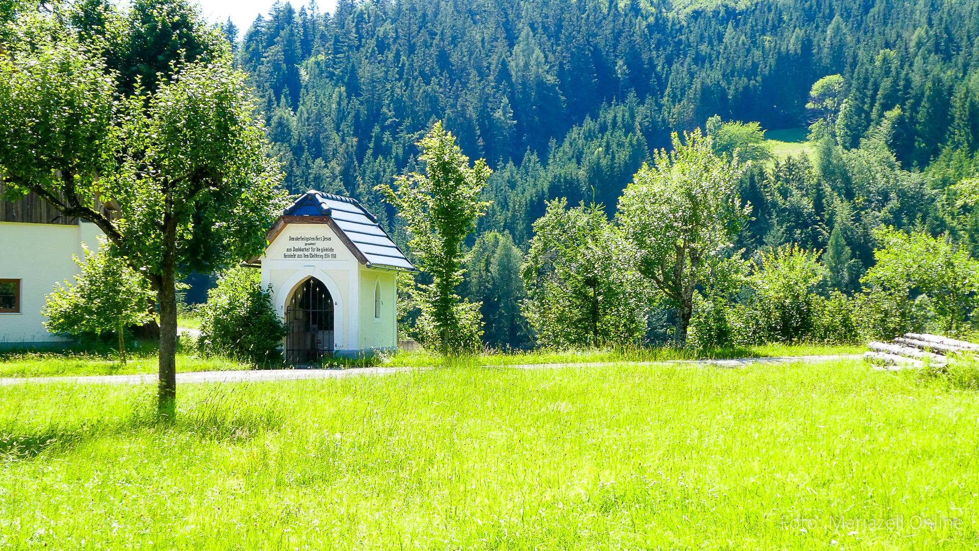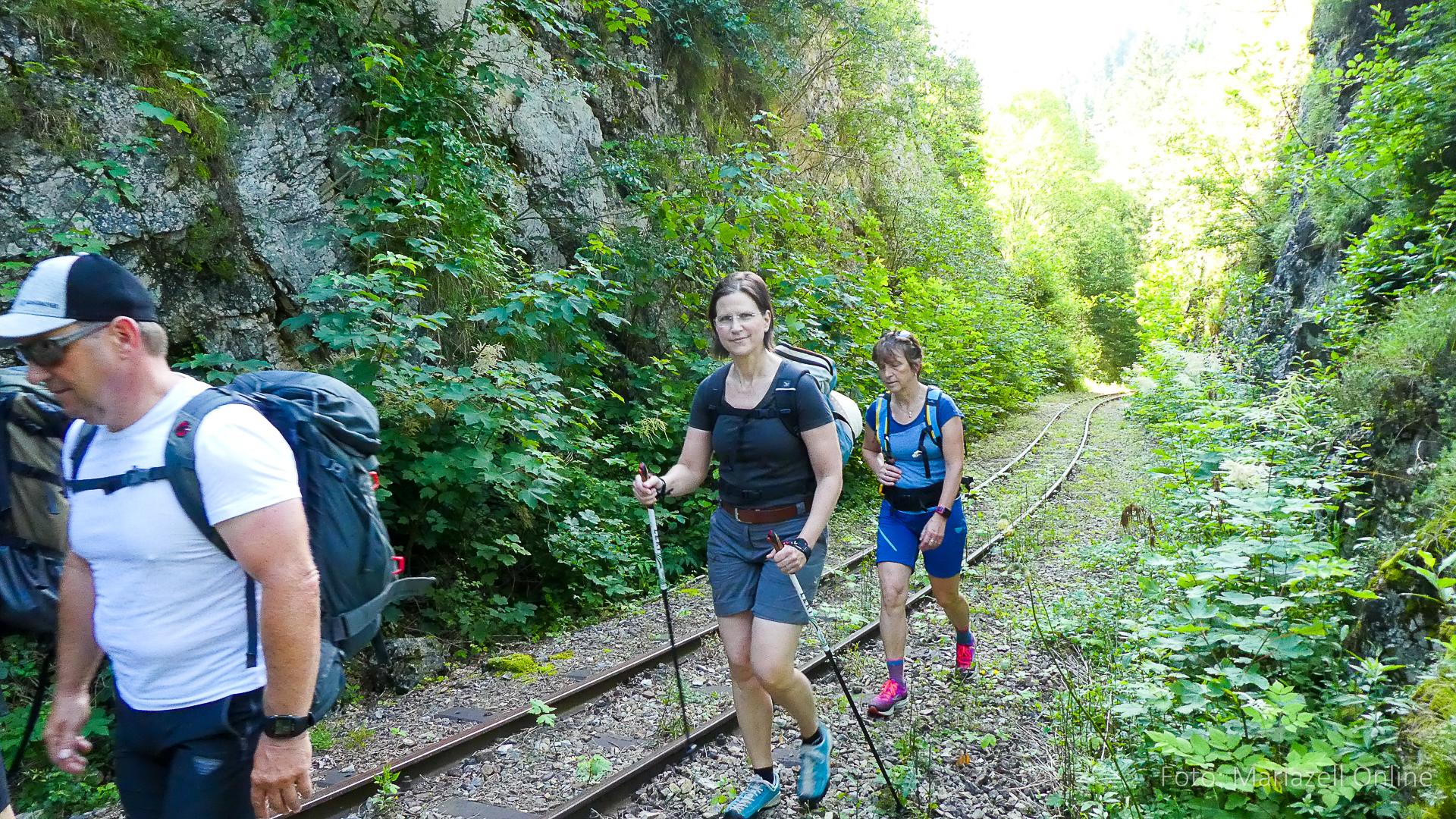 Lunz am See, Pfarrhaus, 7:45 Uhr: Die Gruppe macht sich abmarschbereit, neue Wallfahrer stoßen zur Gruppe, andere setzen einen Tag aus und fahren Im Begleitauto mit, um sich für den dritten Tag zu schonen. Nachdem auch noch die letzten Utensilien aus dem (bereits verschlossenen) Pfarrheim herausgebracht worden waren konnte es logehen. In einer geordneten Zweierreihe ging es – Rosenkranz betend – dem Tal entlang hinauf zum Gasthaus „Zur Paula“, wo auch heuer weitere Wallfahrer genächtigt hatten und bereits auf uns warteten.