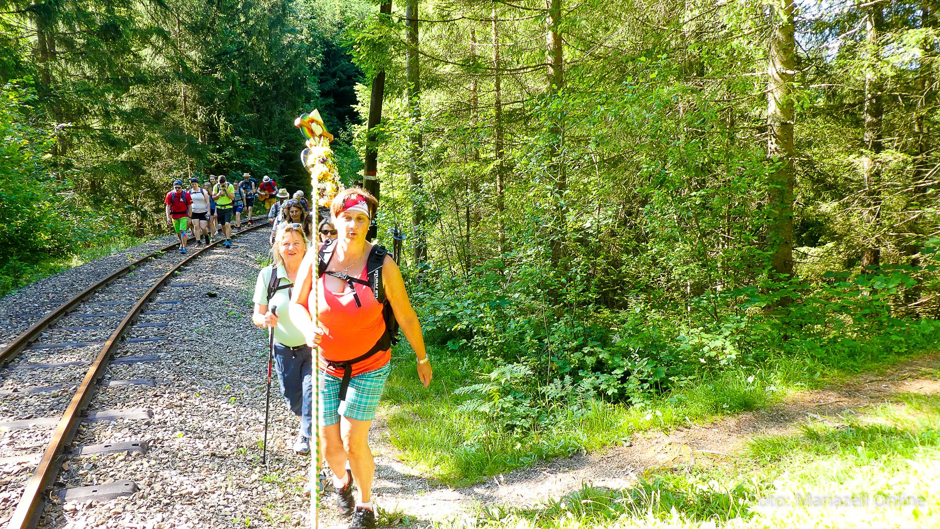 Der zweite Tag der Wallfahrt begann bei strahlendem Sonnenschein. Im Gegensatz zu den schattigen Waldwegen gestern würde sich heute ein Gutteil der Strecke auf die Straße verlagern, es könnte also zumindest stellenweise ziemlich heiß werden heute.