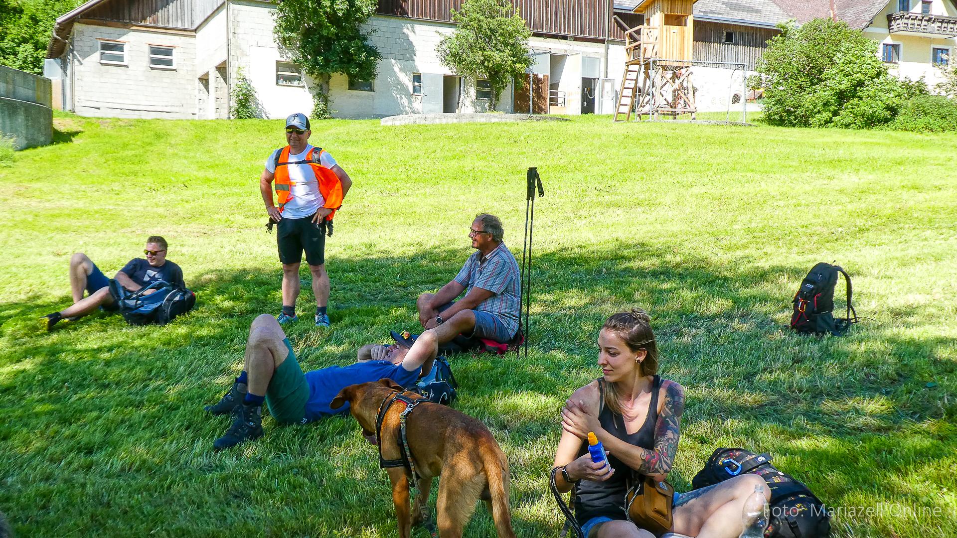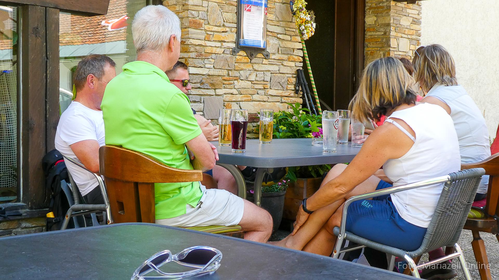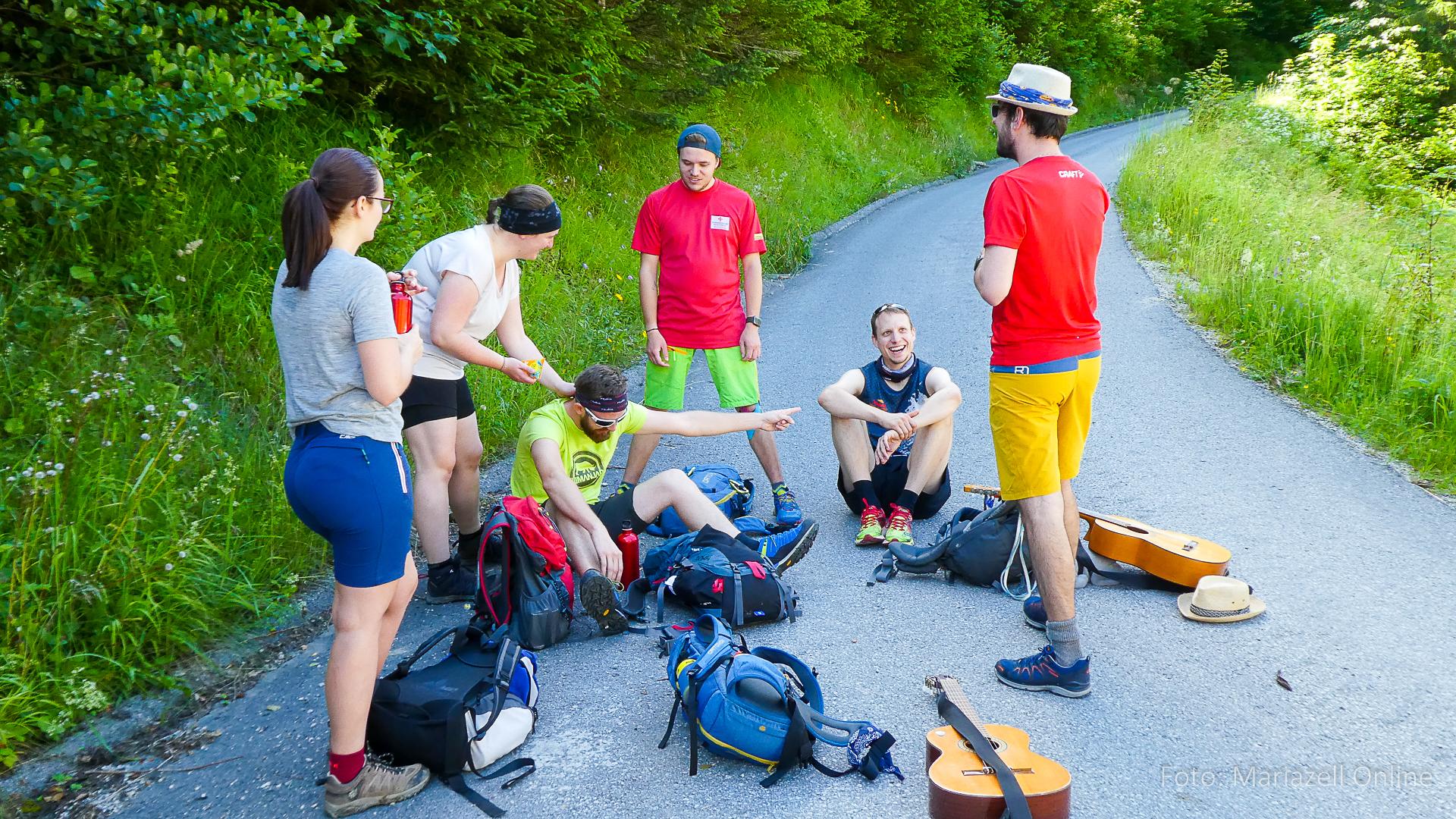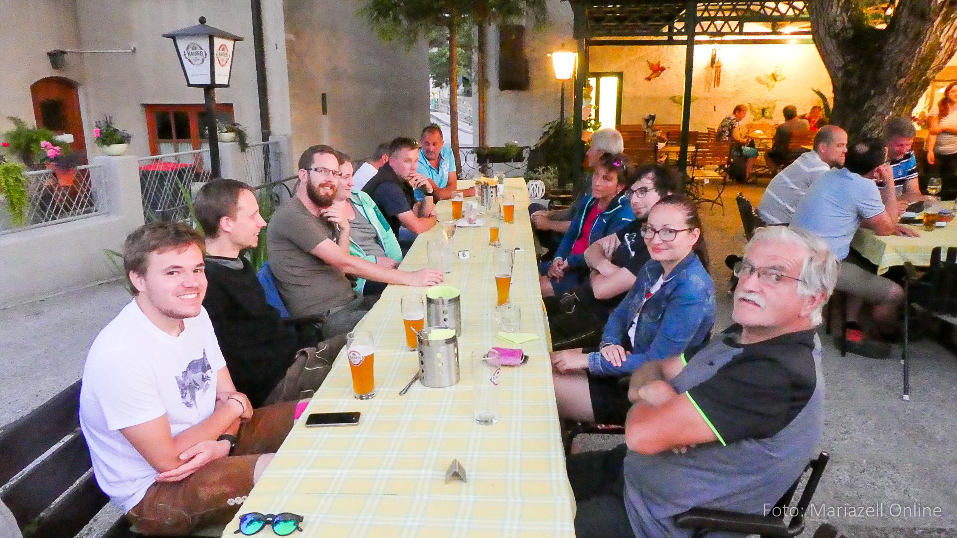 Dort wartete bereits unser Gepäcktransporter Martin – Pater Sebastian war mit dem Auto aus Mariazell gekommen, um dort mit uns Wallfahrern den Sonntagsgottesdienst zu feiern. Danach folgte erst einmal eine ordentliche Stärkung, um dann den Rest der Sonntagsetappe bis nach Ybbsitz in Angriff zu nehmen. Wie jedes Jahr wurde dann in der Pizzeria in Ybbsitz ausgiebig gegessen und der Abschluss der zweiten Etappe gefeiert.