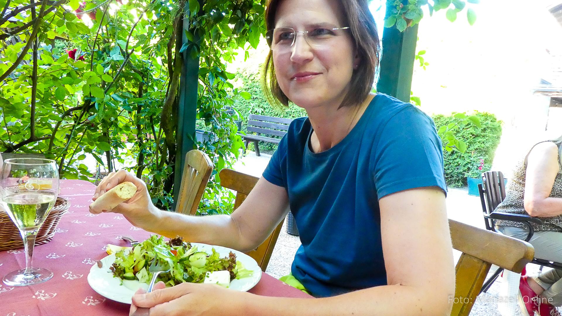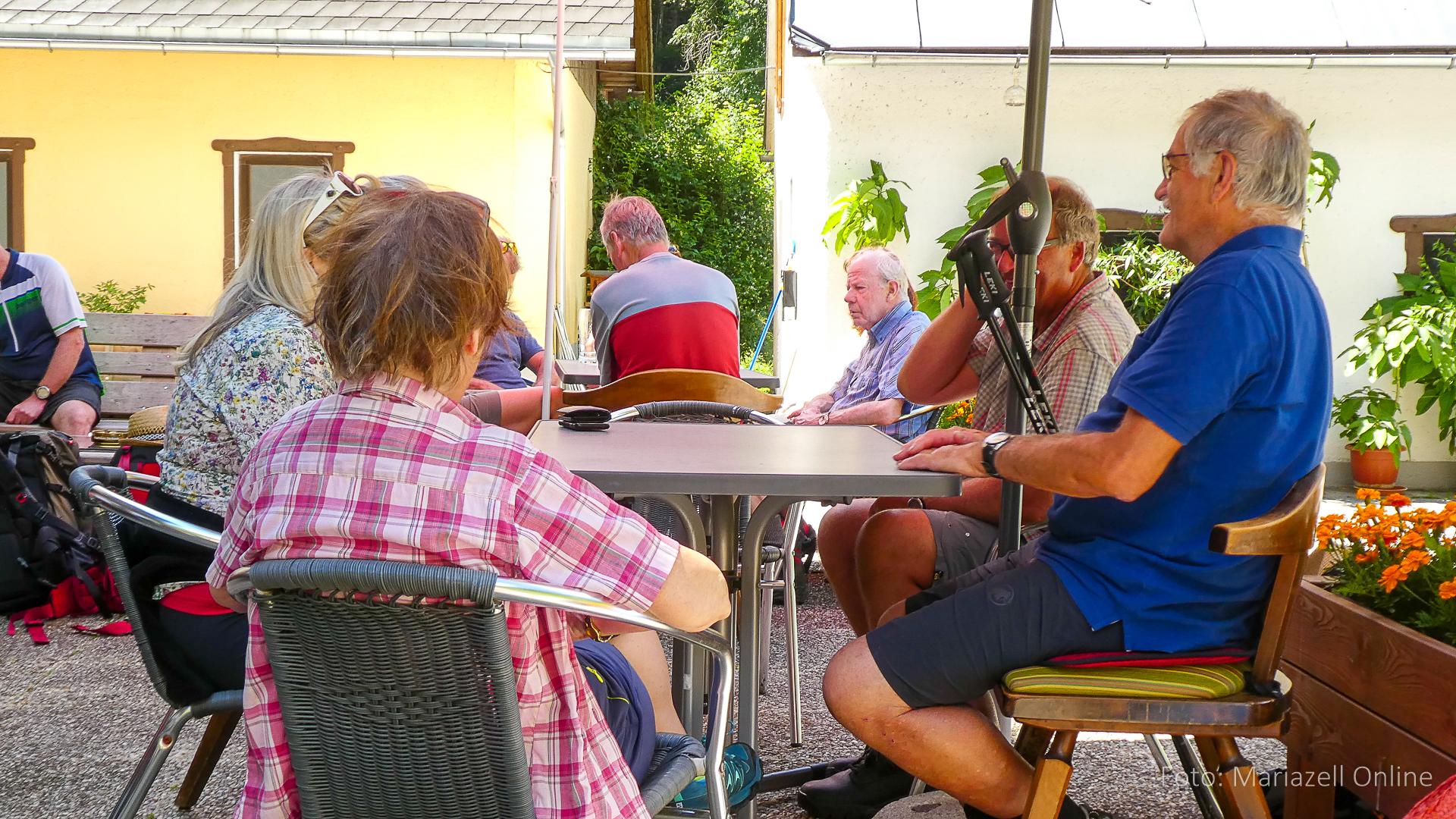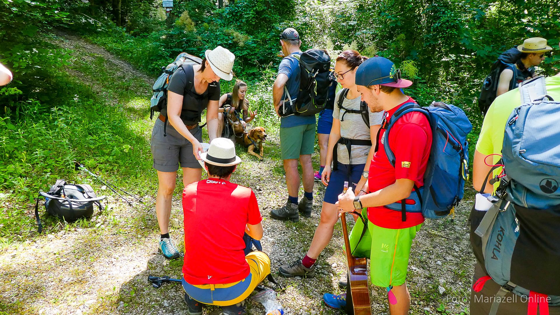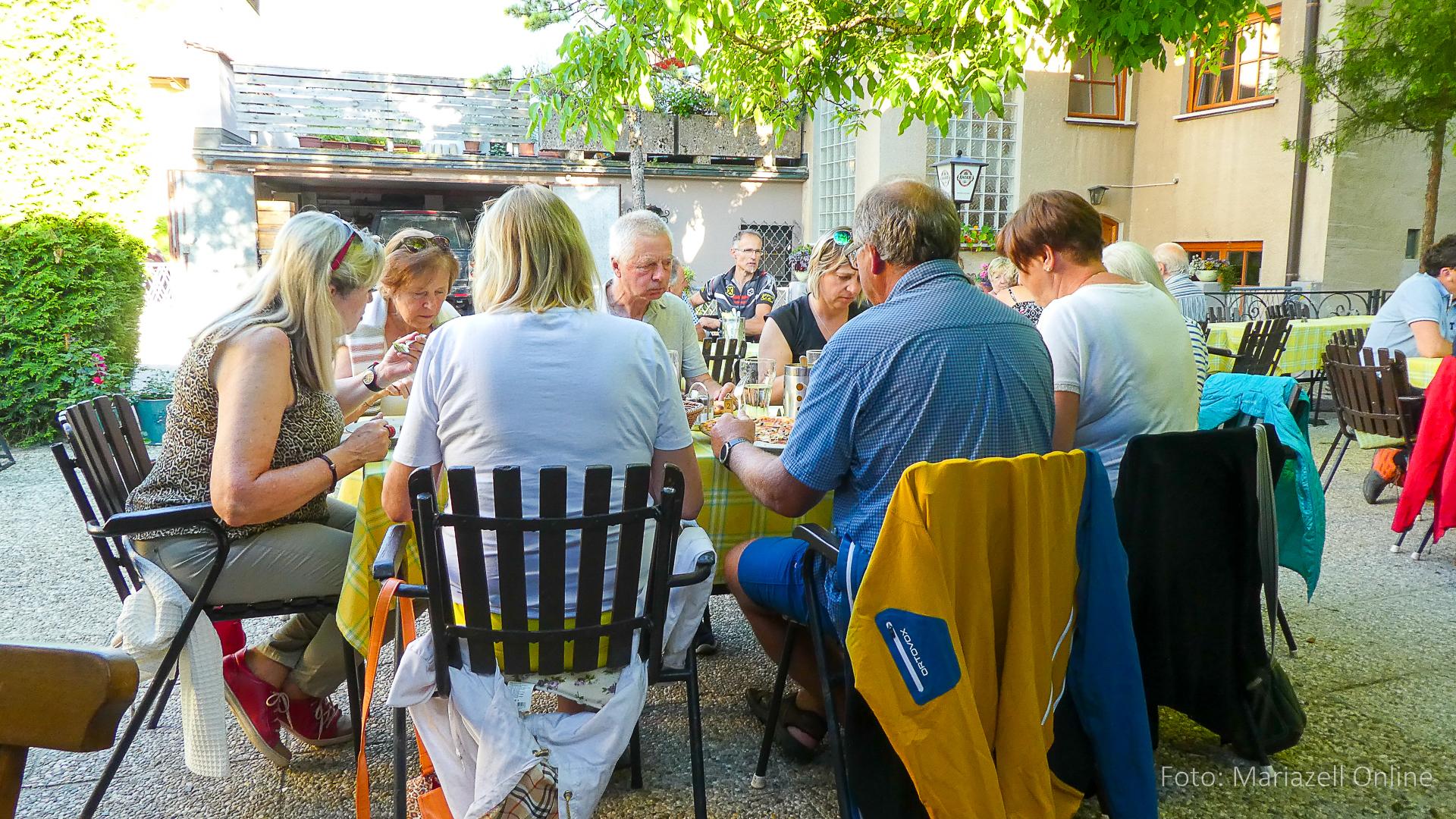 Dort wartete bereits unser Gepäcktransporter Martin – Pater Sebastian war mit dem Auto aus Mariazell gekommen, um dort mit uns Wallfahrern den Sonntagsgottesdienst zu feiern. Danach folgte erst einmal eine ordentliche Stärkung, um dann den Rest der Sonntagsetappe bis nach Ybbsitz in Angriff zu nehmen. Wie jedes Jahr wurde dann in der Pizzeria in Ybbsitz ausgiebig gegessen und der Abschluss der zweiten Etappe gefeiert.