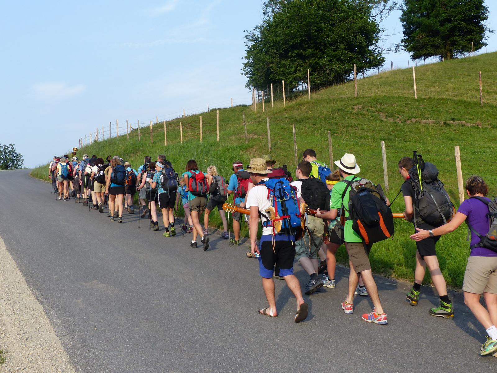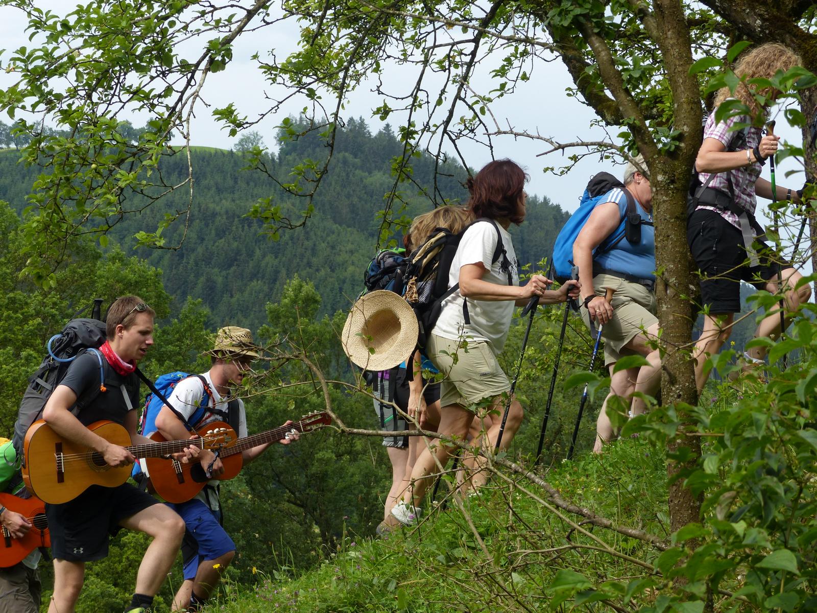 So manche Füße waren inzwischen wundgelaufen, auch die vom Gitarrenspiel schon etwas in Mitleidenschaft gezogenen Finger waren eingebunden worden – trotzdem ging es unermüdlich weiter dem Ziel zu.
