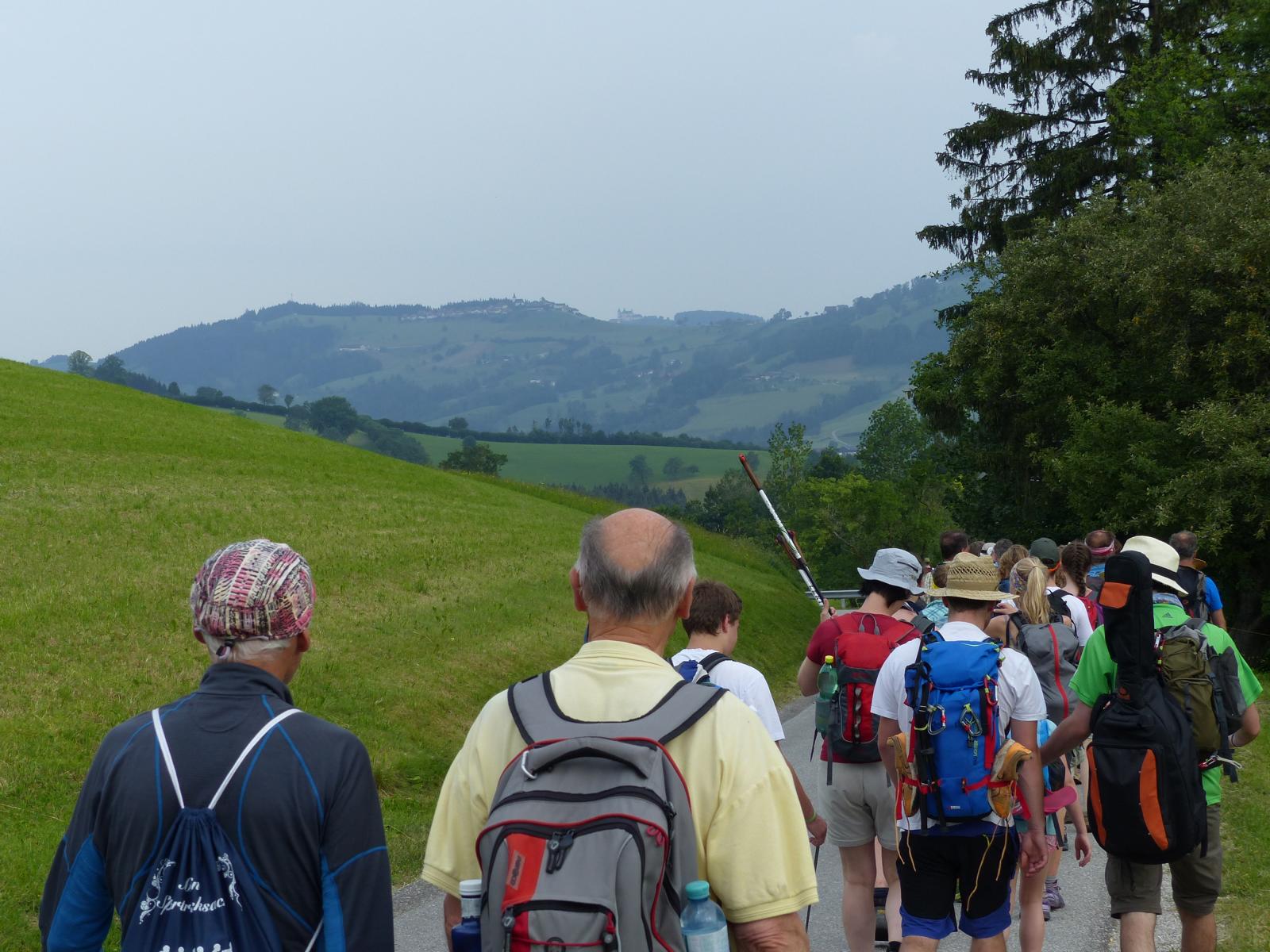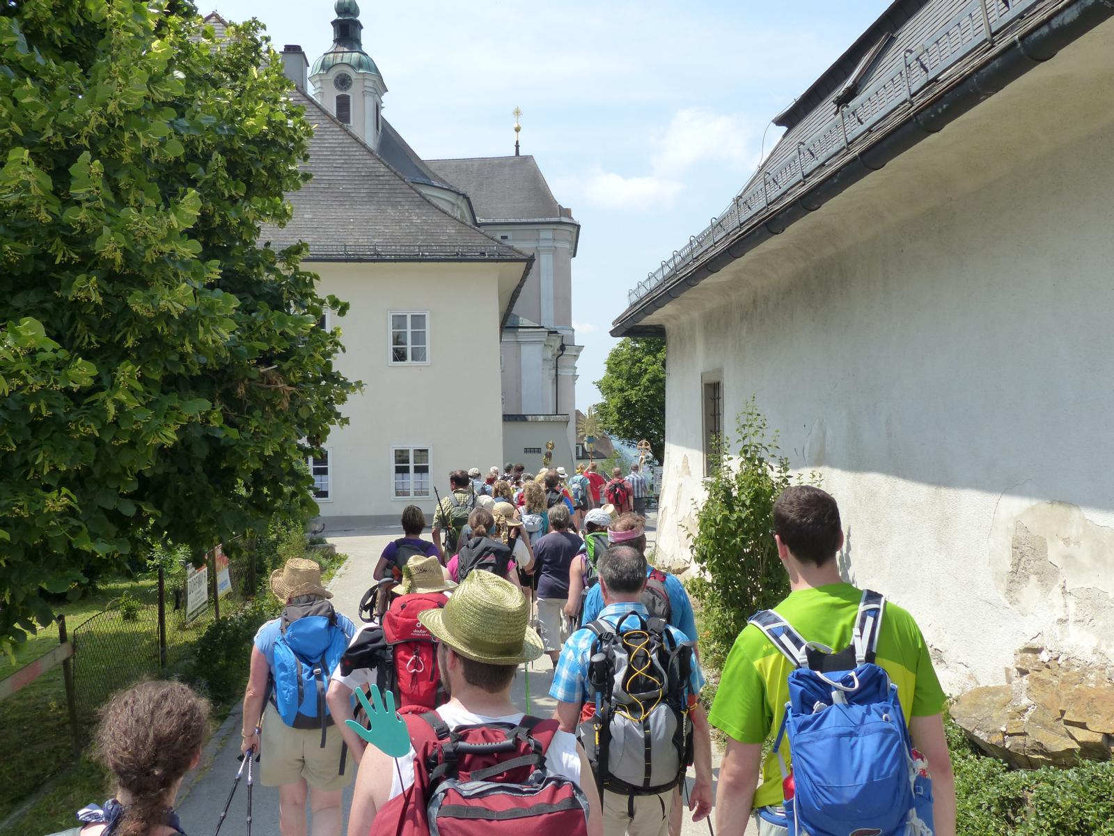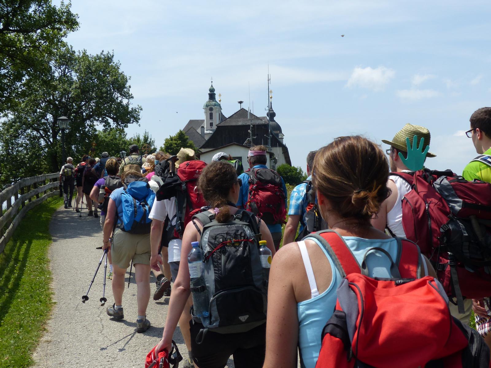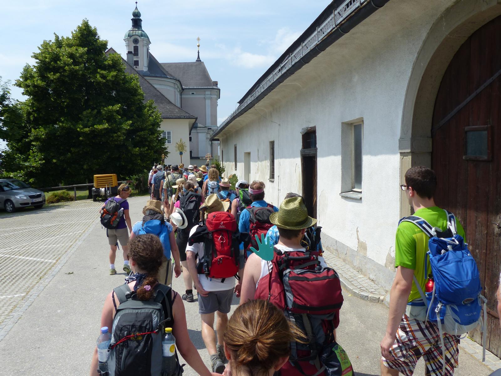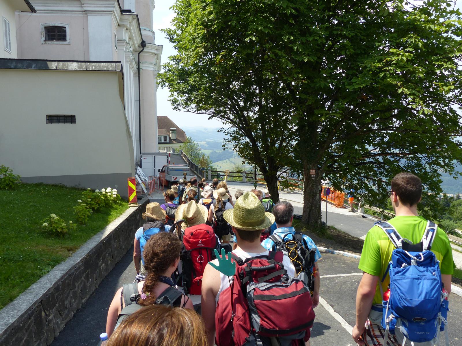 Die letzte Steigung des Tages führte uns dann endlich auf den Sonntagberg – dort nahmen wir dann wieder geordnete Aufstellung an und zogen mit einem von den Gitarristen begleiteten Hallelujah in die Basilika ein – nach drei Tagen Fußmarsch ein sehr ergreifender und berührender Moment.