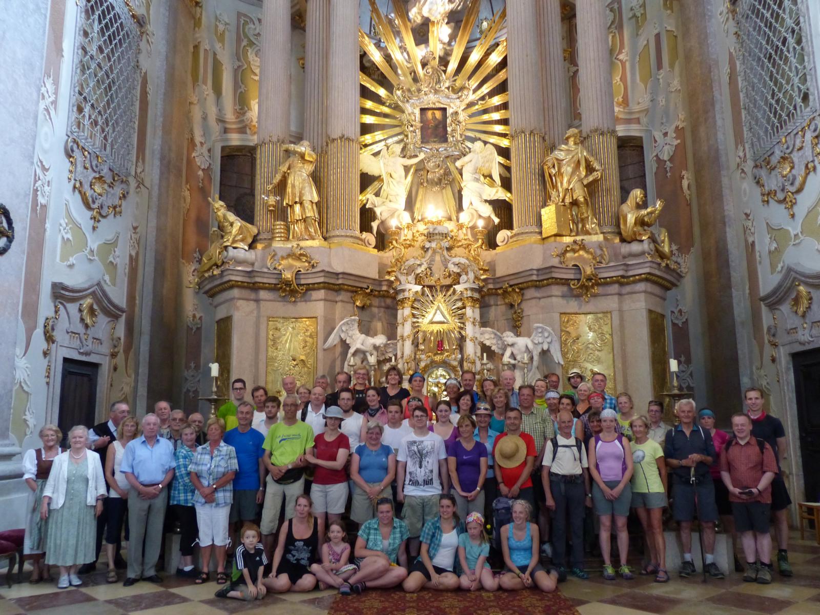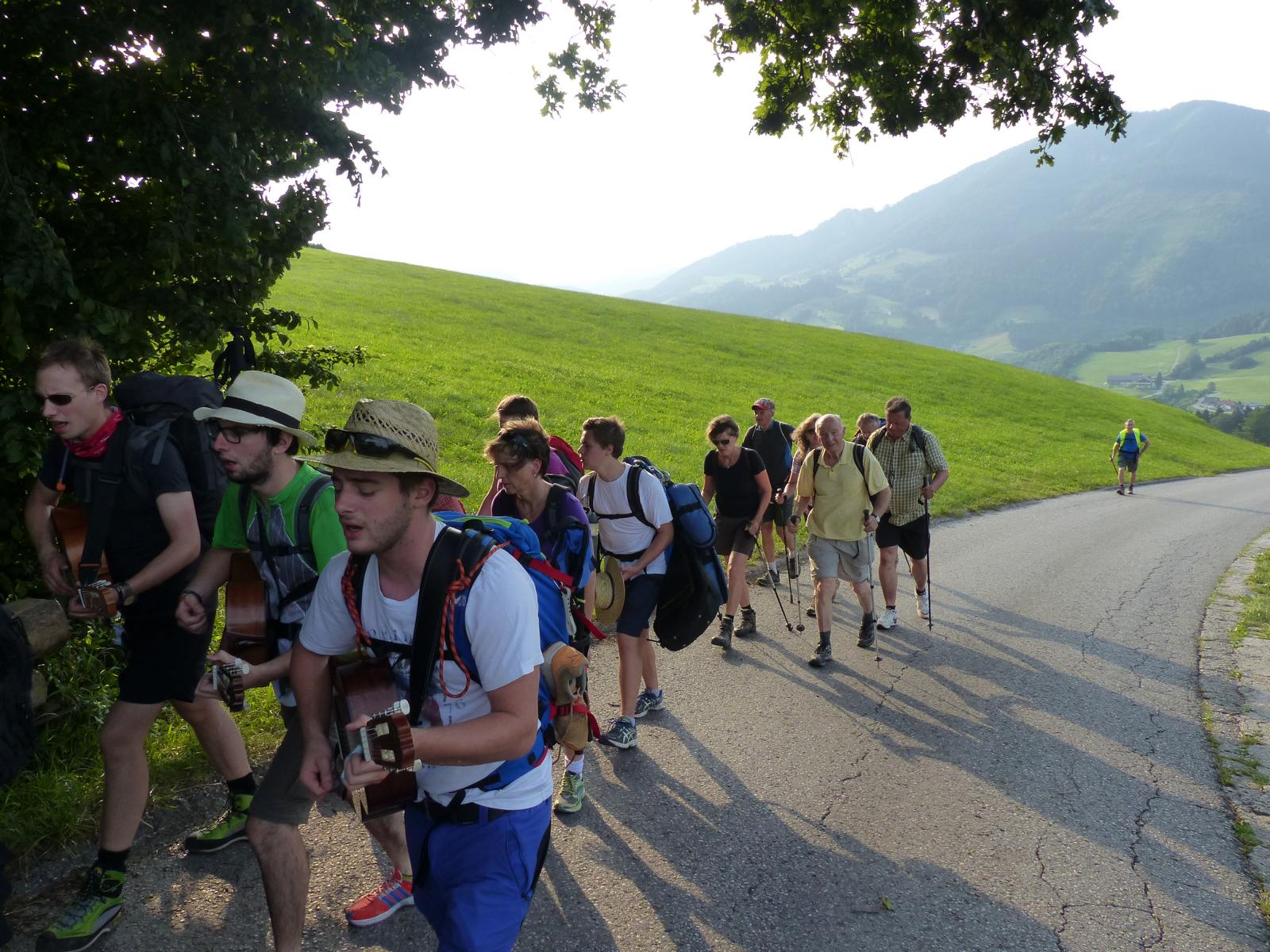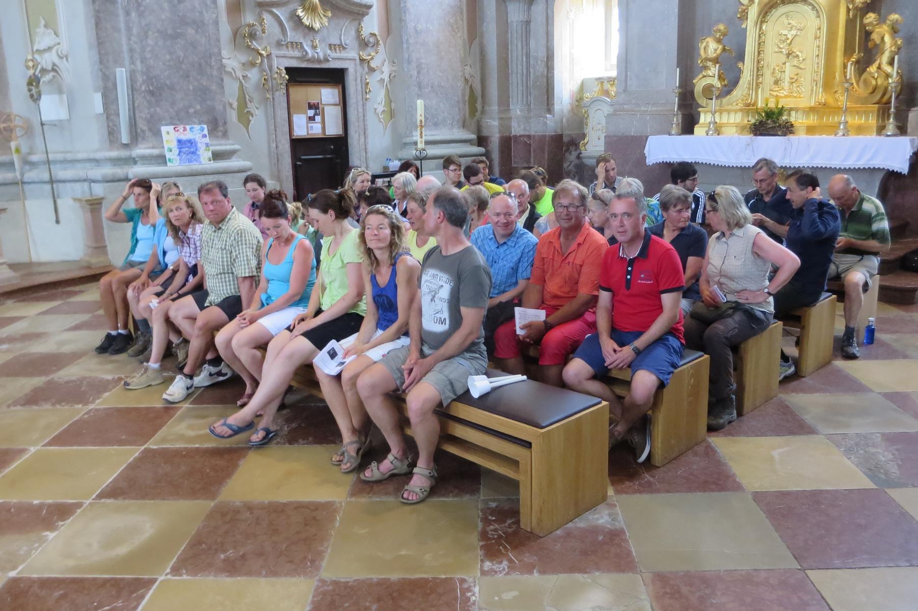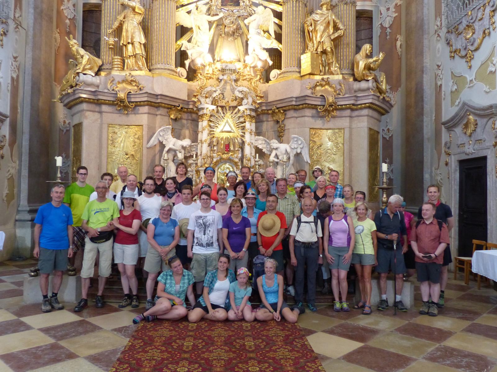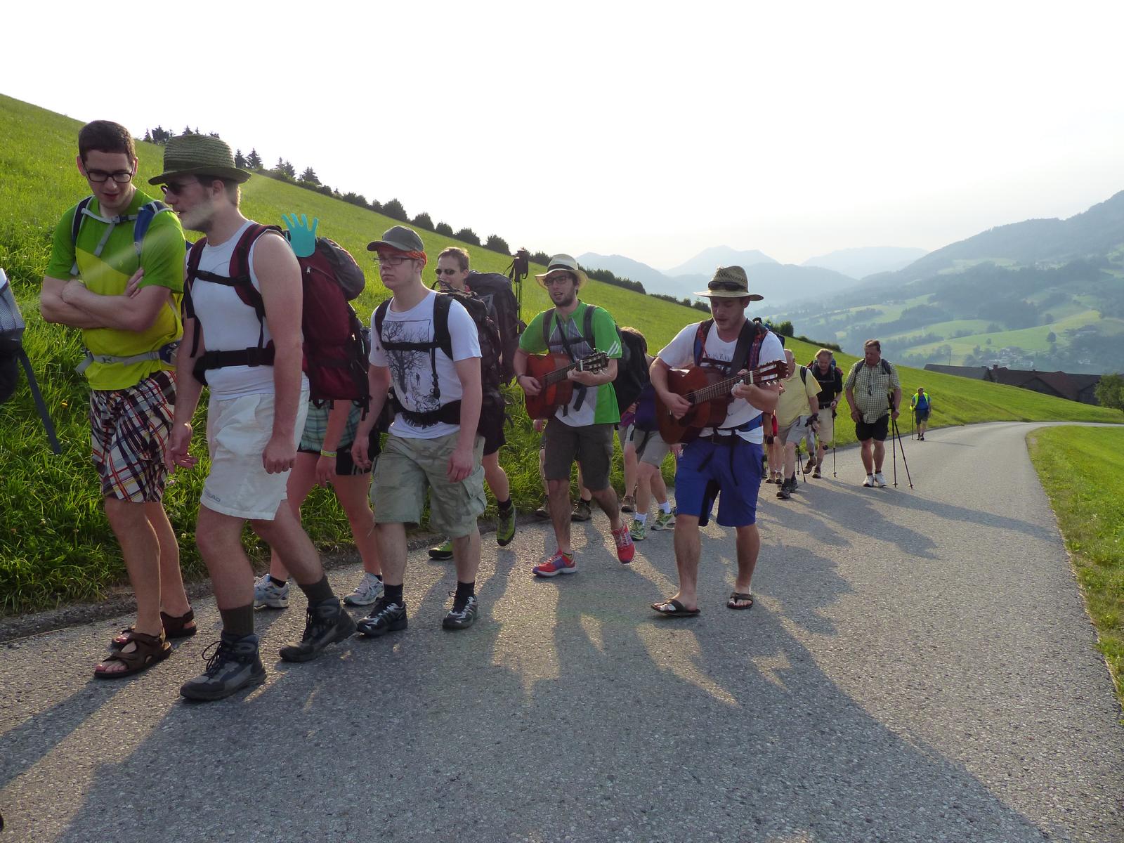 Die letzte Steigung des Tages führte uns dann endlich auf den Sonntagberg – dort nahmen wir dann wieder geordnete Aufstellung an und zogen mit einem von den Gitarristen begleiteten Hallelujah in die Basilika ein – nach drei Tagen Fußmarsch ein sehr ergreifender und berührender Moment.