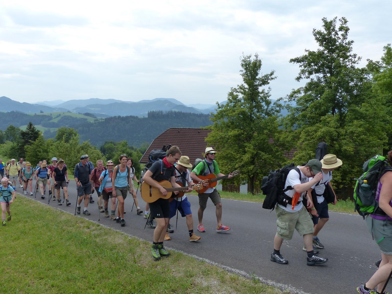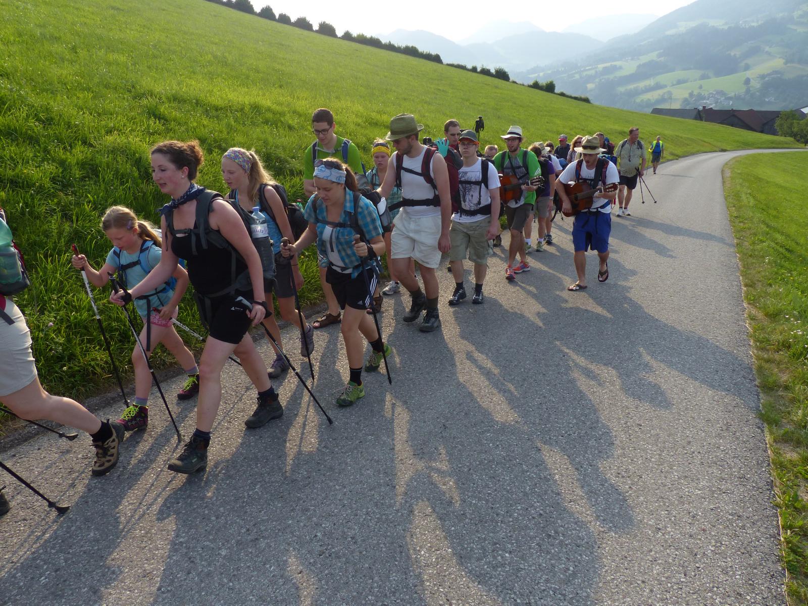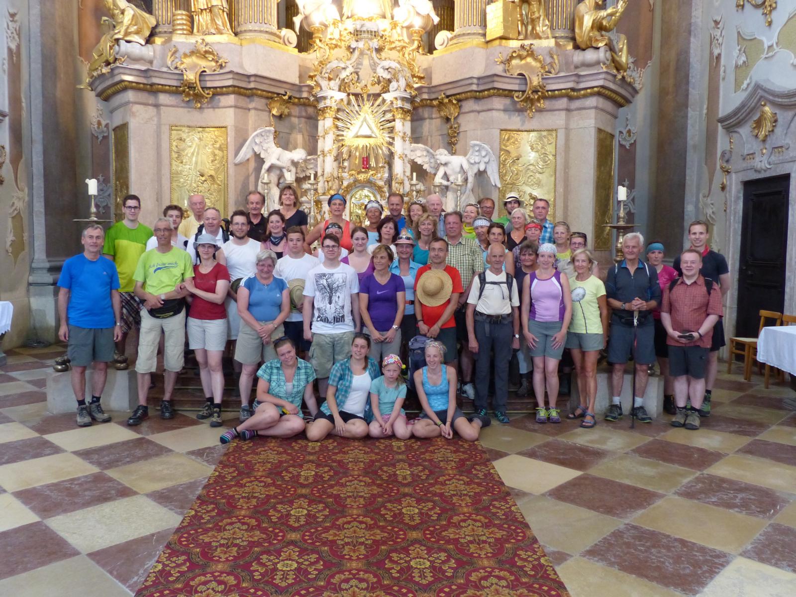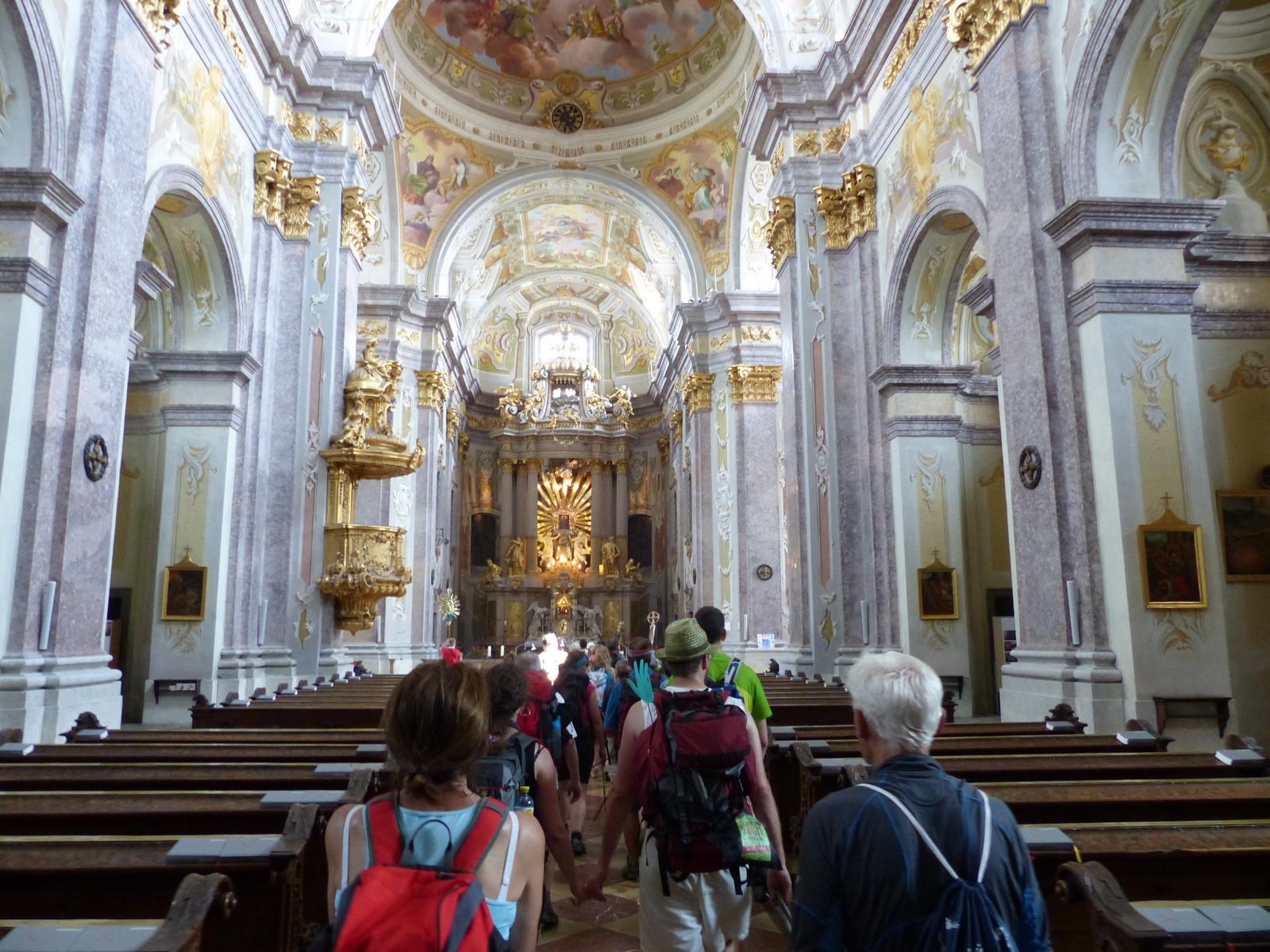 Die letzte Steigung des Tages führte uns dann endlich auf den Sonntagberg – dort nahmen wir dann wieder geordnete Aufstellung an und zogen mit einem von den Gitarristen begleiteten Hallelujah in die Basilika ein – nach drei Tagen Fußmarsch ein sehr ergreifender und berührender Moment.