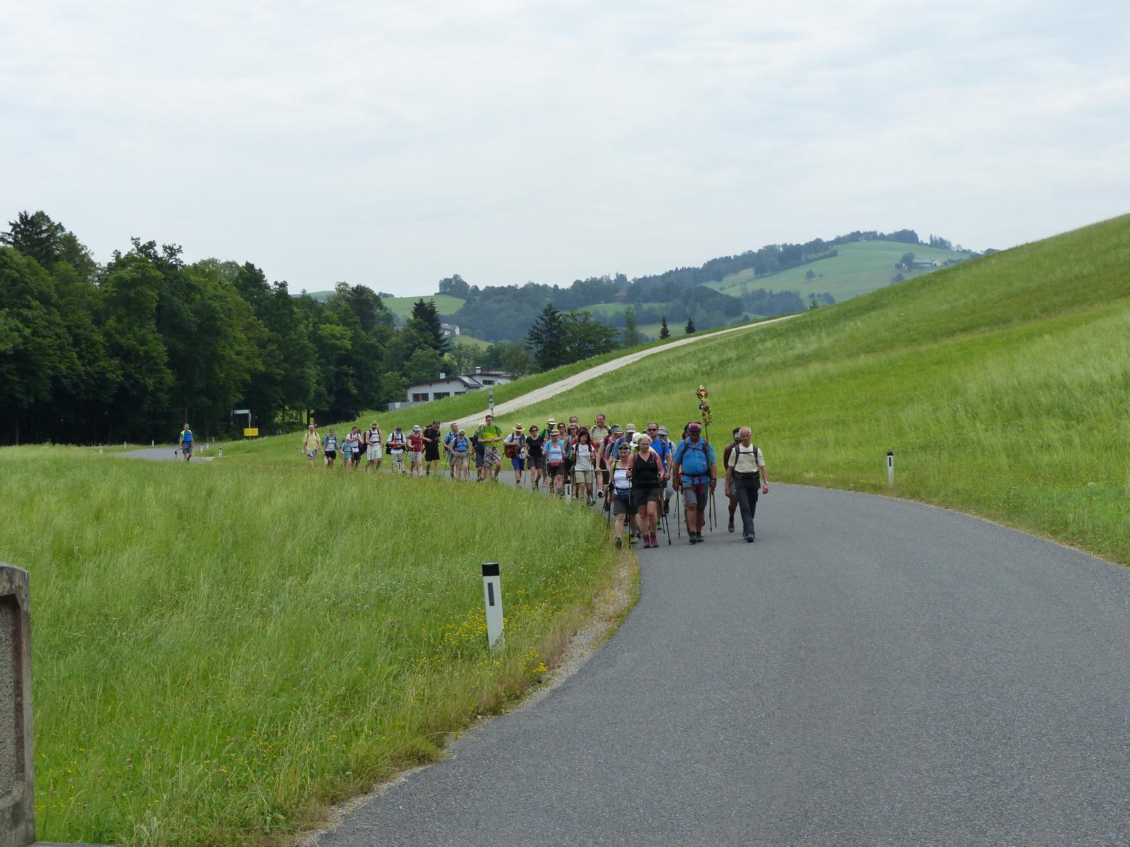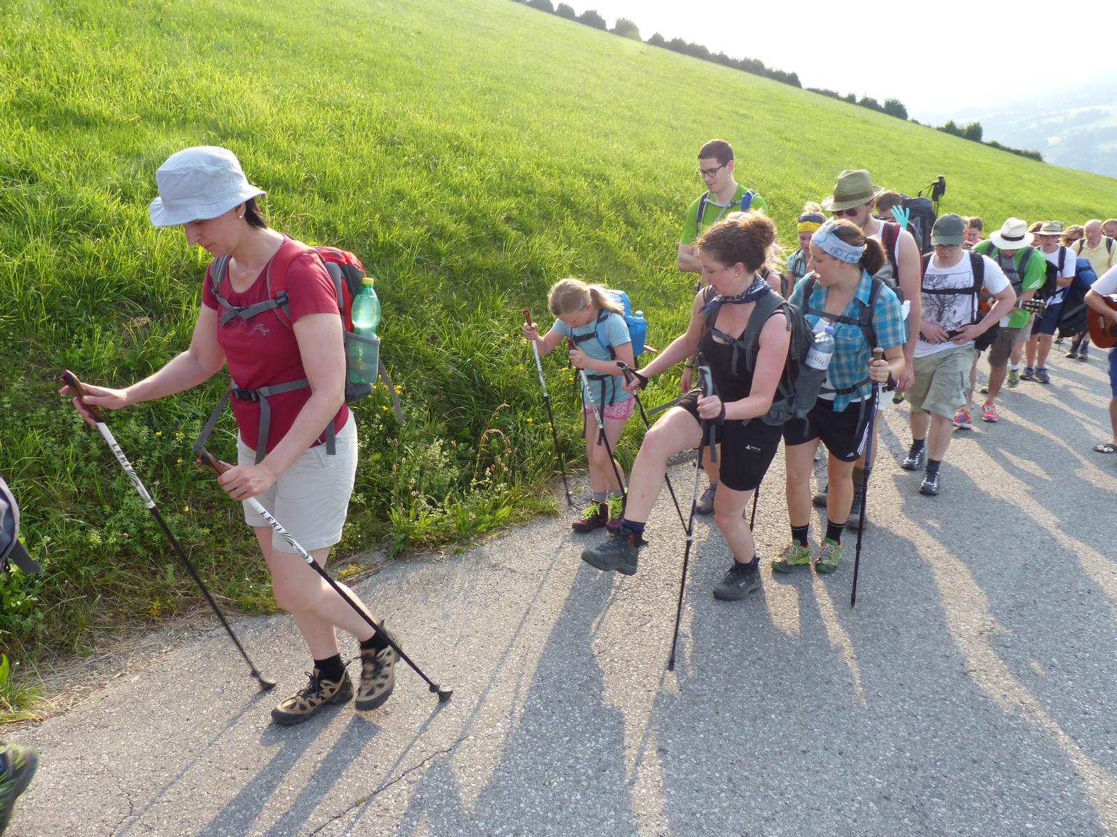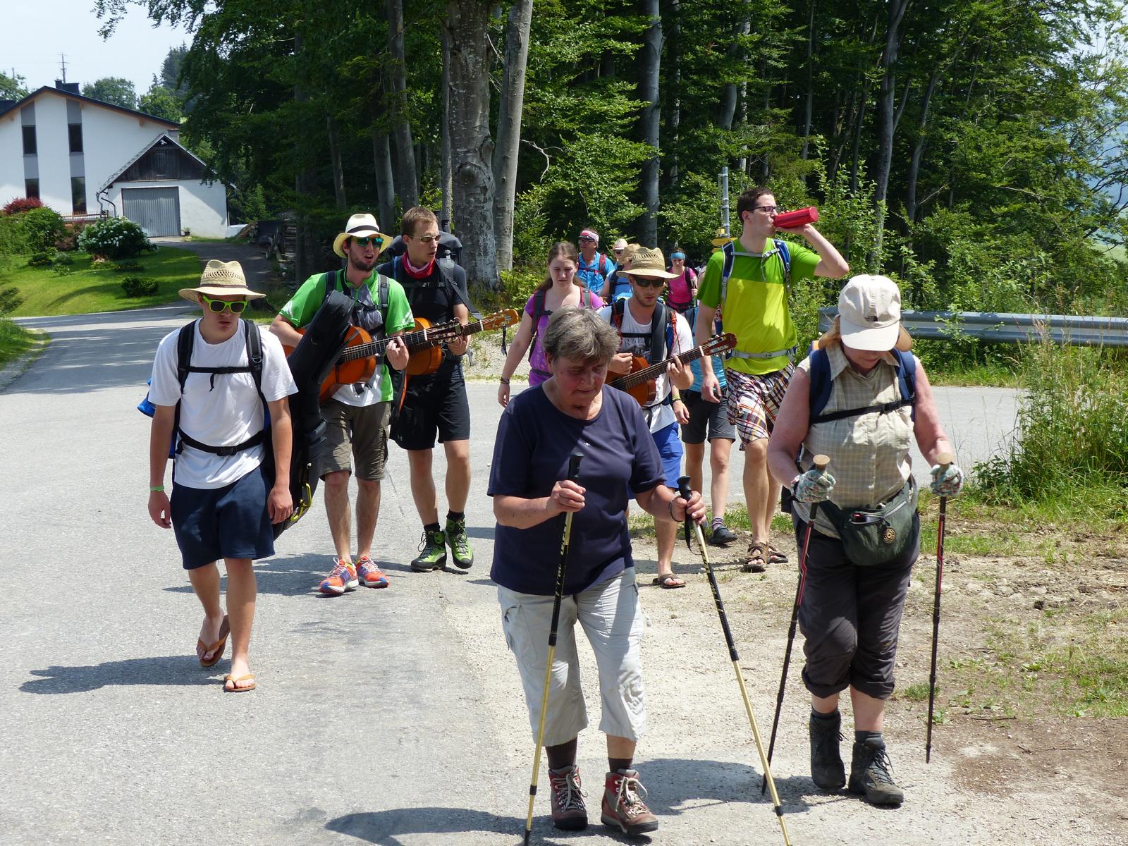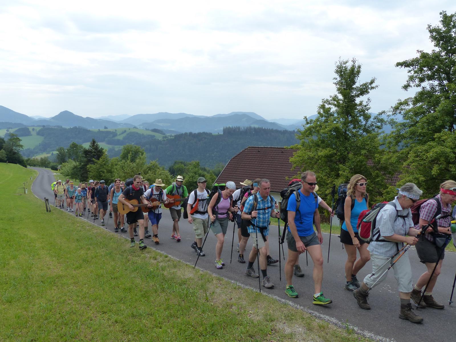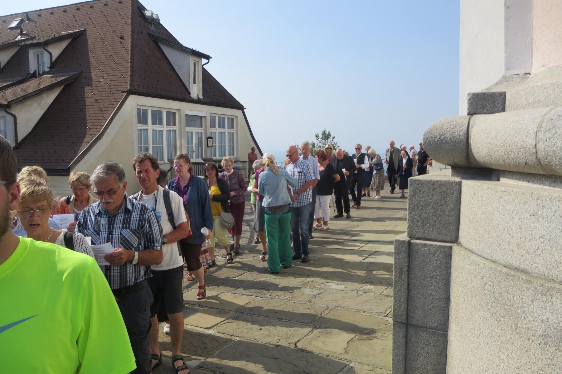 Die letzte Steigung des Tages führte uns dann endlich auf den Sonntagberg – dort nahmen wir dann wieder geordnete Aufstellung an und zogen mit einem von den Gitarristen begleiteten Hallelujah in die Basilika ein – nach drei Tagen Fußmarsch ein sehr ergreifender und berührender Moment.