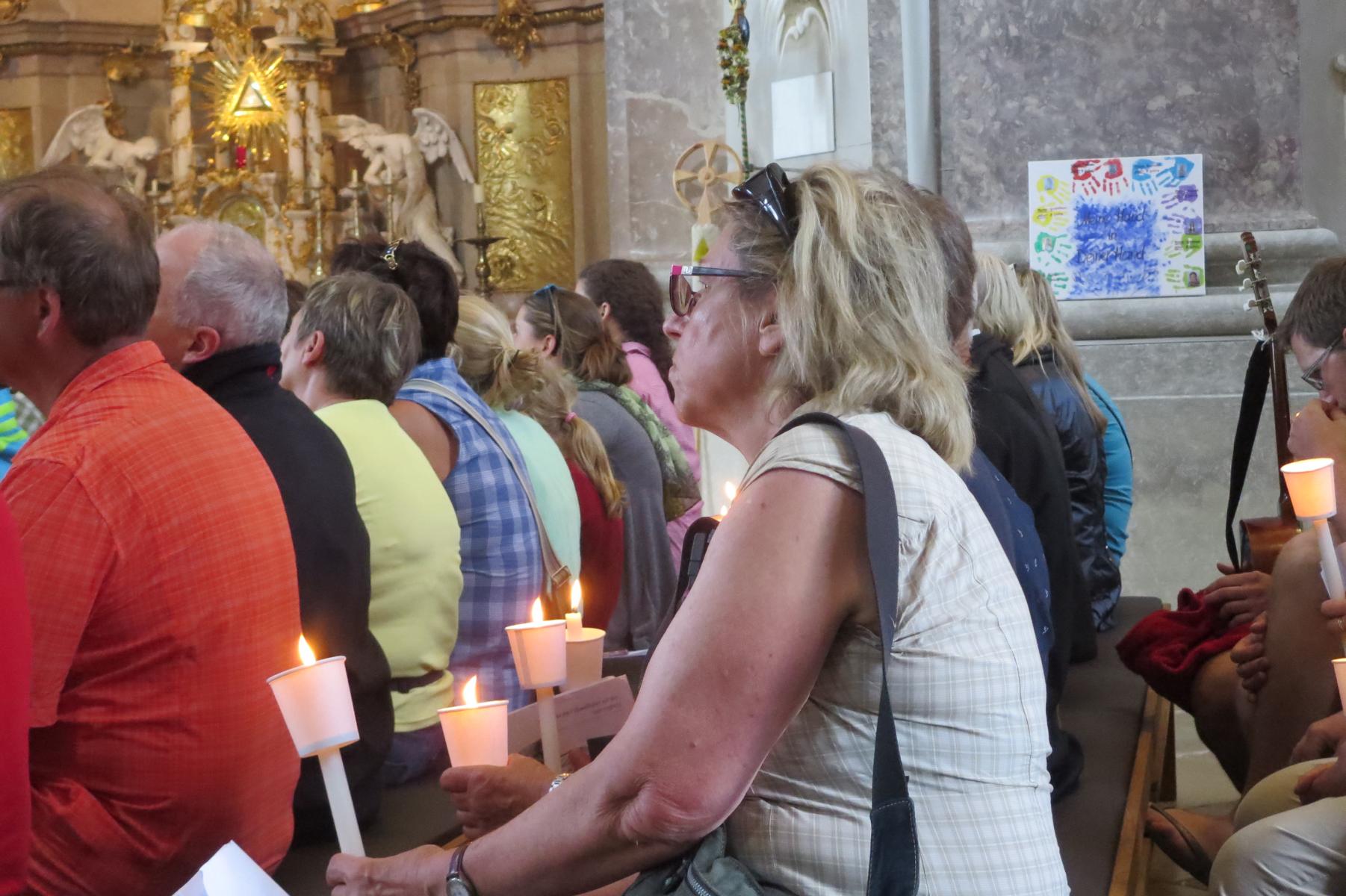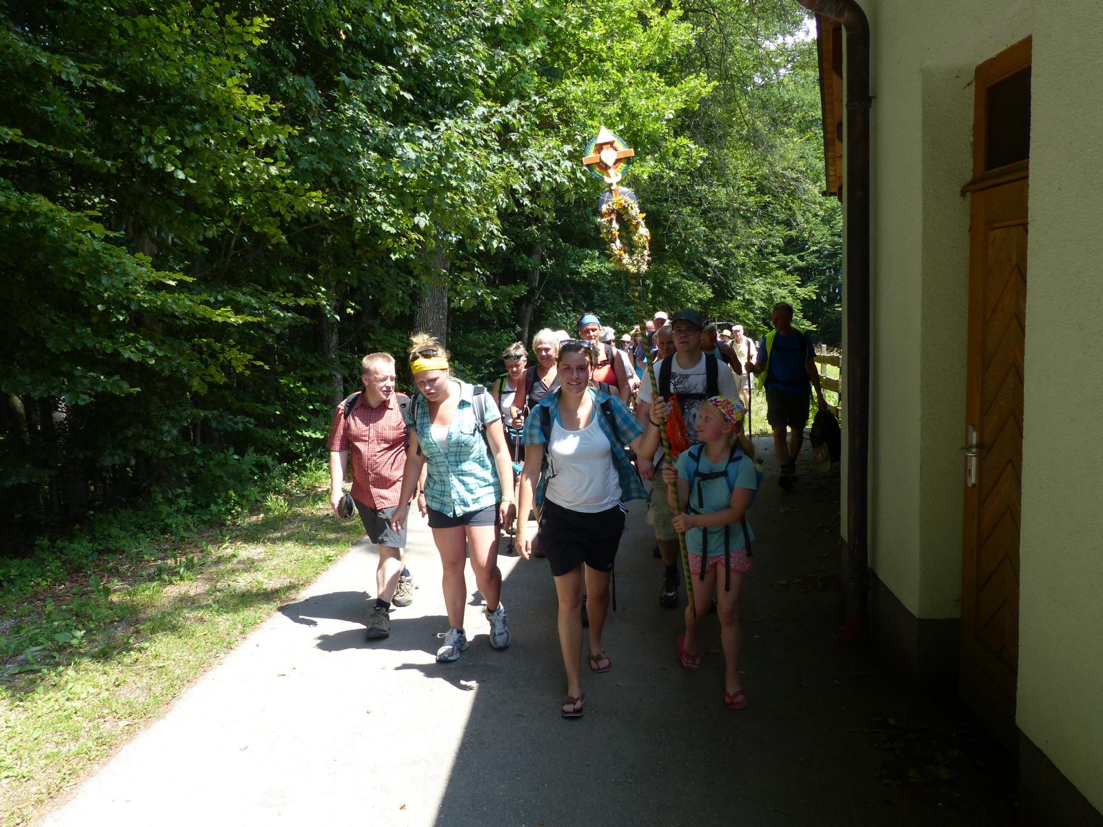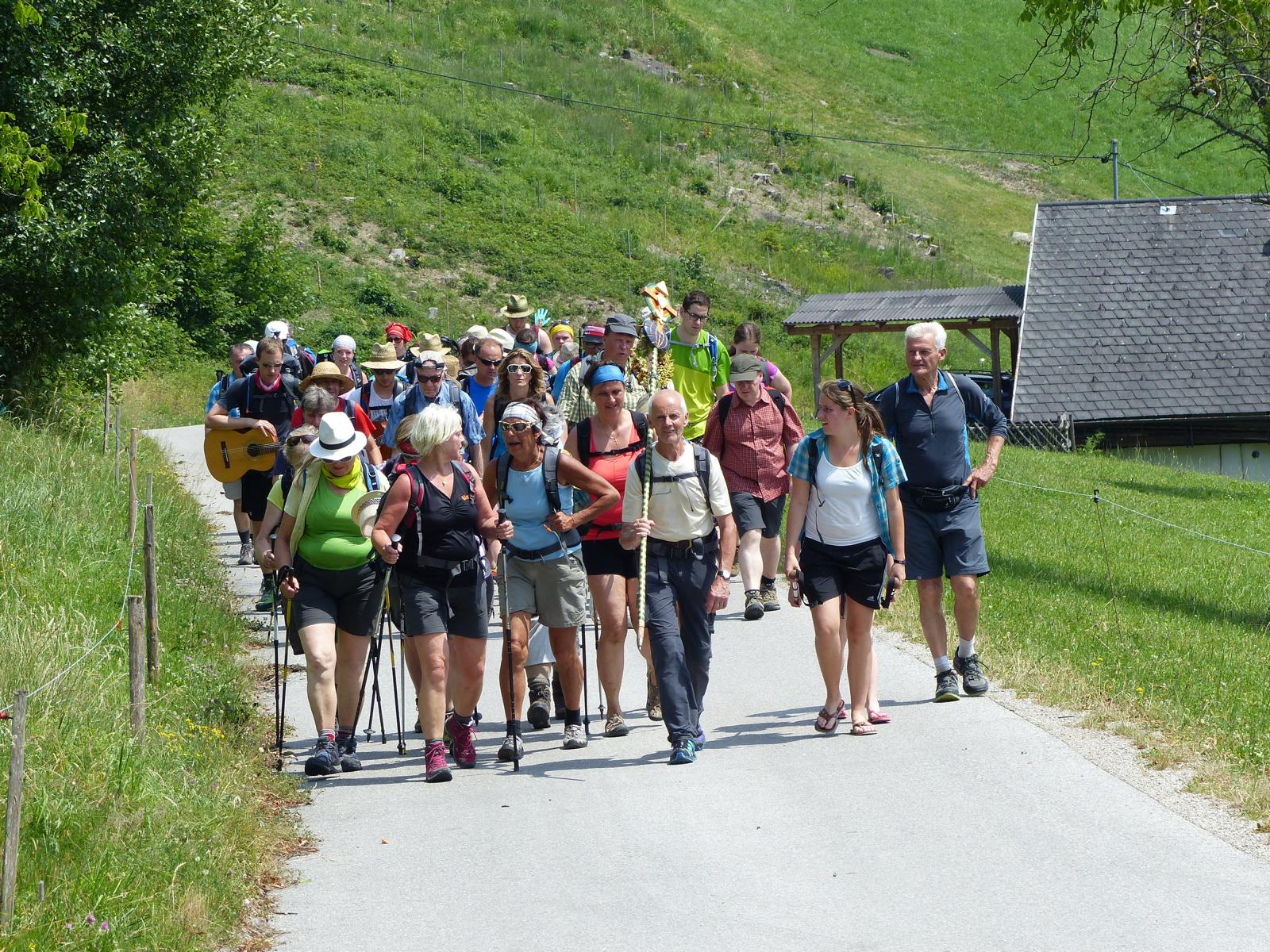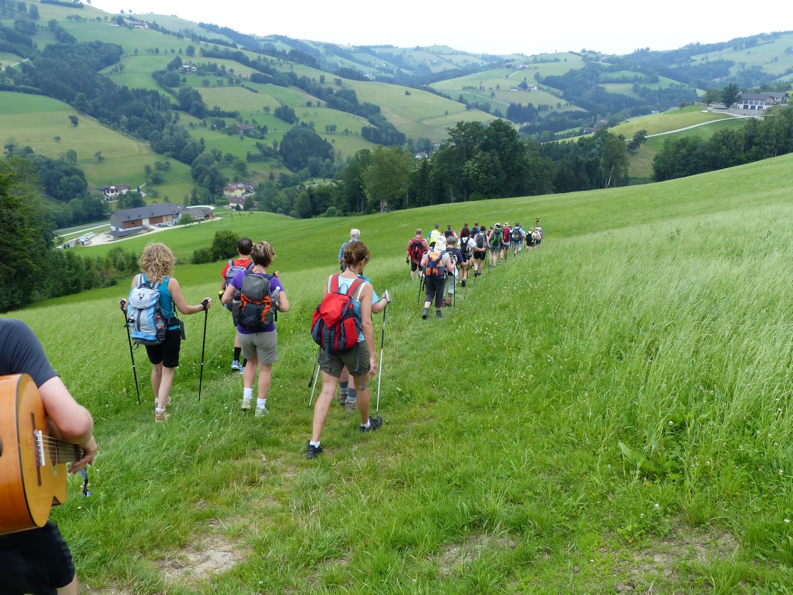 Die letzte Steigung des Tages führte uns dann endlich auf den Sonntagberg – dort nahmen wir dann wieder geordnete Aufstellung an und zogen mit einem von den Gitarristen begleiteten Hallelujah in die Basilika ein – nach drei Tagen Fußmarsch ein sehr ergreifender und berührender Moment.