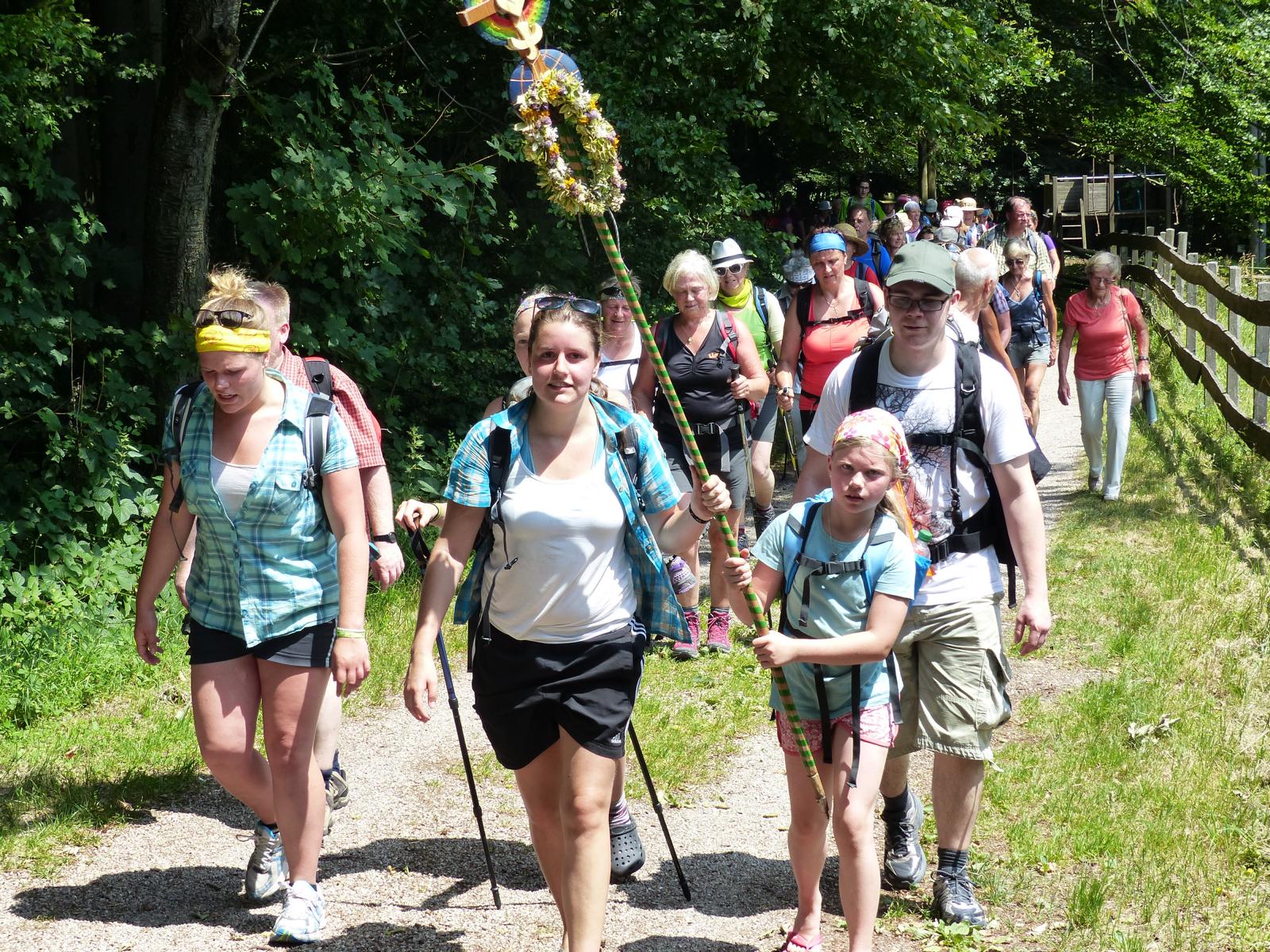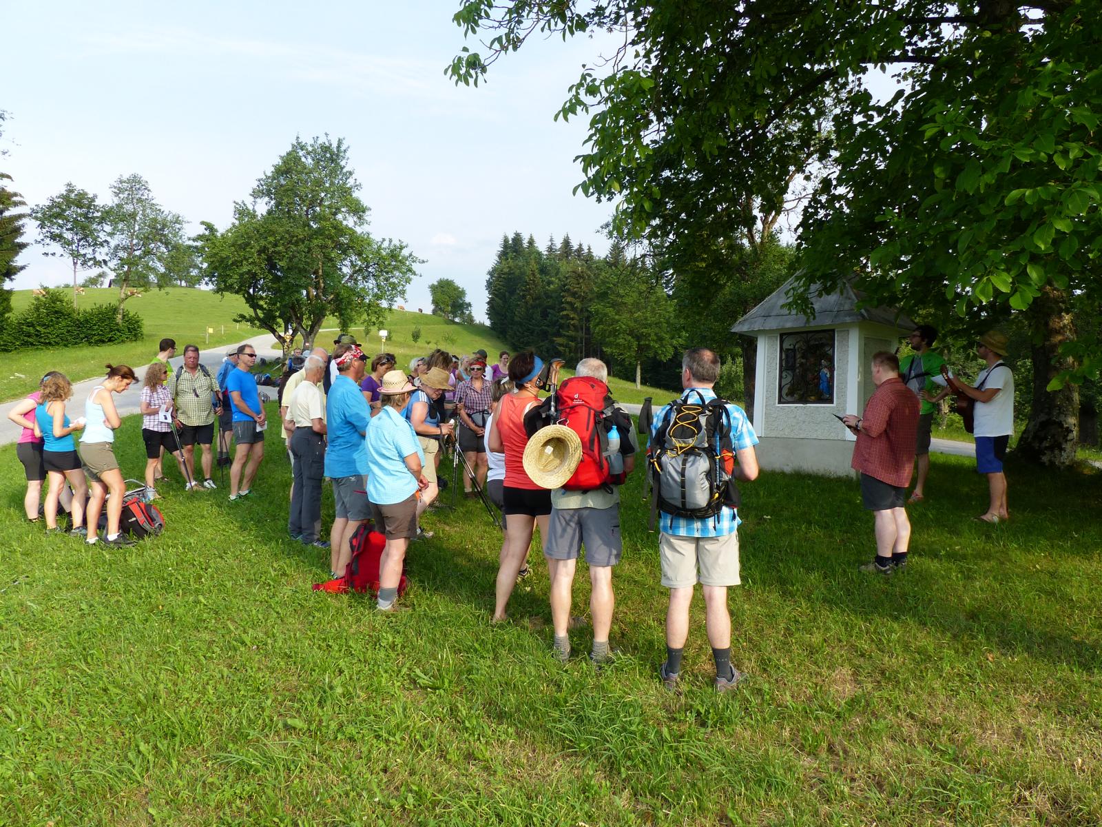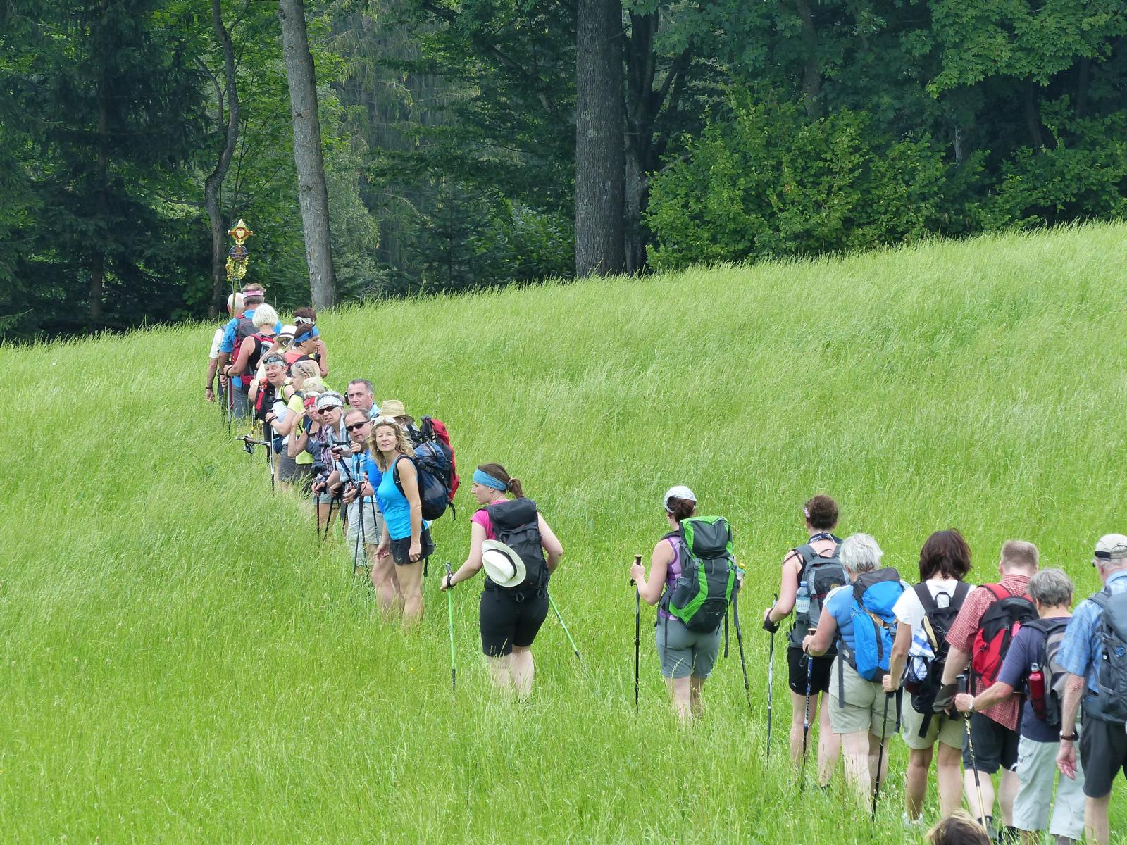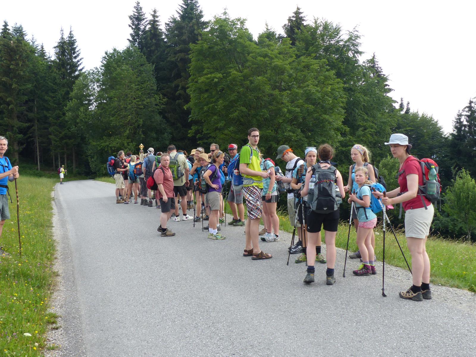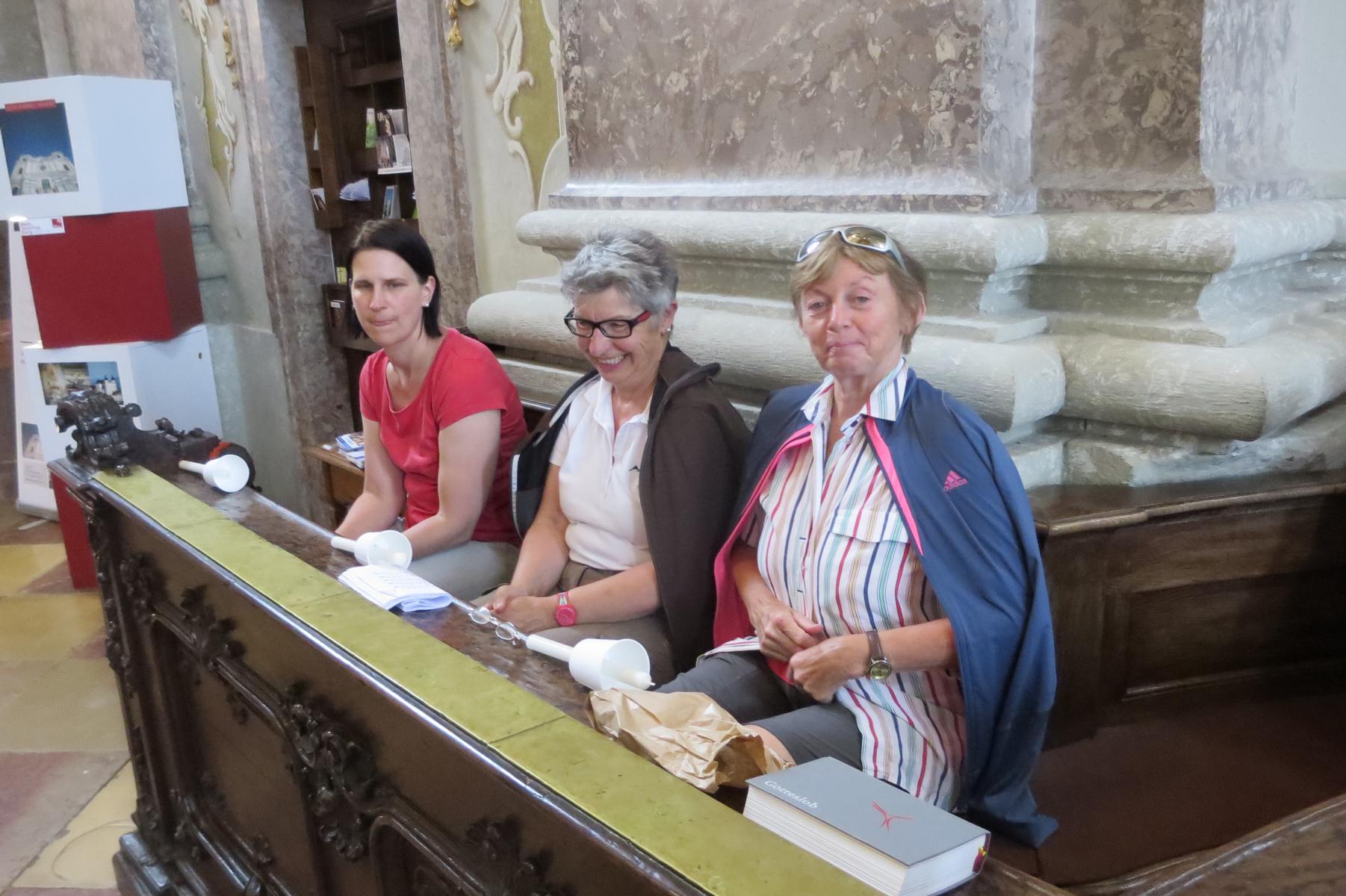 Die letzte Steigung des Tages führte uns dann endlich auf den Sonntagberg – dort nahmen wir dann wieder geordnete Aufstellung an und zogen mit einem von den Gitarristen begleiteten Hallelujah in die Basilika ein – nach drei Tagen Fußmarsch ein sehr ergreifender und berührender Moment.