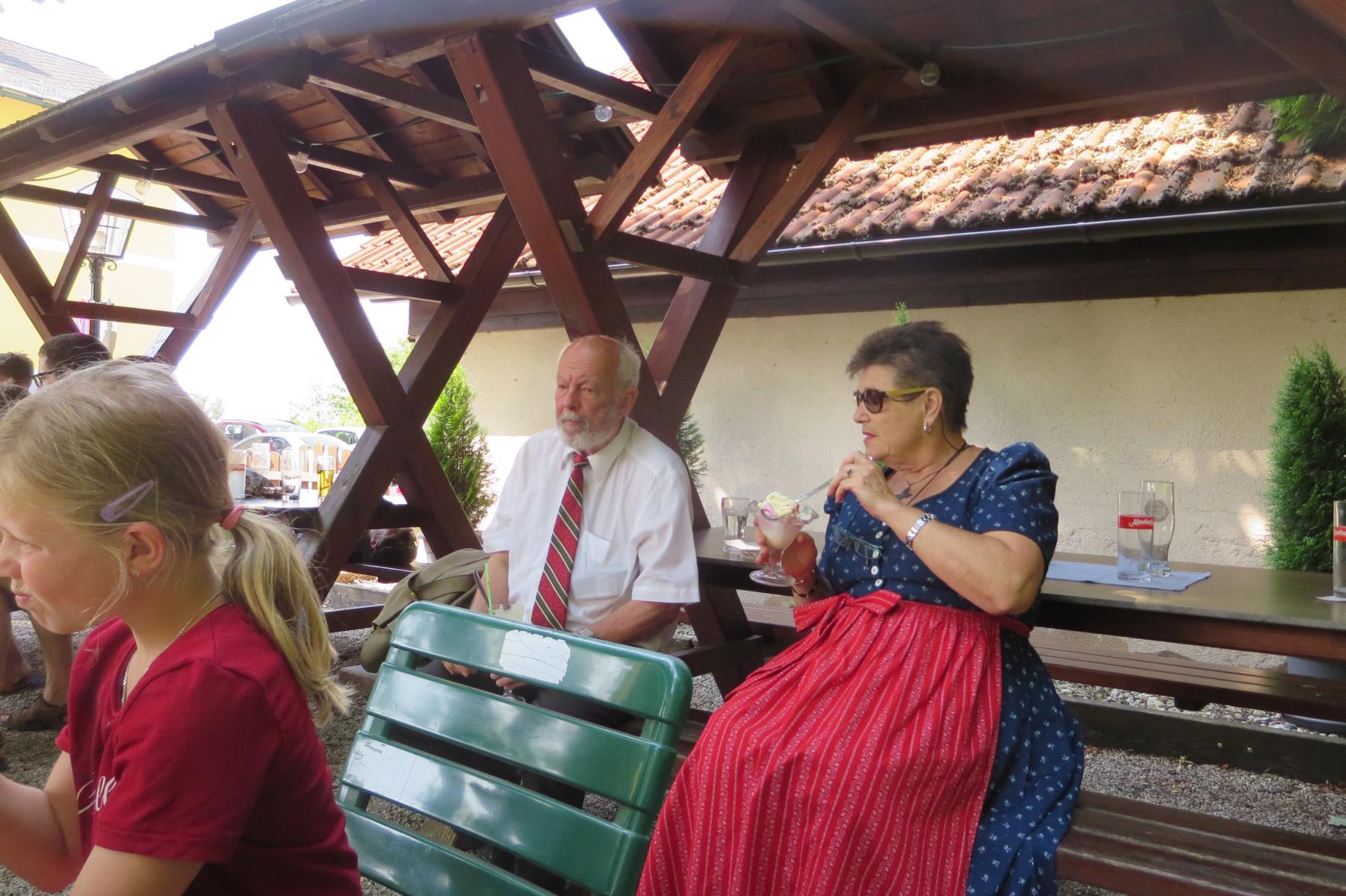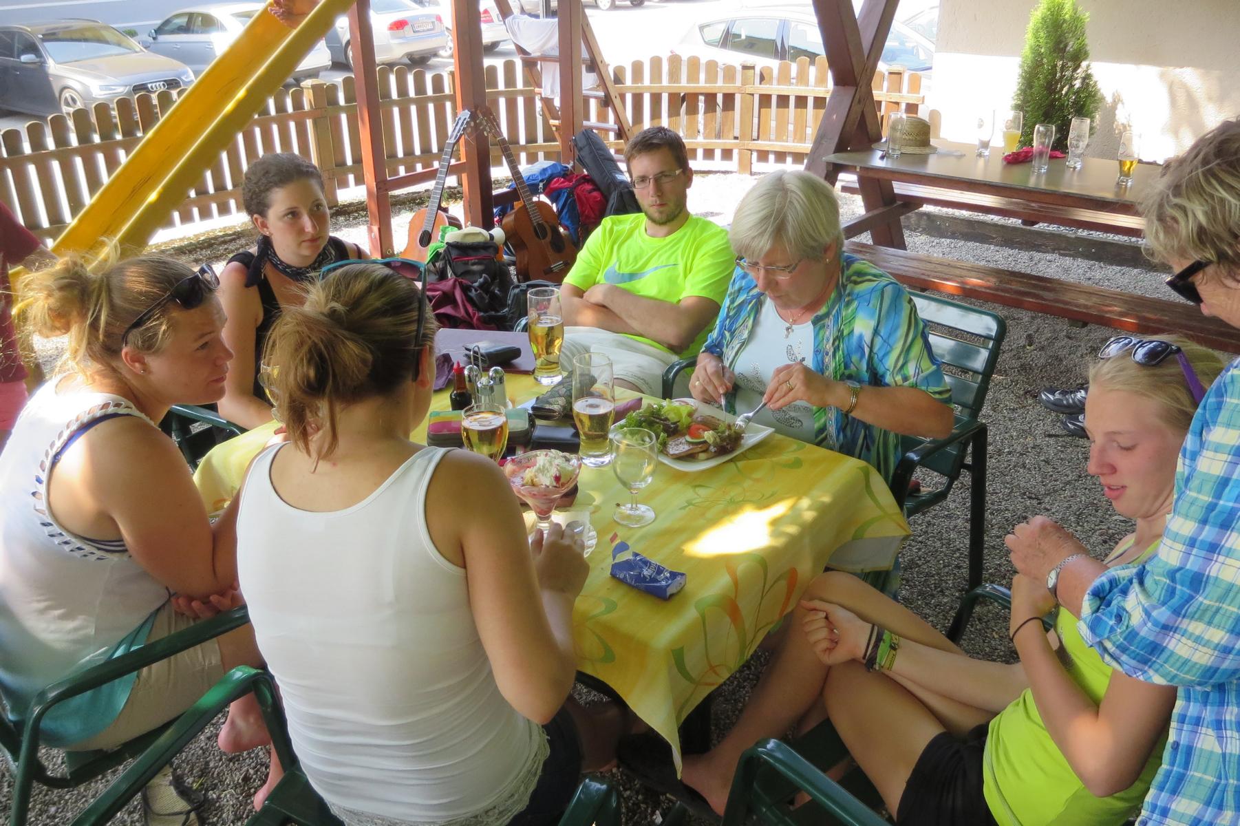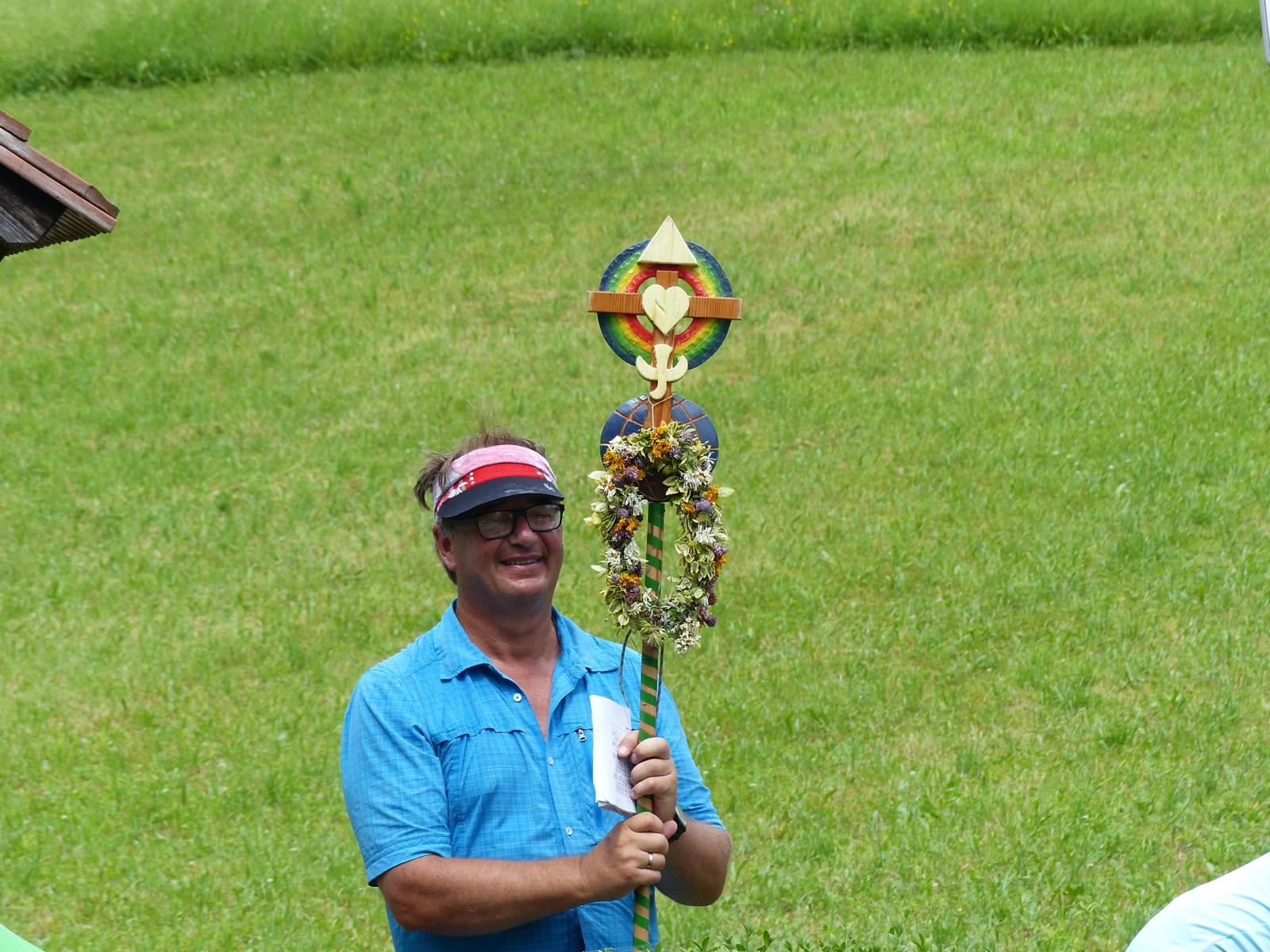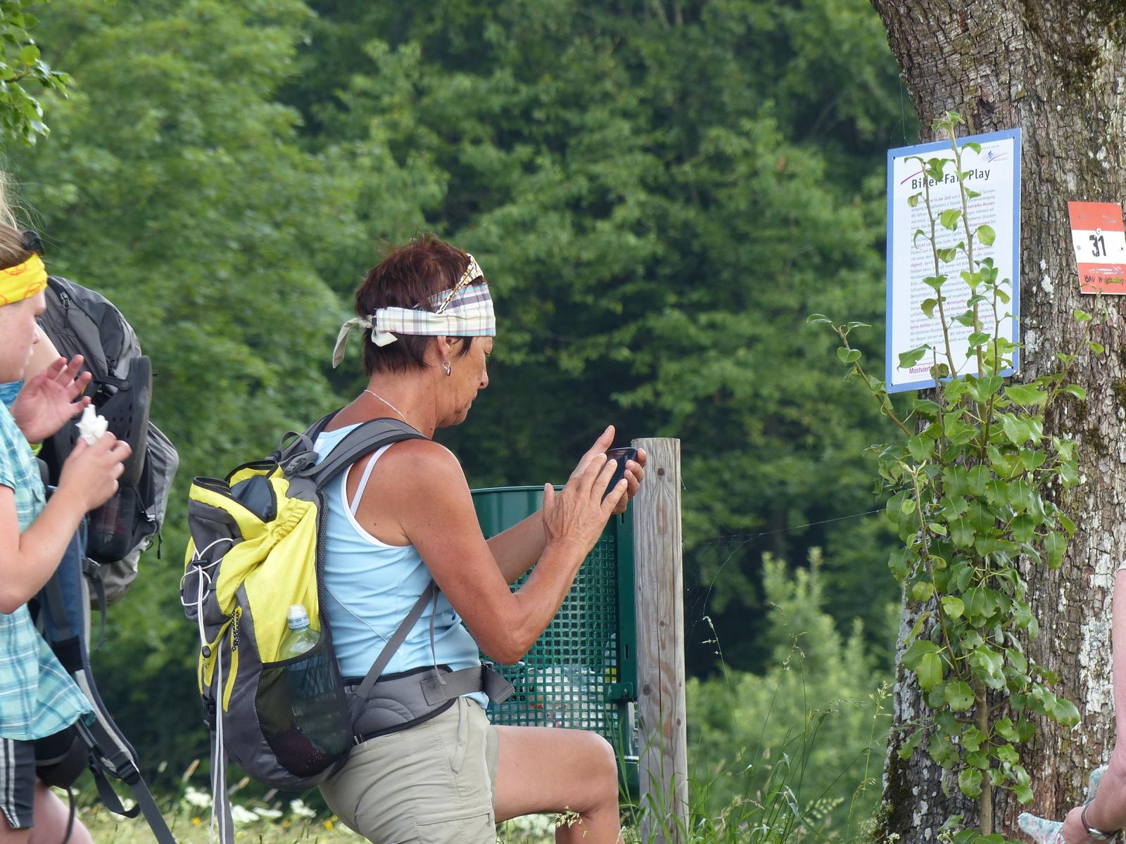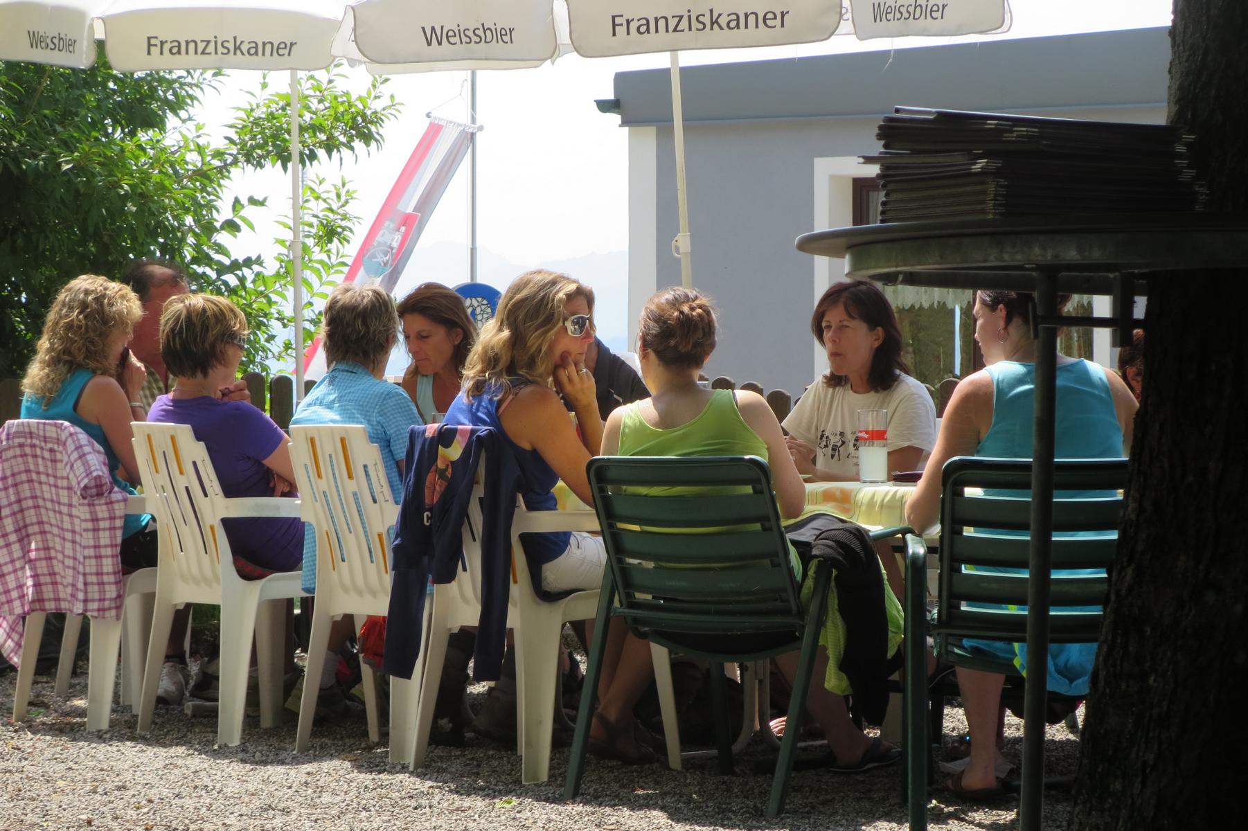 Ebenso ein Fixpunkt der alljährlichen Wanderung ist die Rast beim „Mostbauern“. Heuer wurde von P. Michael übrigens klargestellt, dass der „Mostbauer“ in Wirklichkeit „Baumgartner“ heißt. Vor dem Mostbauern wartet alljährlich immer schon der örtliche Bäcker mit Kipferl, Schaumrollen und anderem Backwerk auf die Wallfahrer, dazu wird Most von der Familie Baumgartner kredenzt – so auch heuer.