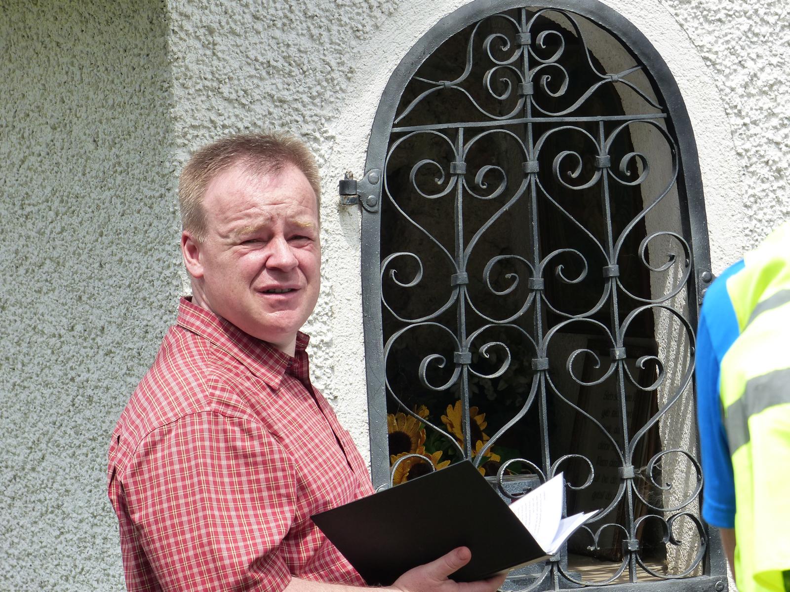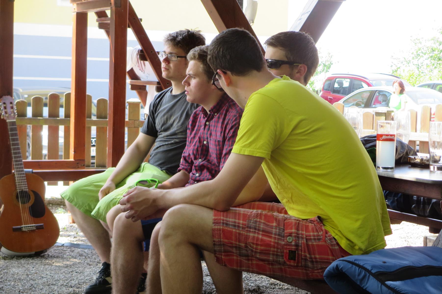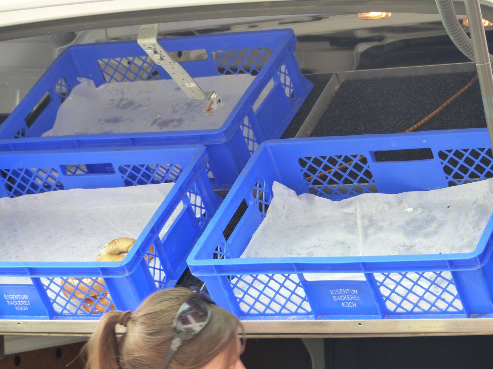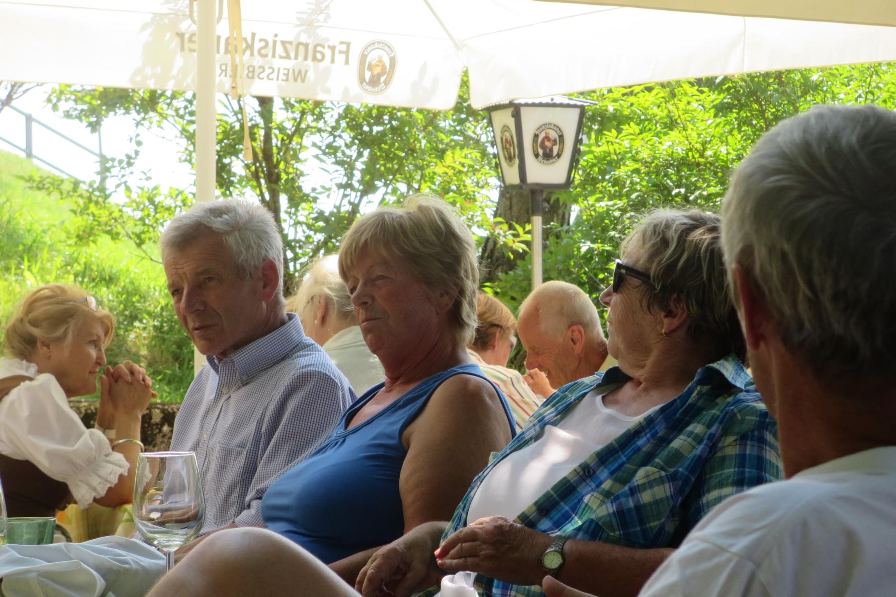Ebenso ein Fixpunkt der alljährlichen Wanderung ist die Rast beim „Mostbauern“. Heuer wurde von P. Michael übrigens klargestellt, dass der „Mostbauer“ in Wirklichkeit „Baumgartner“ heißt. Vor dem Mostbauern wartet alljährlich immer schon der örtliche Bäcker mit Kipferl, Schaumrollen und anderem Backwerk auf die Wallfahrer, dazu wird Most von der Familie Baumgartner kredenzt – so auch heuer.