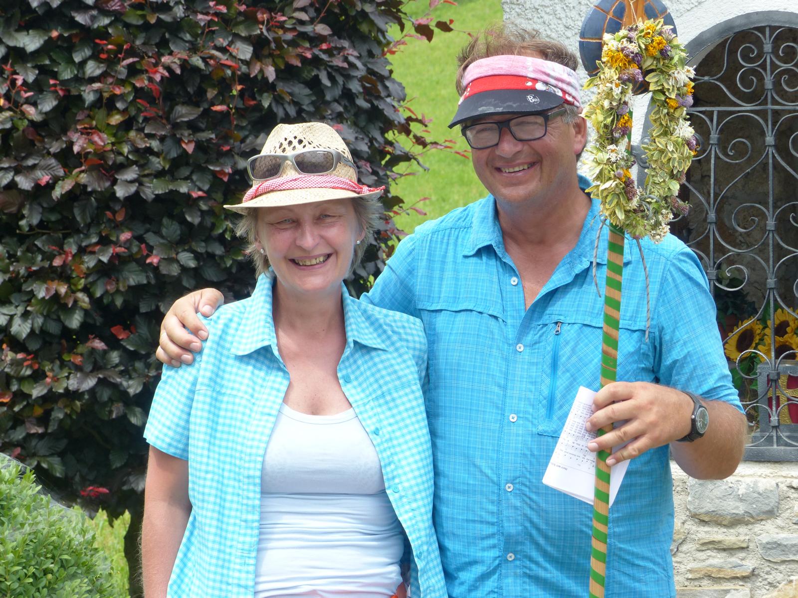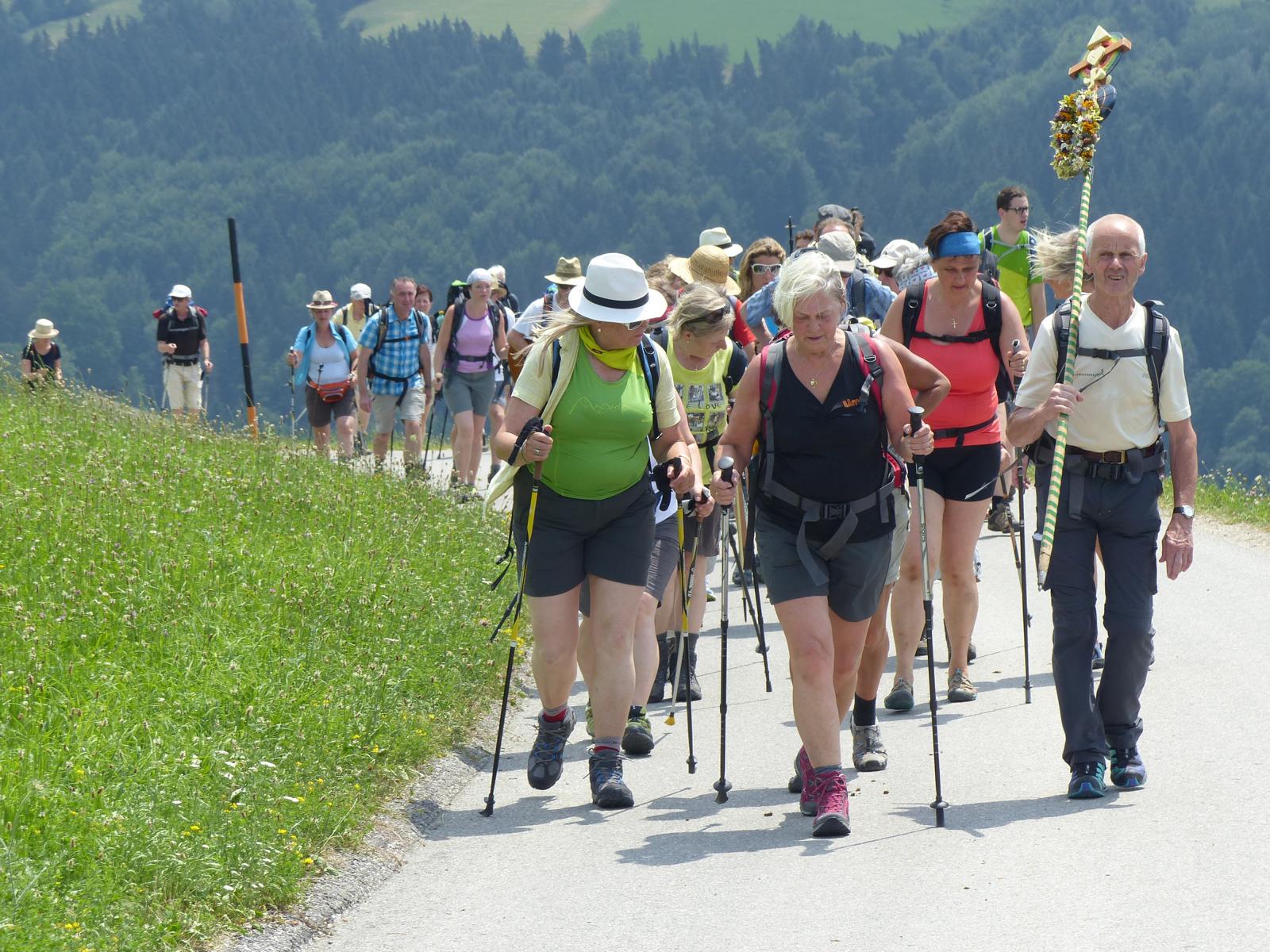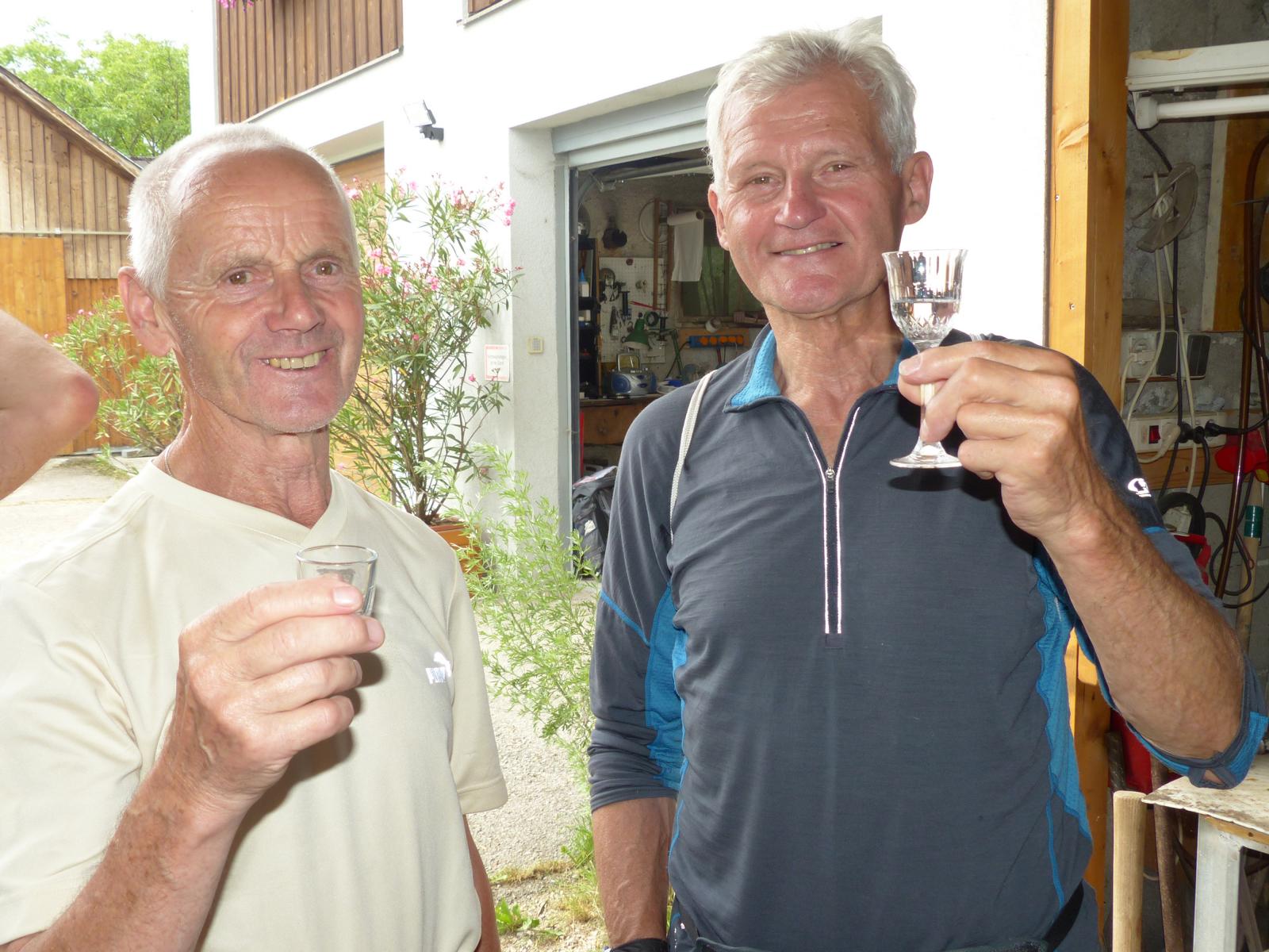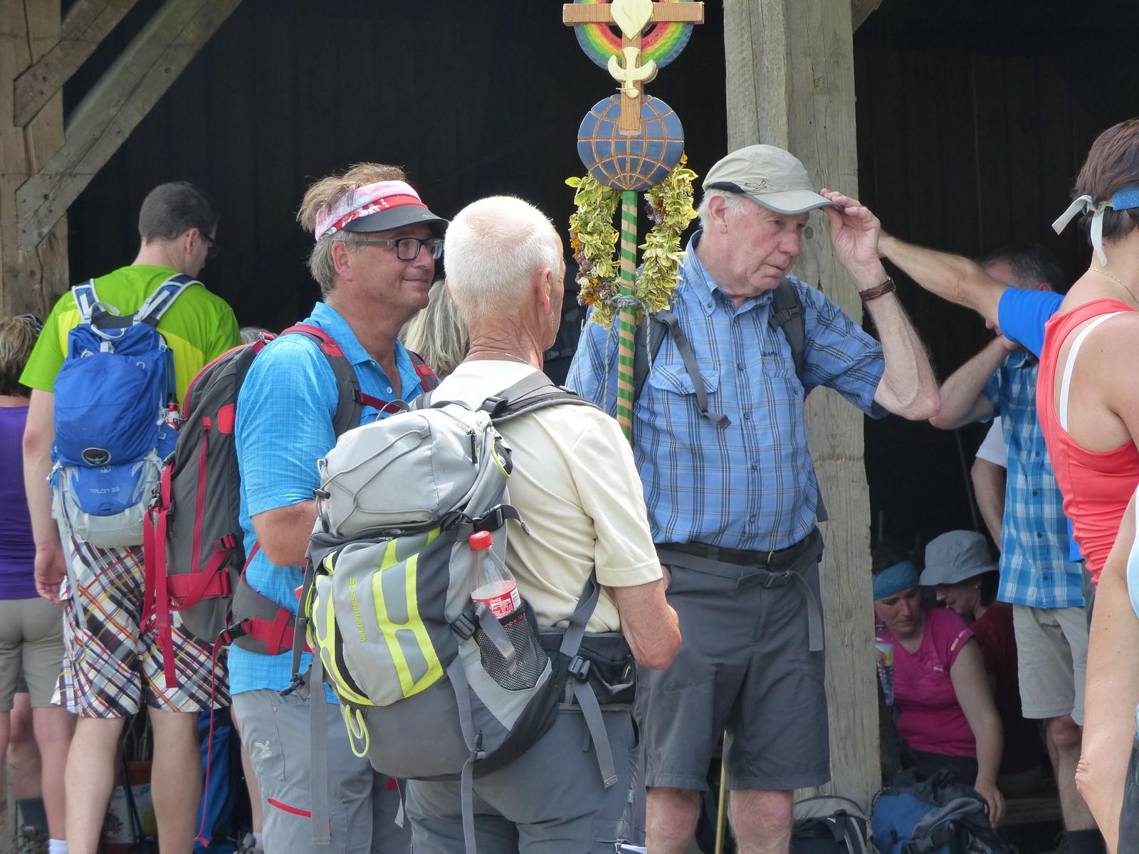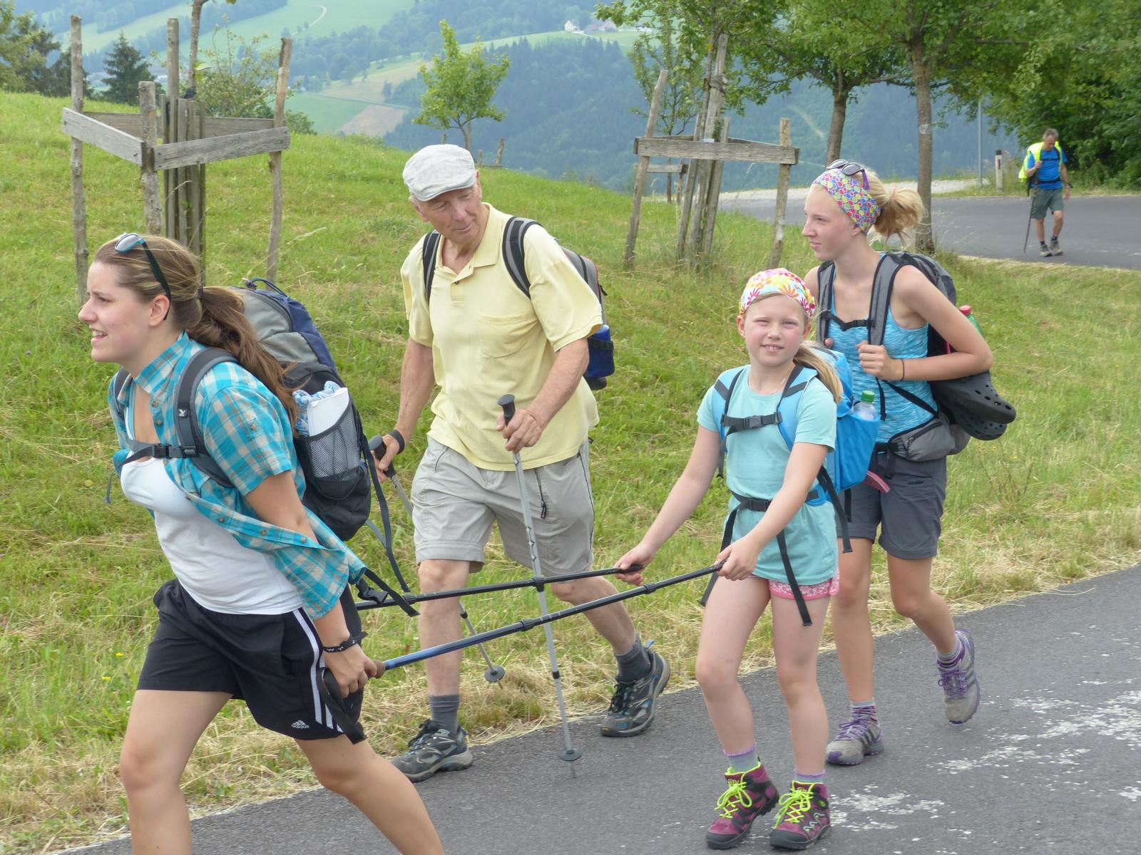 Dabei wurde auch Otmar Hollerer zum 80. Geburtstag gratuliert – der wiederum gab eine Runde Schnapserl aus und posierte gemeinsam mit dem mit 81 Jahren ältesten Wallfahrer Hans Abl und der mit 8 Jahren jüngsten Teilnehmerin Emma Saria-Girrer zum Fotoshooting. 73 Jahre Altersunterschied in der gleichen Wallfahrtsgruppe!