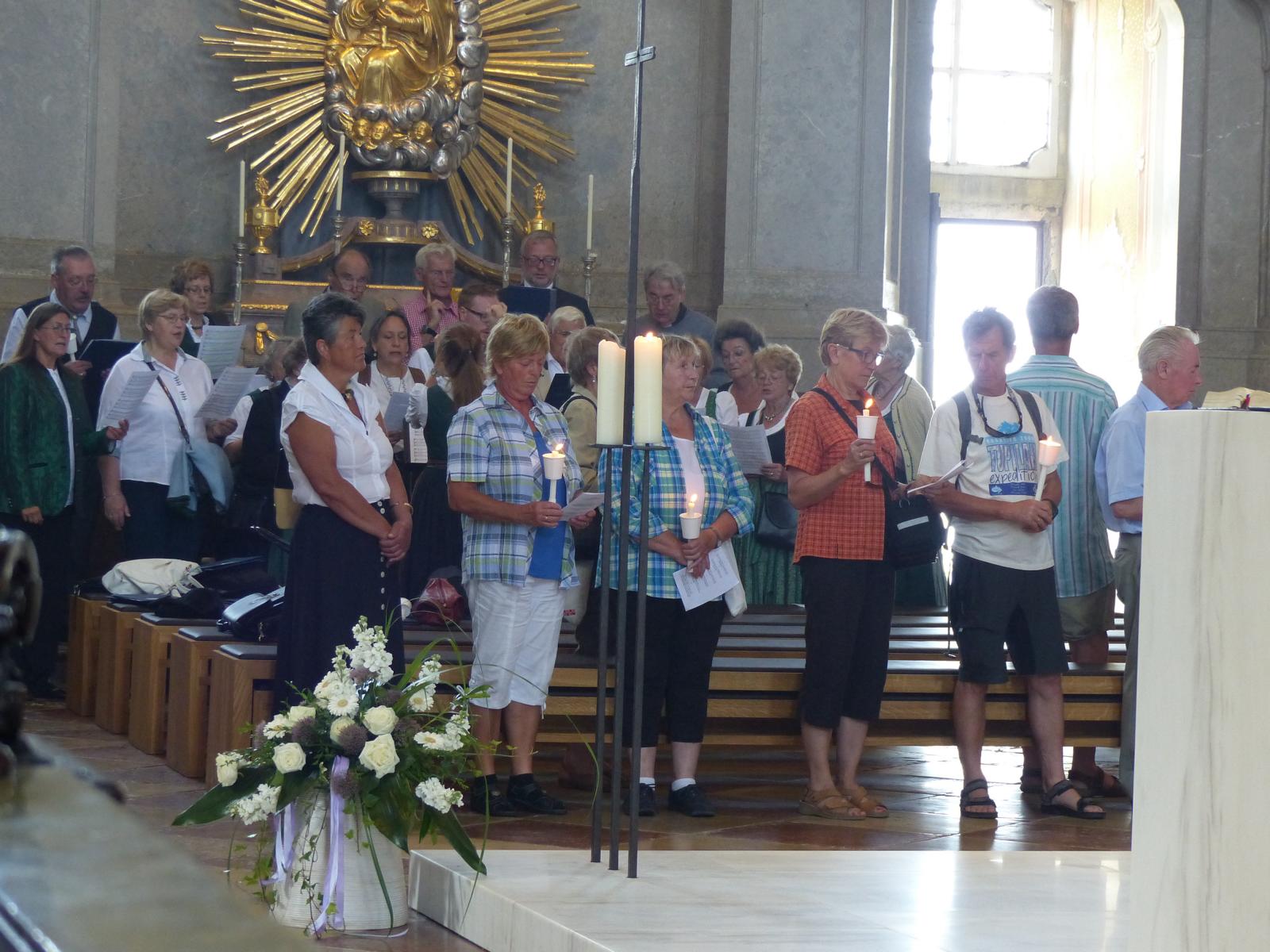 Gemeinsam mit weiteren Wallfahrern aus Mariazell, die die gesamte Strecke am Montag mit dem Fahrrad, mit dem Autobus oder auch im privaten PKW zurückgelegt hatten, feierten wir nach einem Mittagessen dann um 16:00 Uhr einen Gottesdienst, musikalisch umrahmt von der Mariazeller Liedertafel. Danach folgte noch eine Lichterprozession um und in der Basilika, bevor es dann im Bus wieder nach Hause ging.