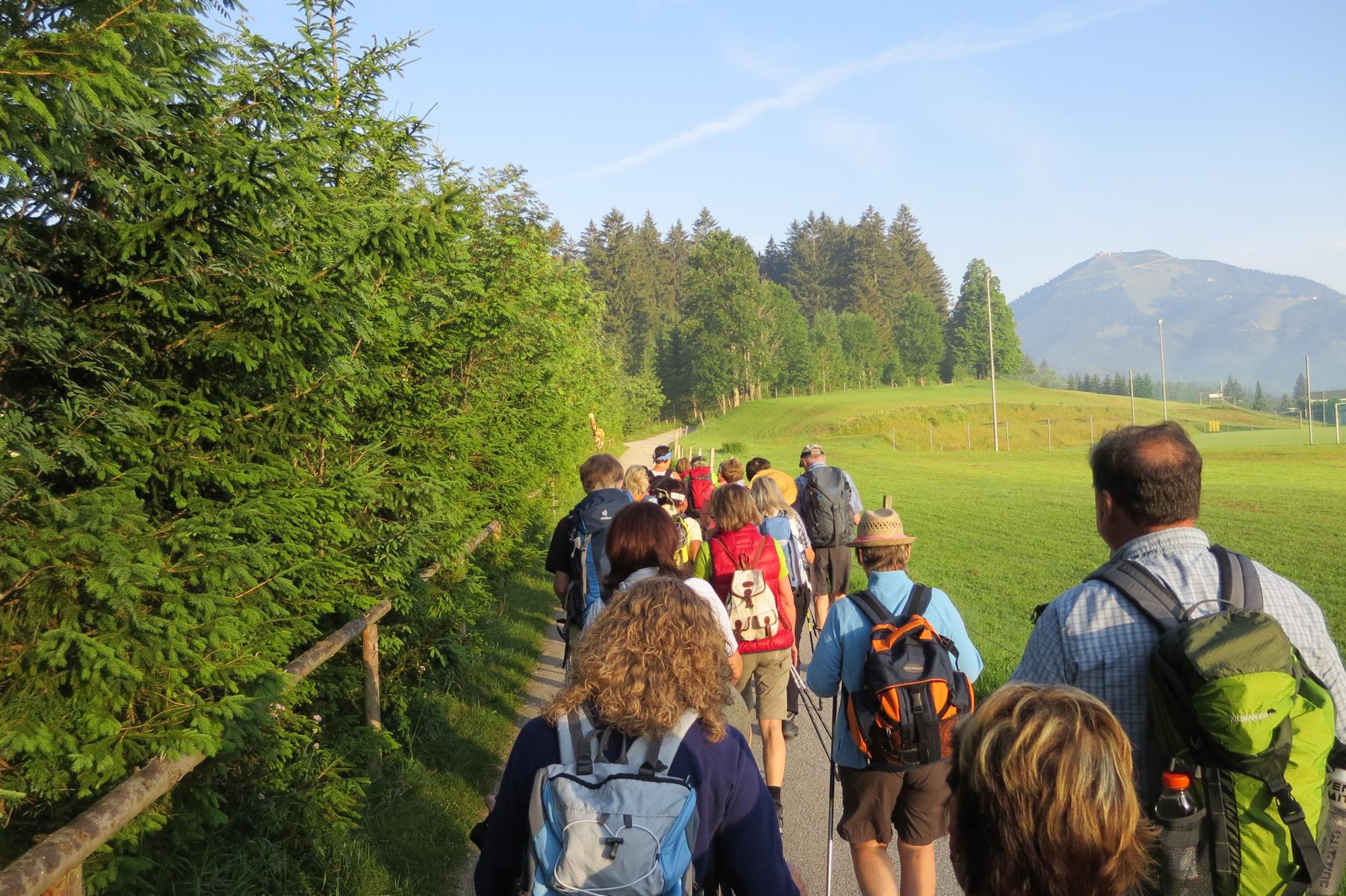 Nachdem das Gepäck in den Transporter geladen war, machten sich die Wallfahrer auf die Reise. Noch war es angenehm kühl, doch das sollte sich im Lauf des Tages drastisch ändern. Bereits am Vormittag brannte die Sonne erbarmungslos vom Himmel und nachdem die ersten kühlen Waldstücke durchquert waren und weit und breit kein Schatten mehr zu finden war, freute man sich über jeden Brunnen am Wegesrand.