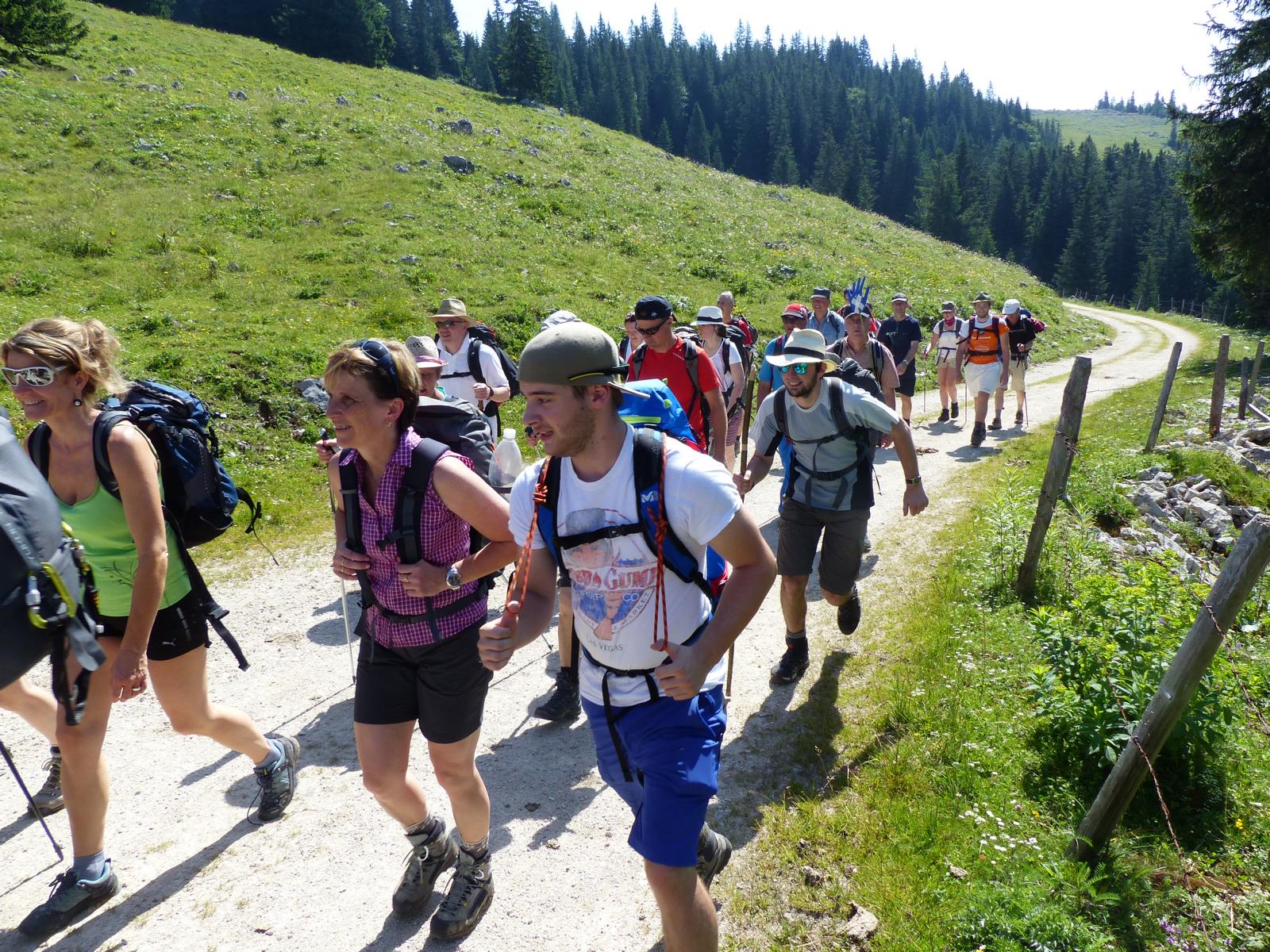 Die erste längere Rastpause wurde auf der Feldwiesalm eingelegt. Nach der Jause ging es weiter bis Langau. Im dortigen Gasthaus waren die Wirtsleute selbst zwar auf Urlaub, für uns sperrten die Kinder allerdings extra auf und sorgten für die Verpflegung.